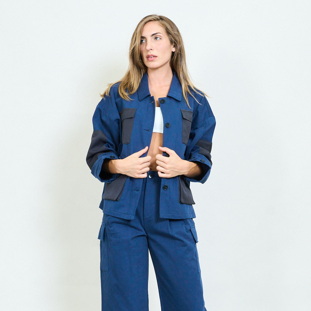 Pudełkowa kurtka z kontrastowymi kieszeniami hurtowymi
