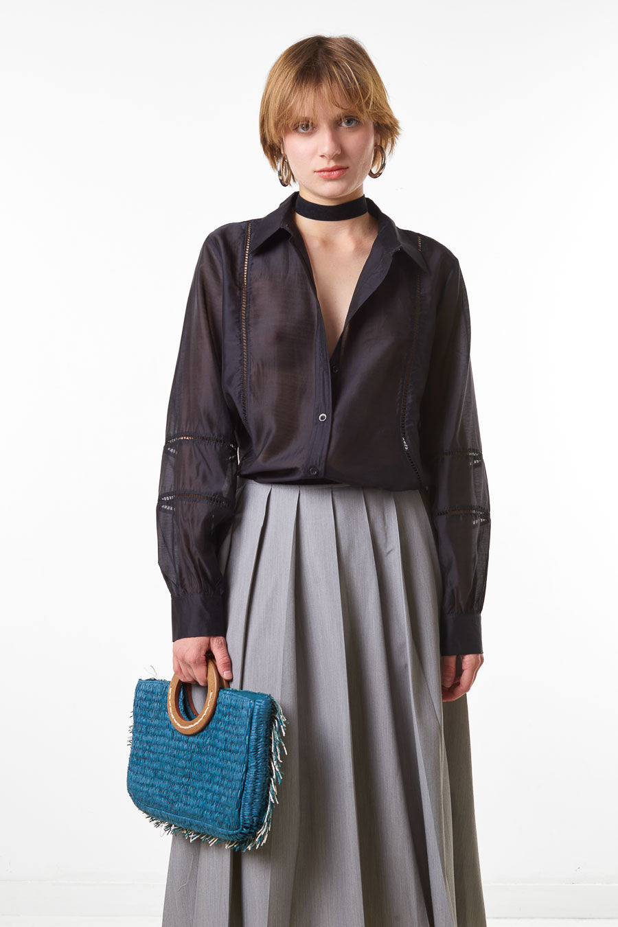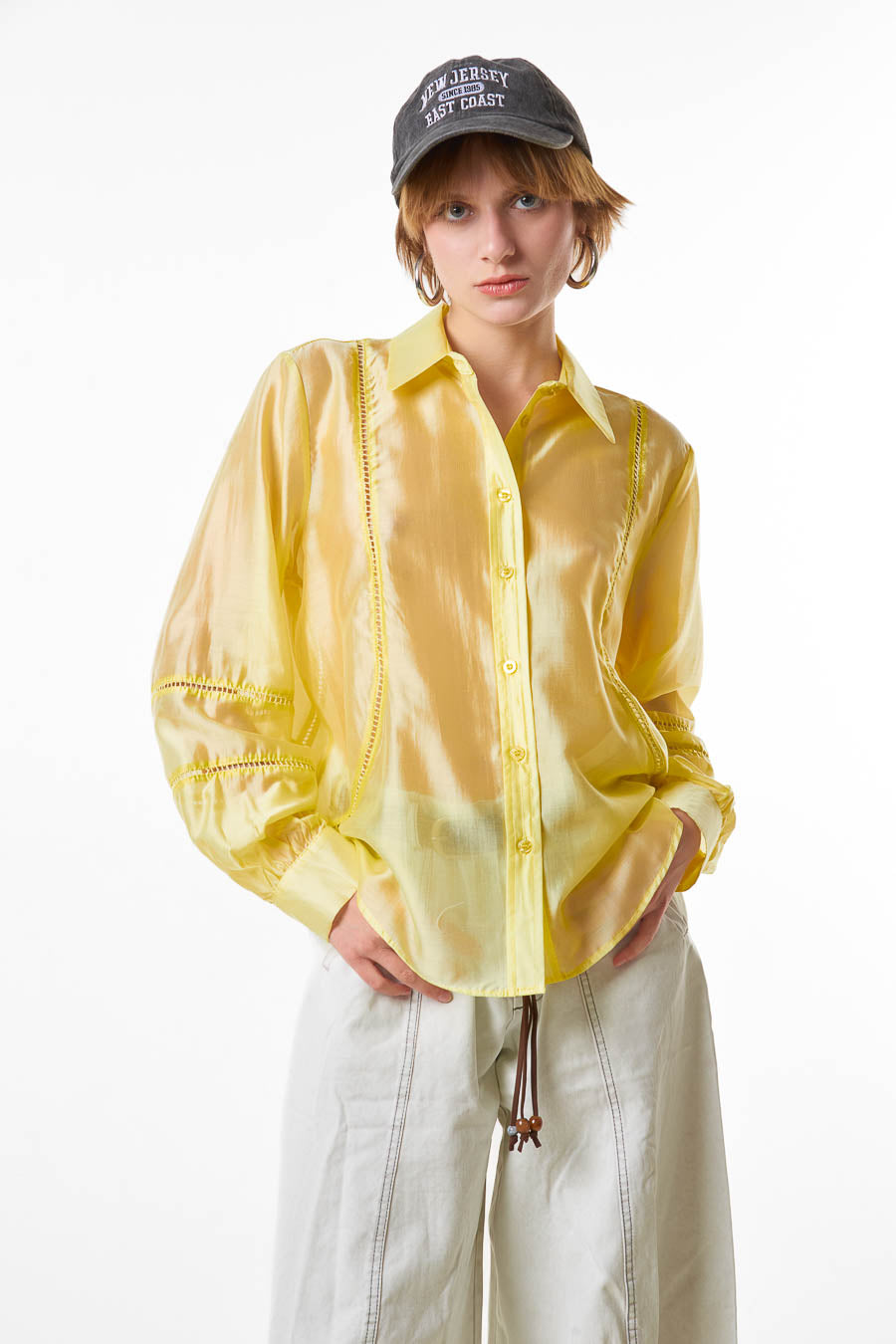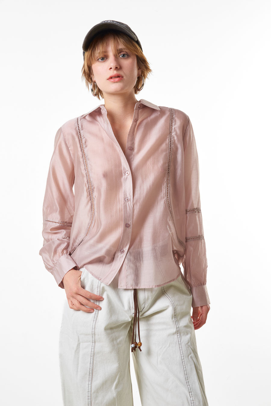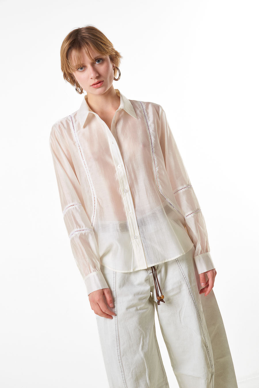 Hurtownia bluzek z przezroczystymi panelami i zapinanymi na guziki