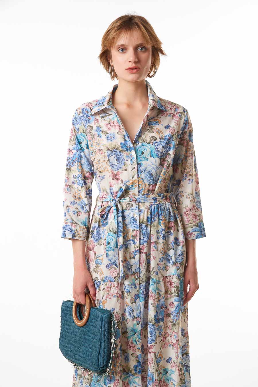 Hurtownia wielowarstwowych sukienek midi w kwiaty z paskiem