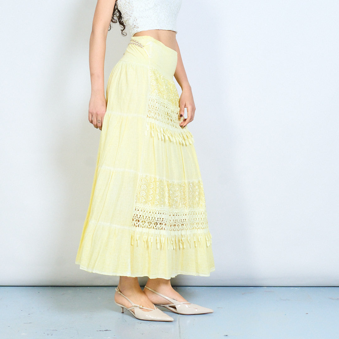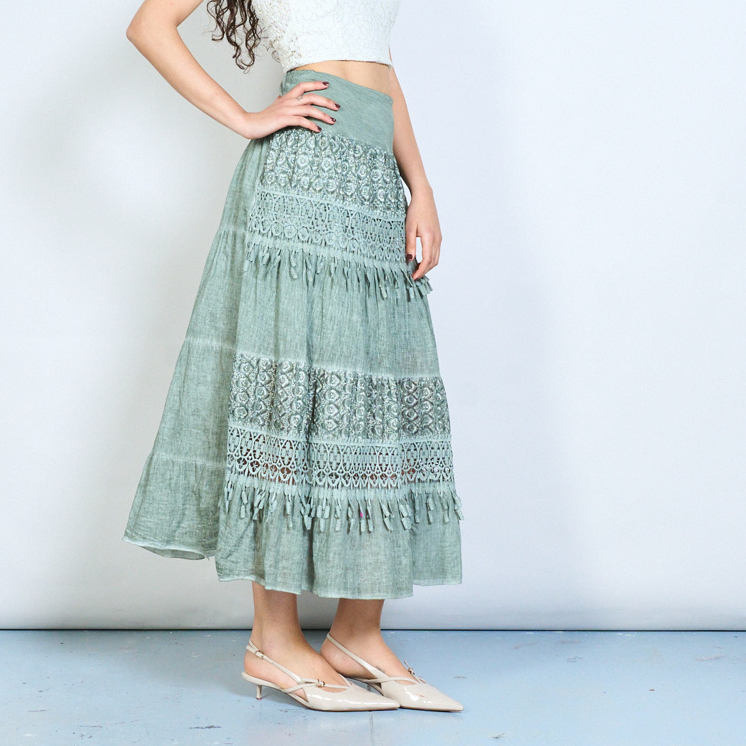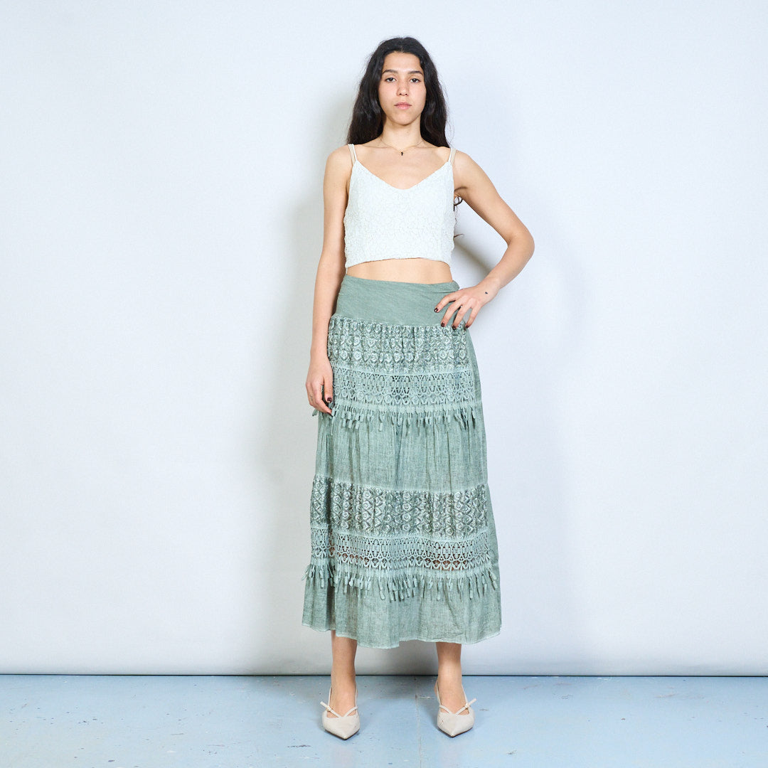 Spódnica midi z koronkowym panelem w stylu boho i frędzlami hurtowo