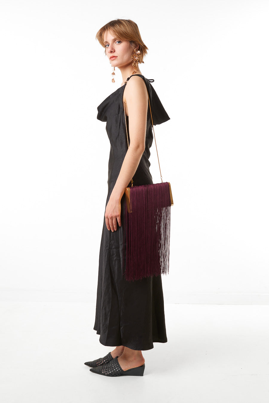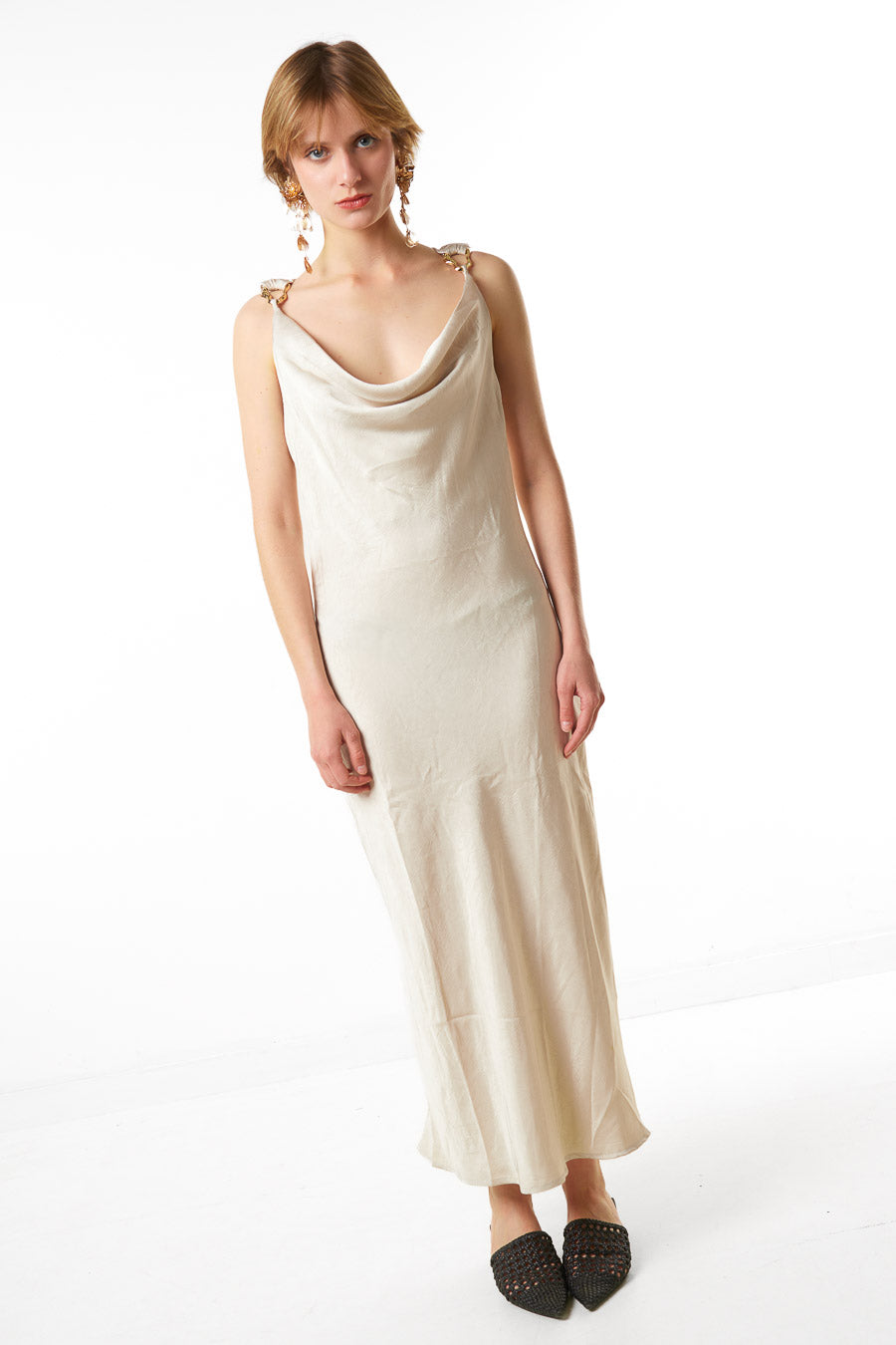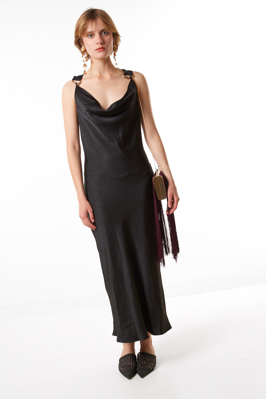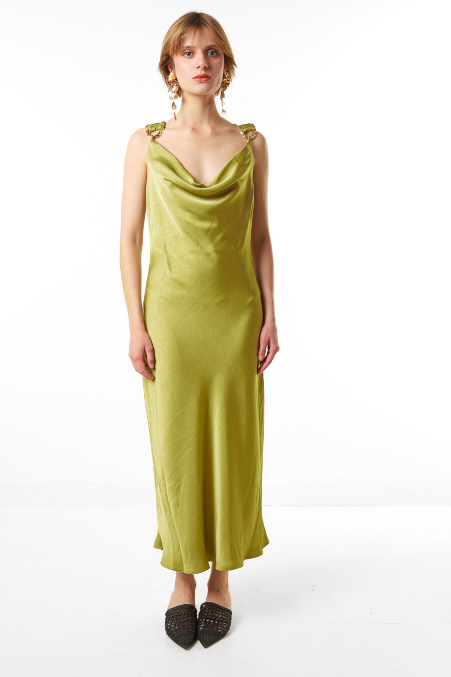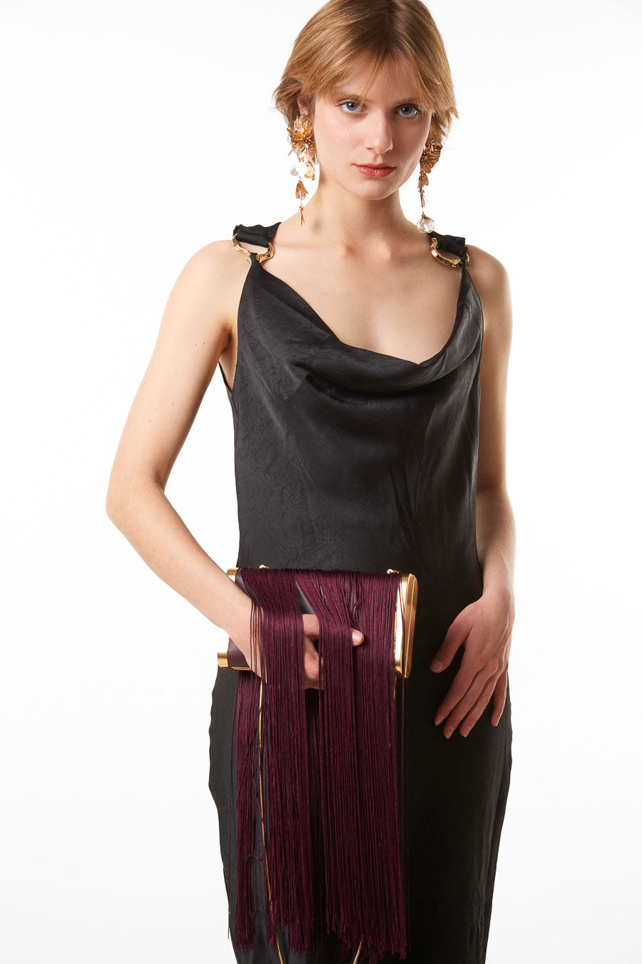- Asymetryczny, drapowany detal przy dekolcie