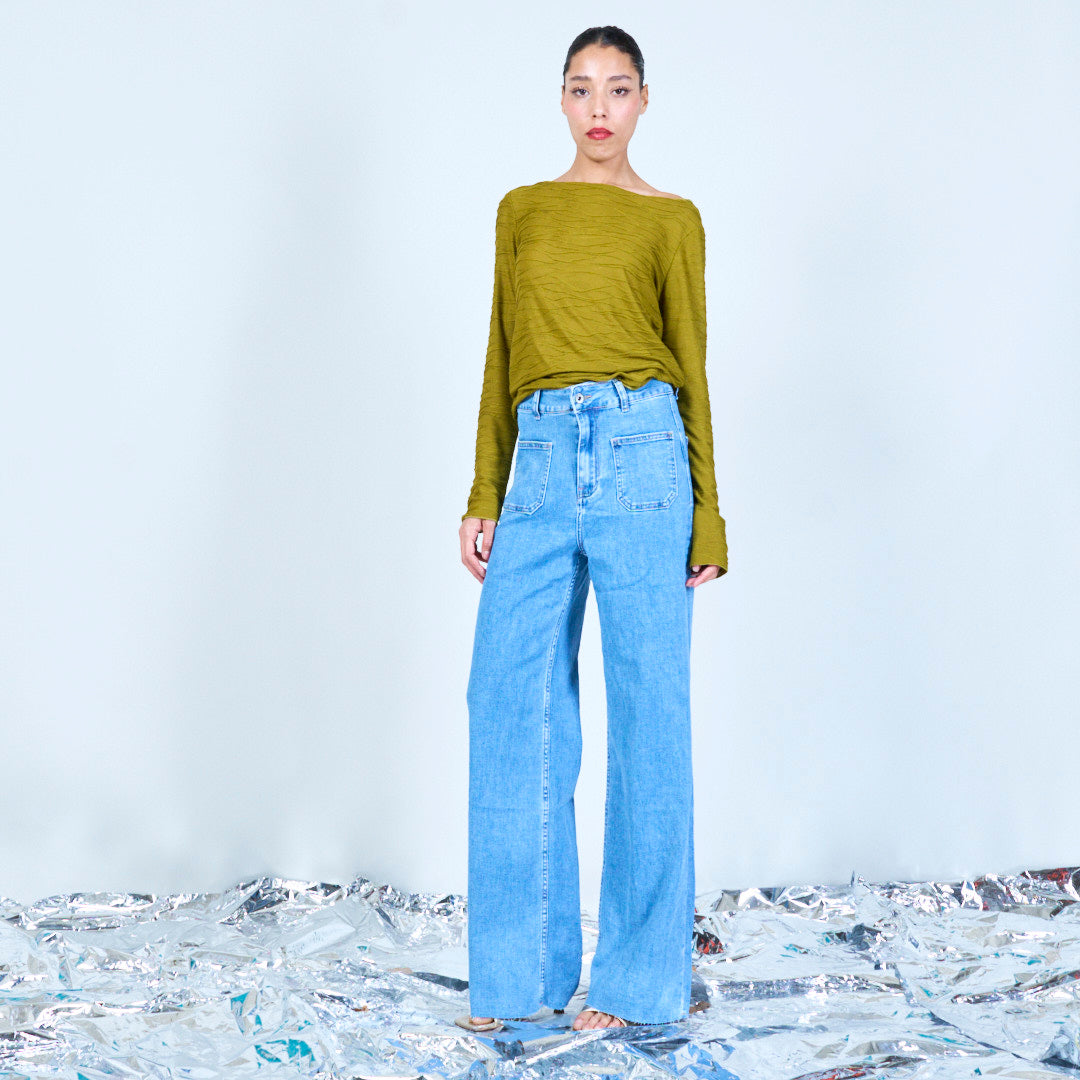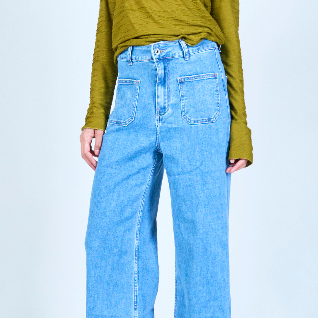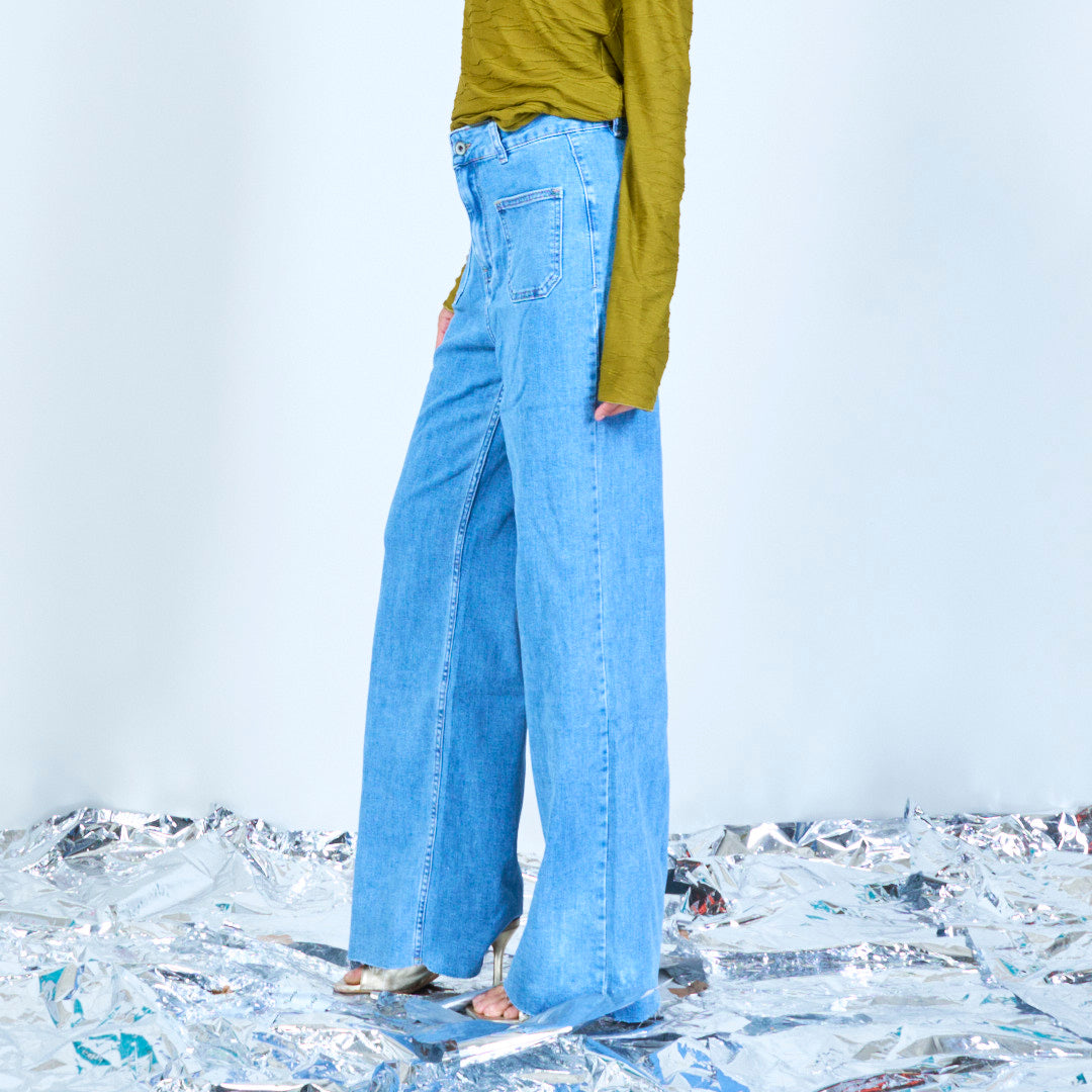 Dżinsy o szerokiej nogawce z hurtowymi kieszeniami z tyłu