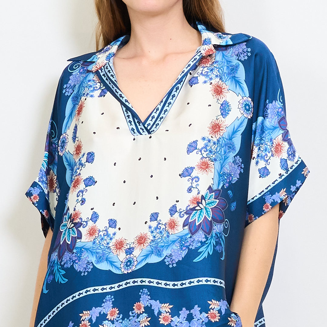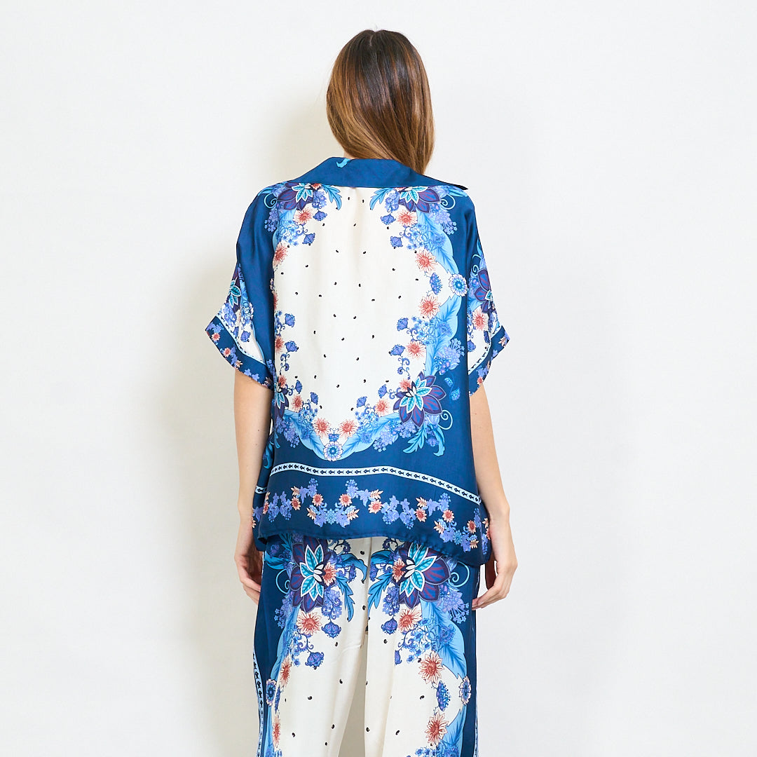 Ozdobna kwiecista barokowa satynowa koszula z hurtową