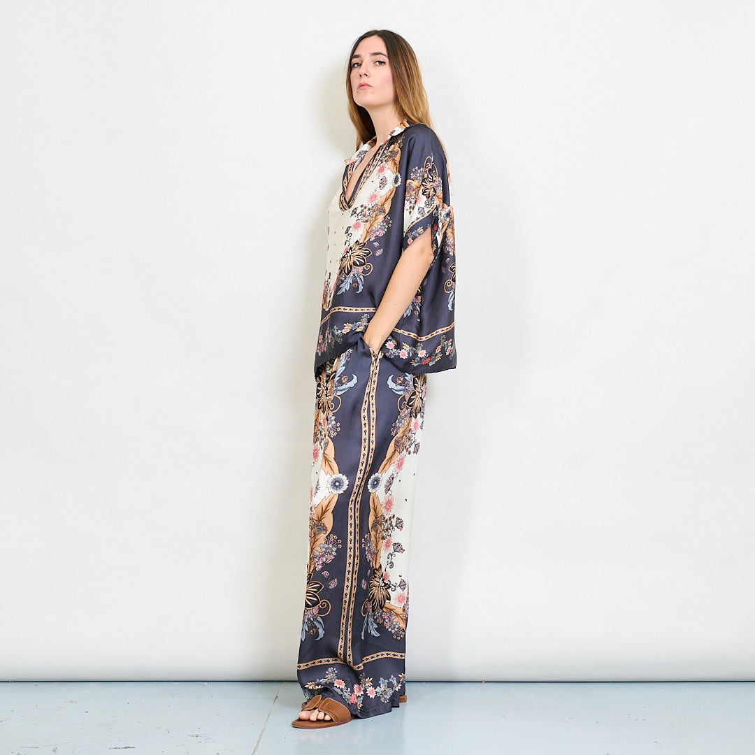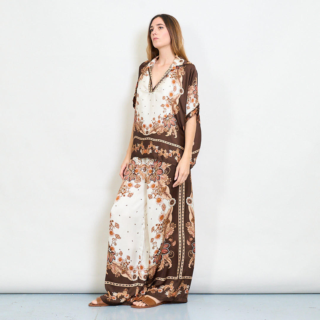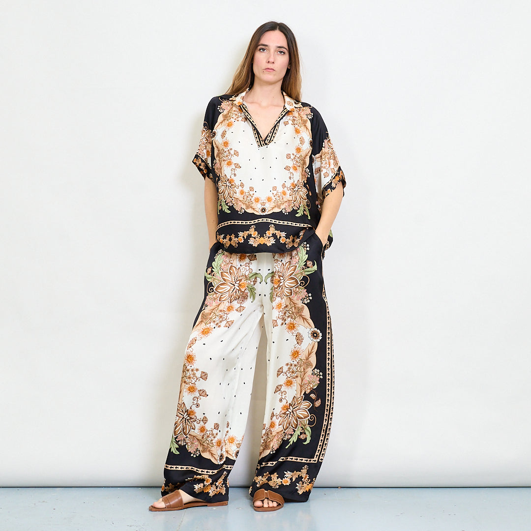 - Wszechstronny barokowy nadruk kwiatowy pasujący do Palazzo Pants