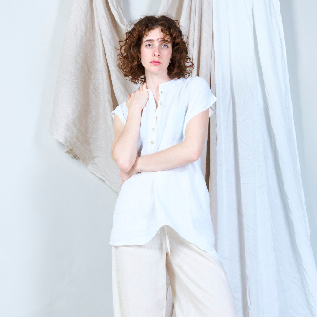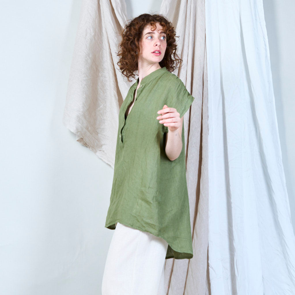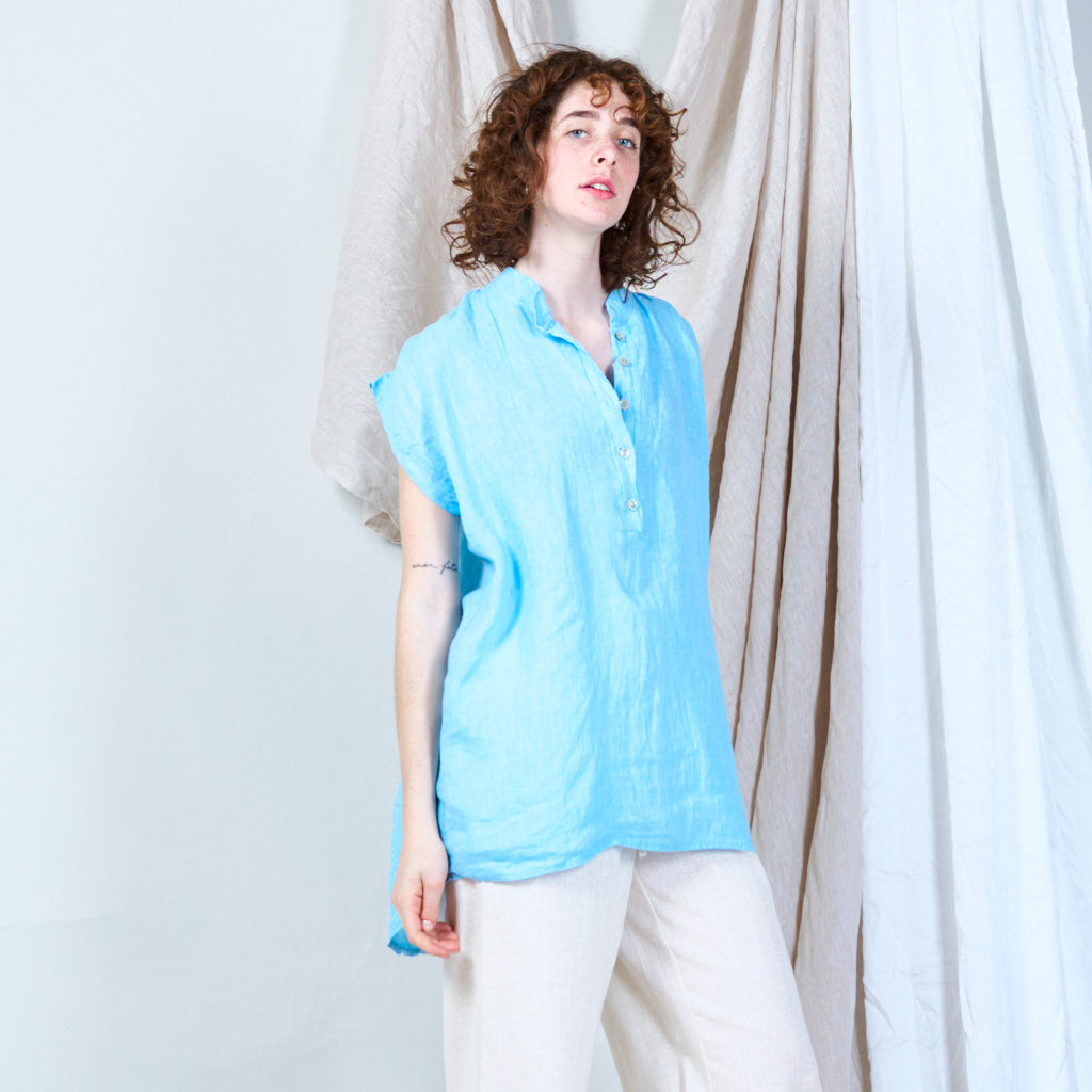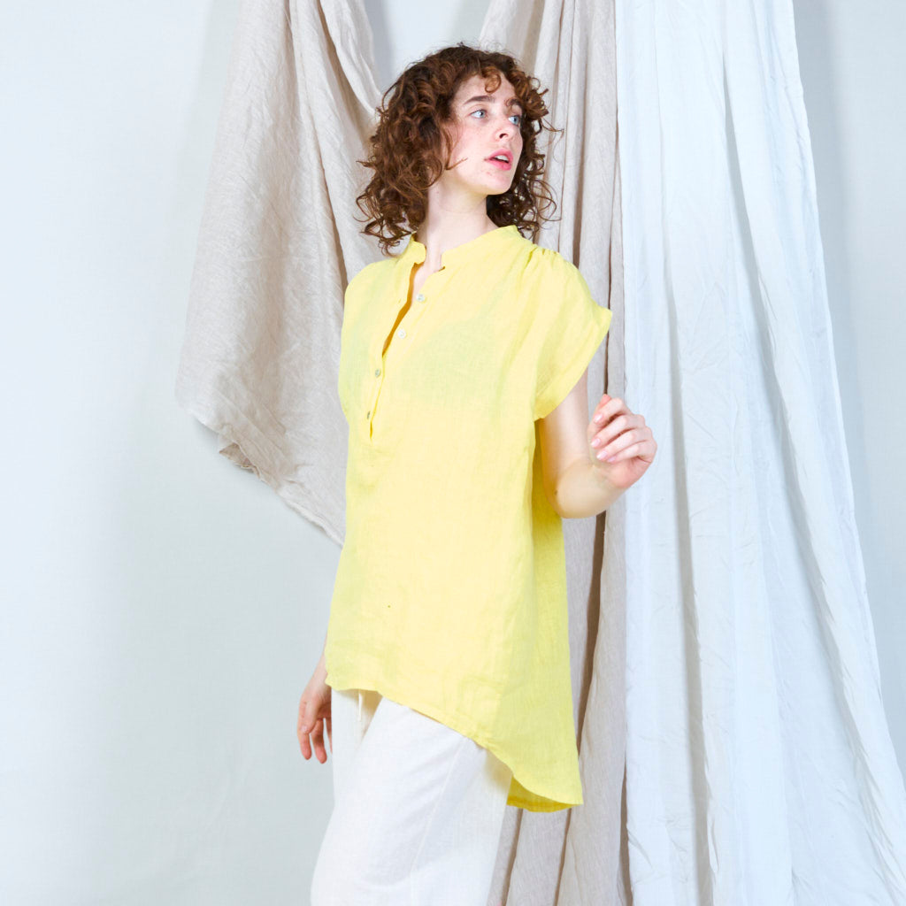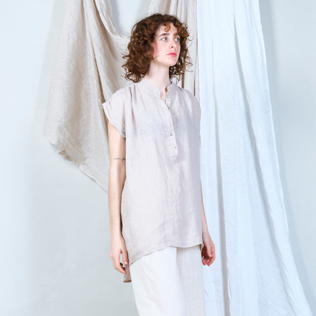 Zrelaksowana lniana tunik z hurtową kołnierzem