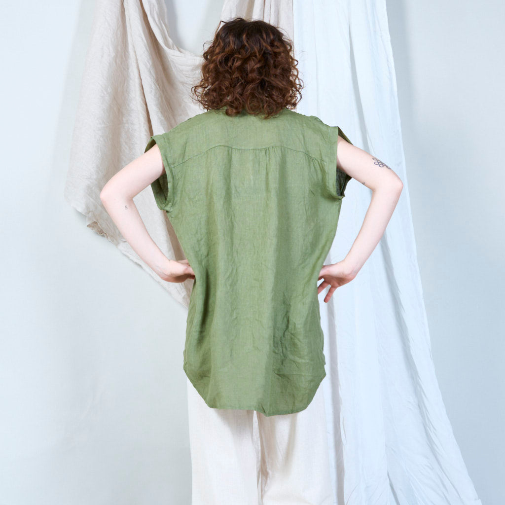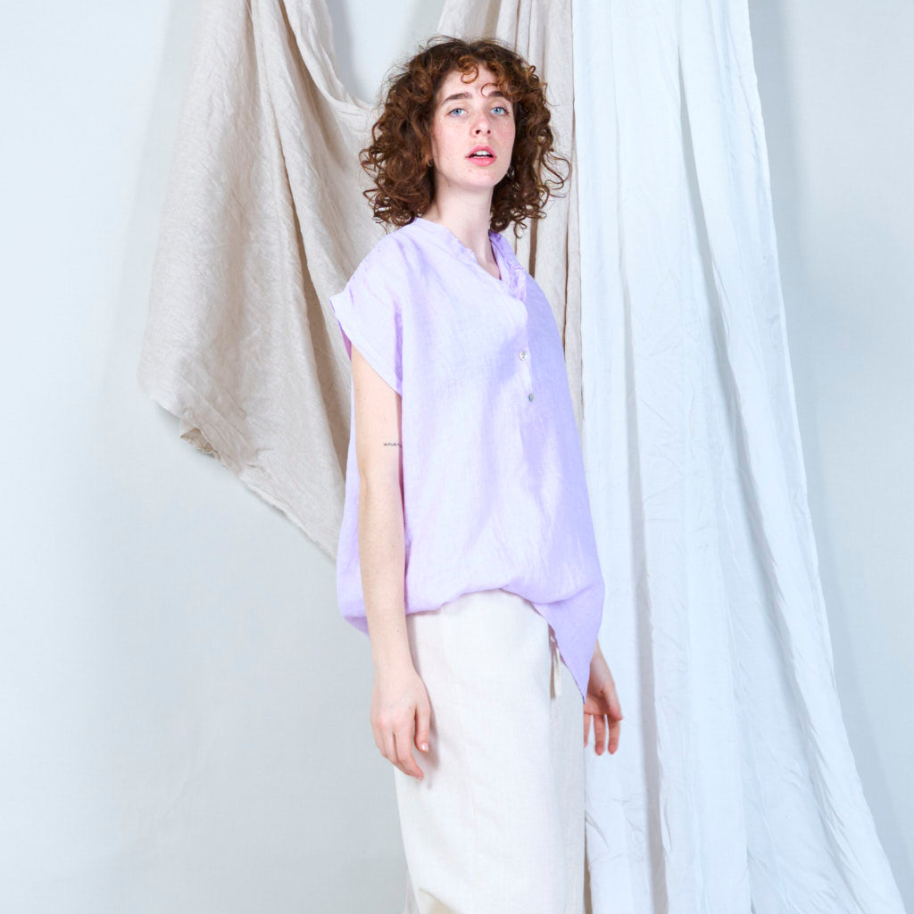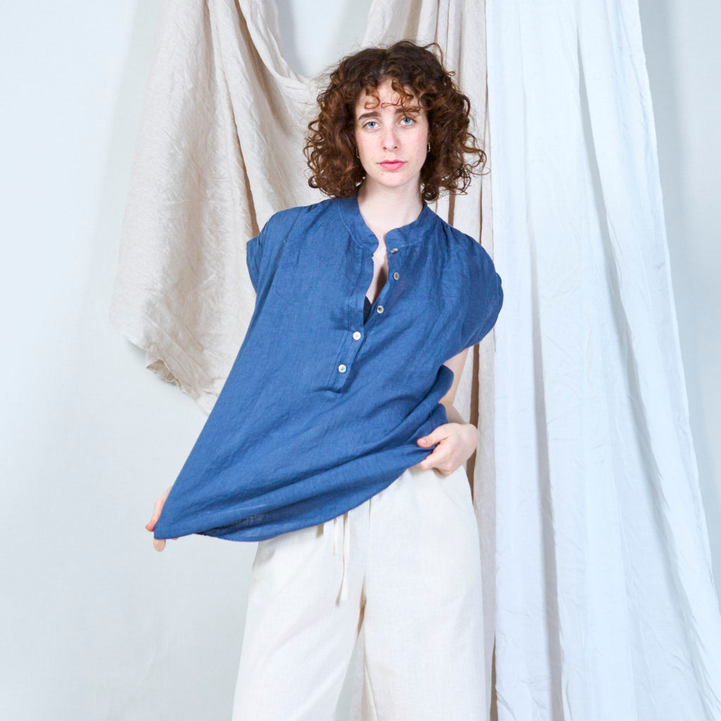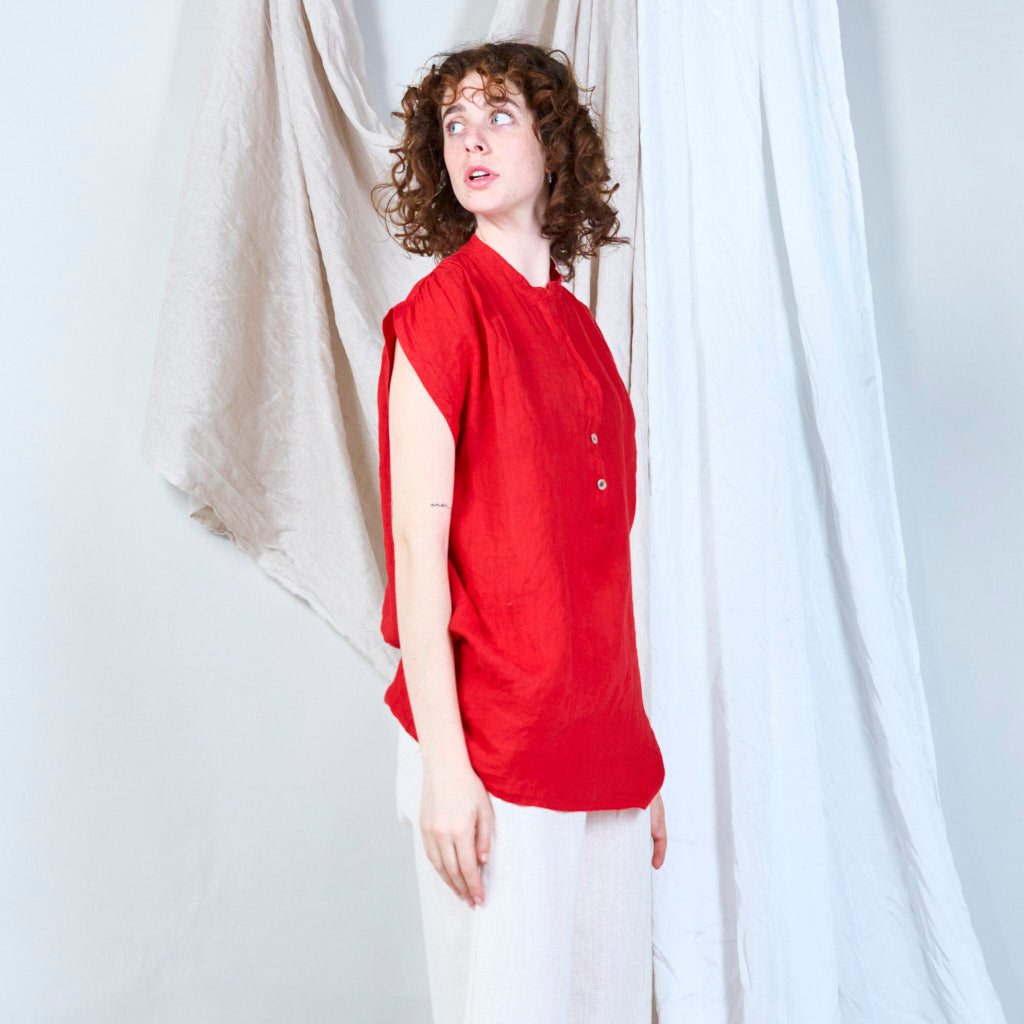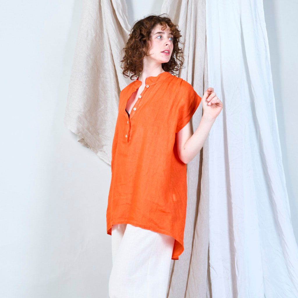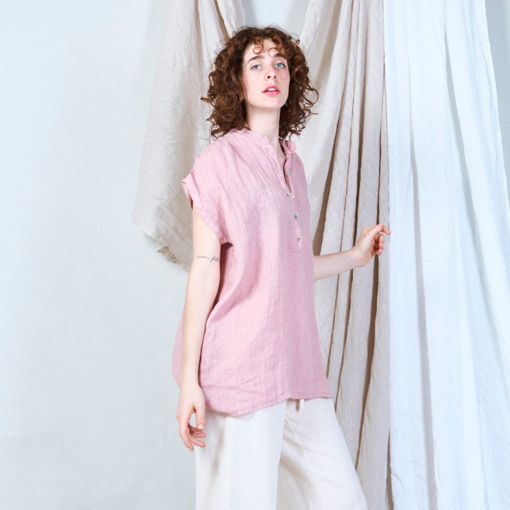 Zrelaksowana lniana tunik z hurtową kołnierzem