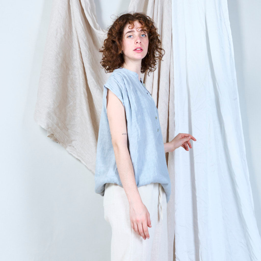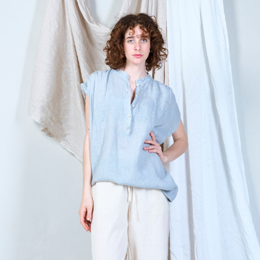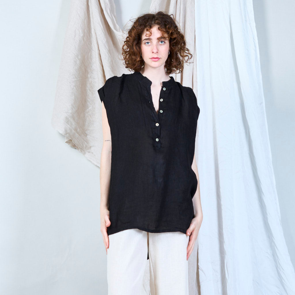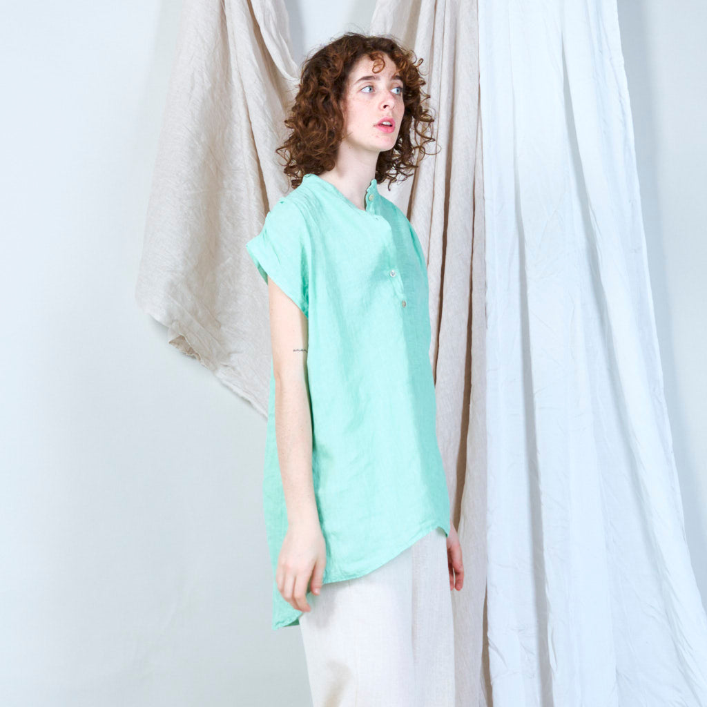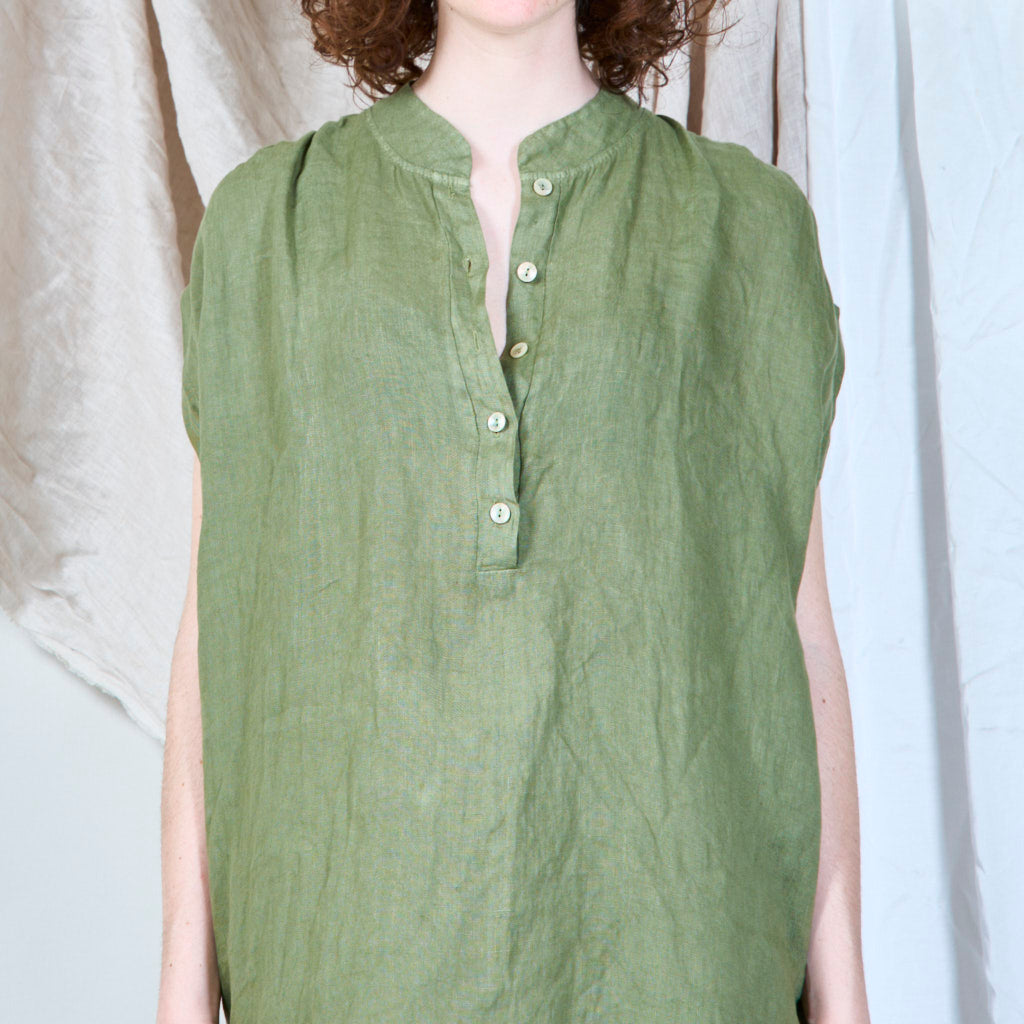 Zrelaksowana lniana tunik z hurtową kołnierzem