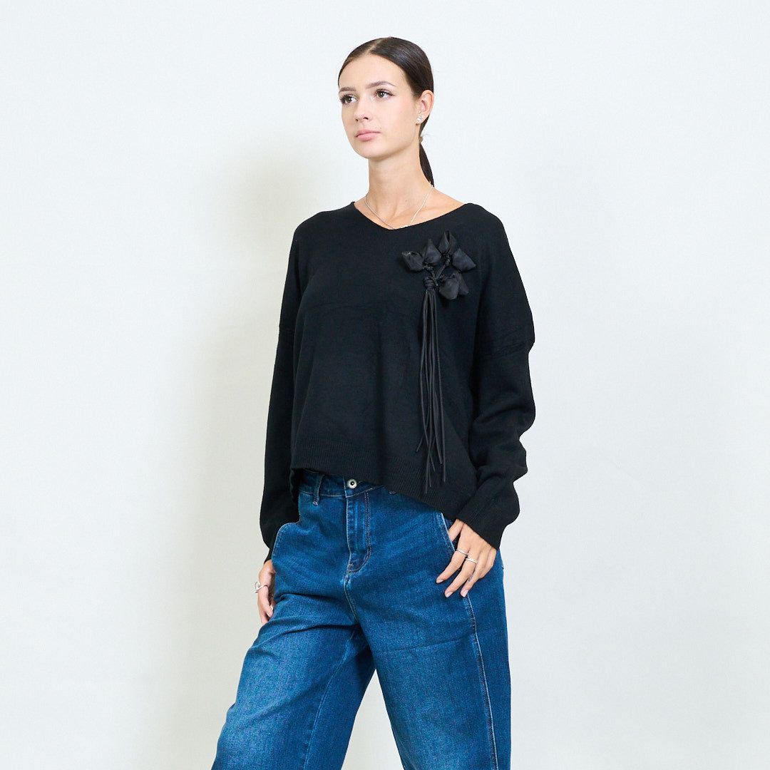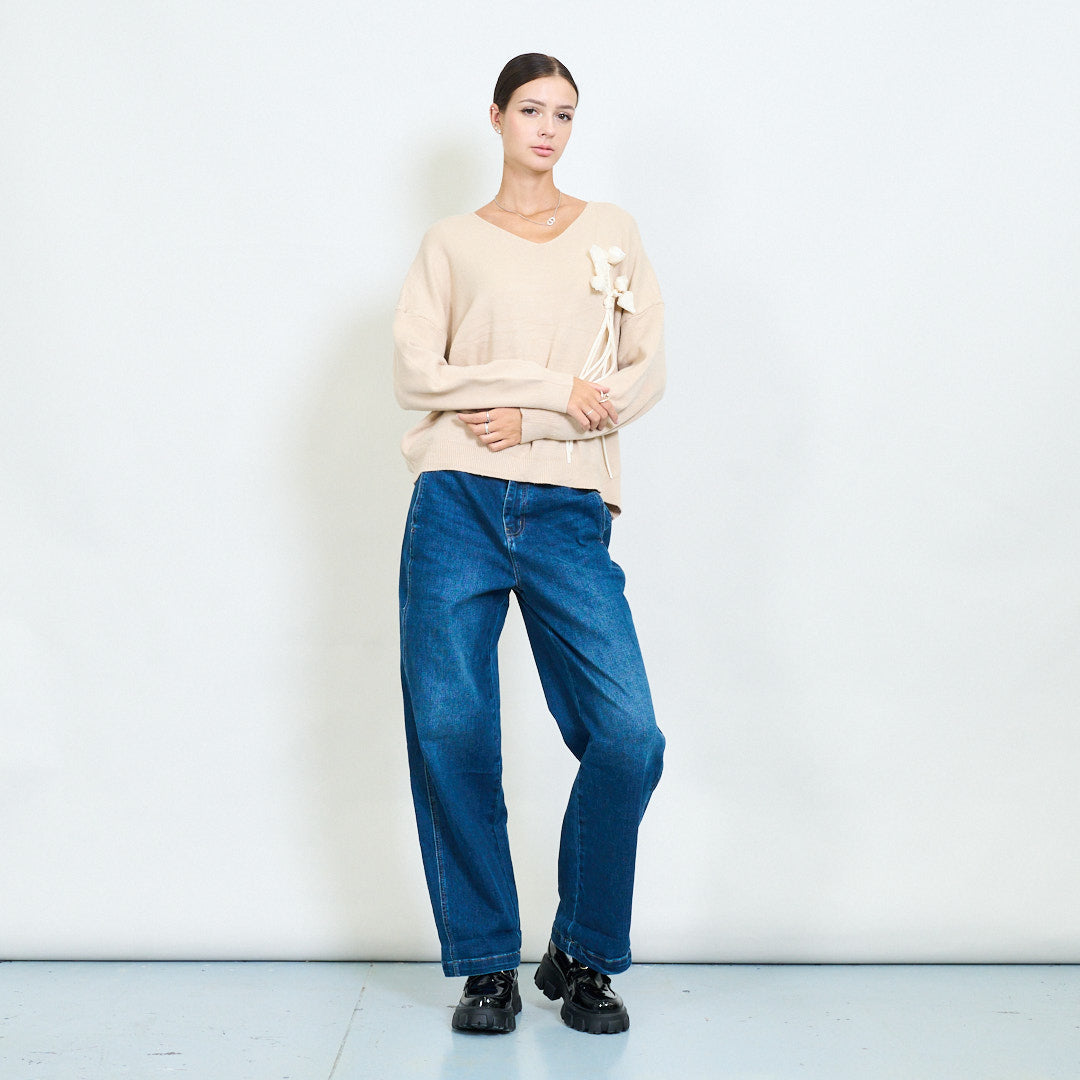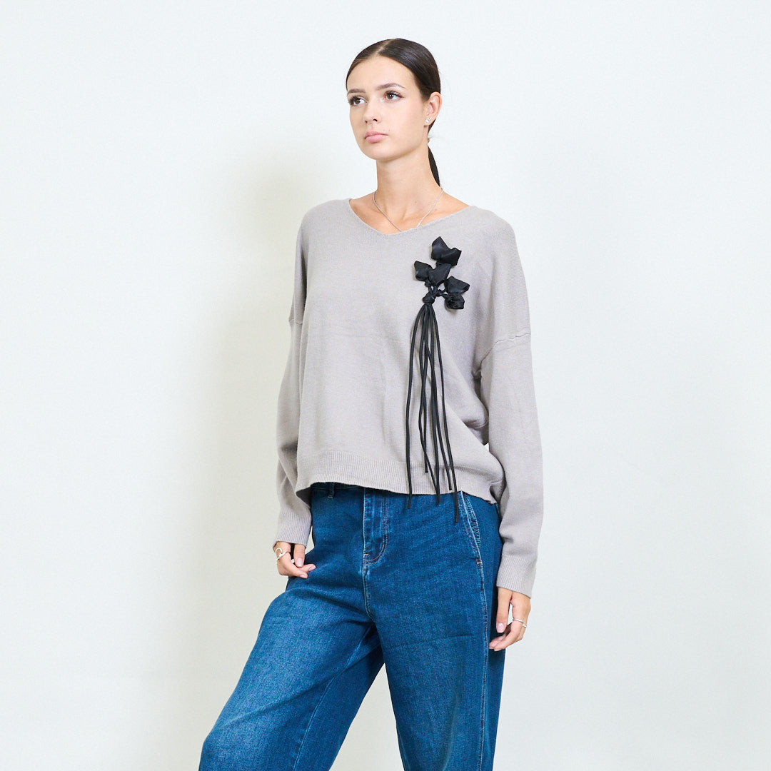 3D floral applique v-neck knit sweater wholesale