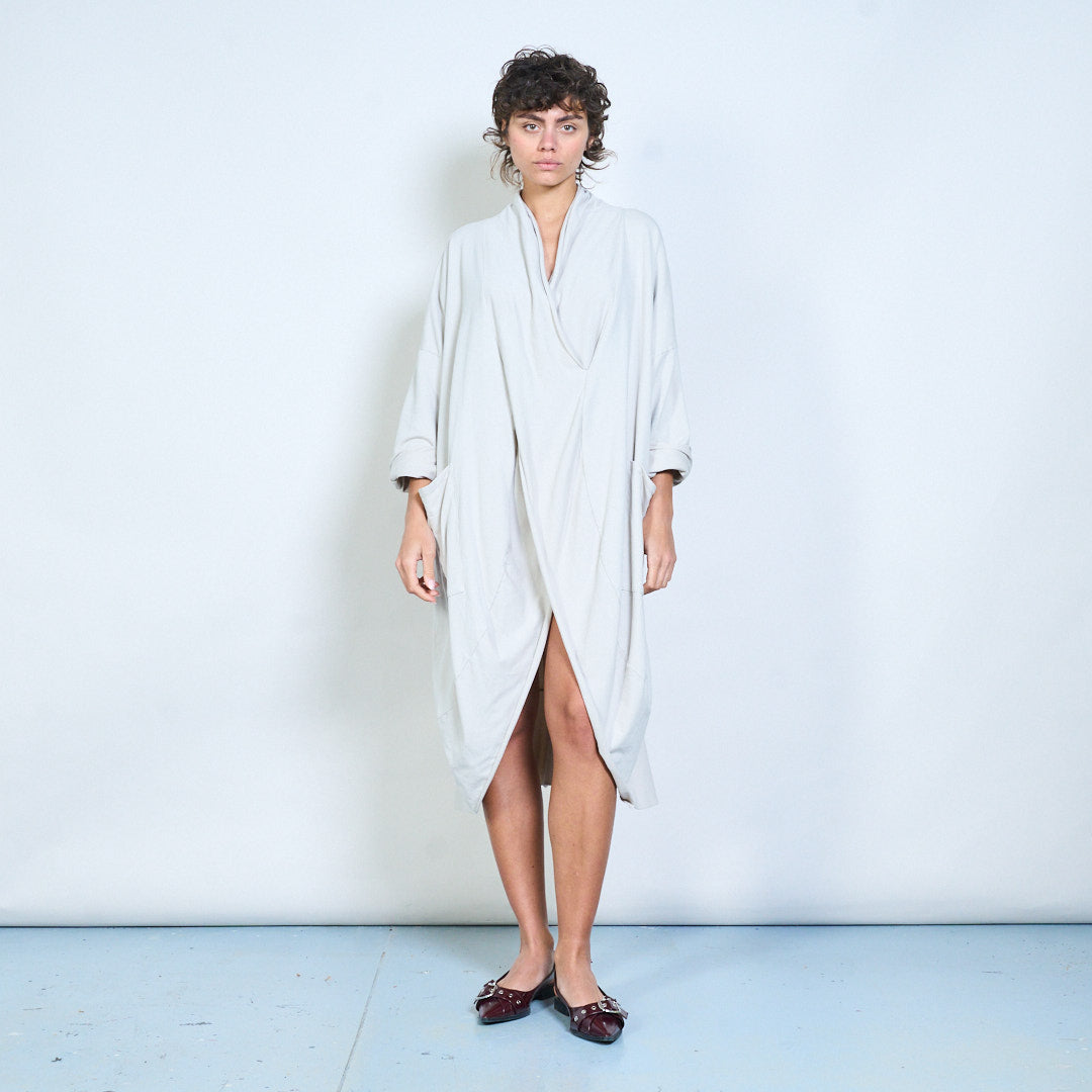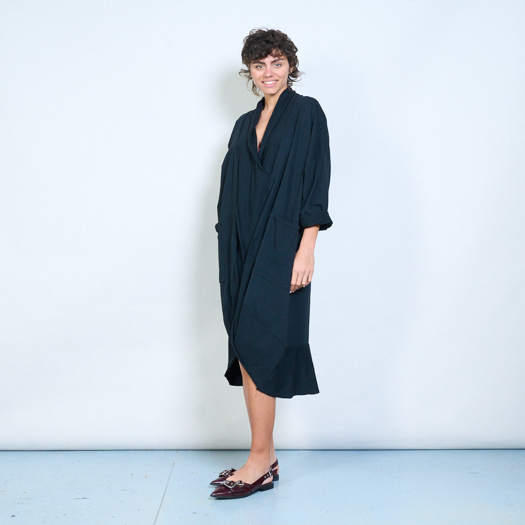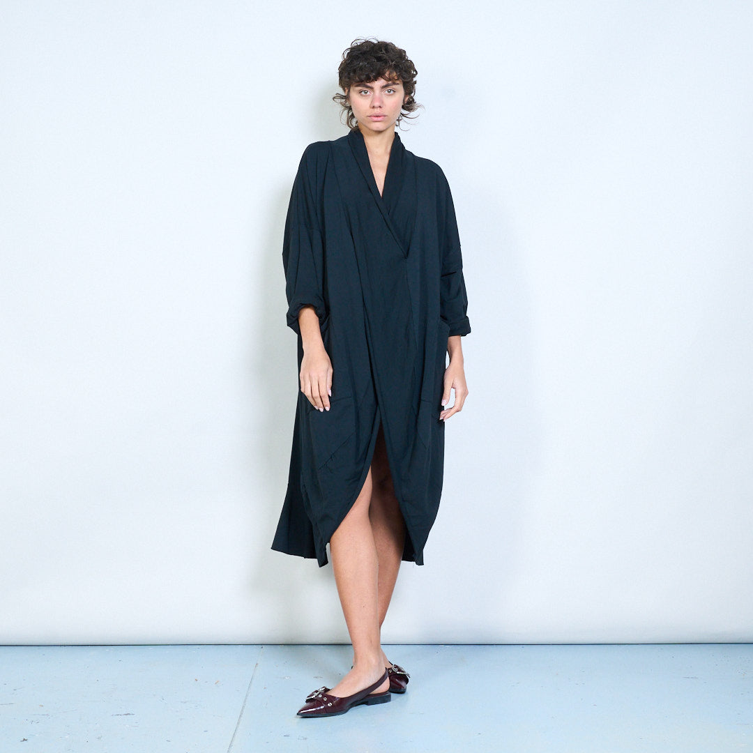 Draped wrap style long sleeve dress with pocket detail wholesale
