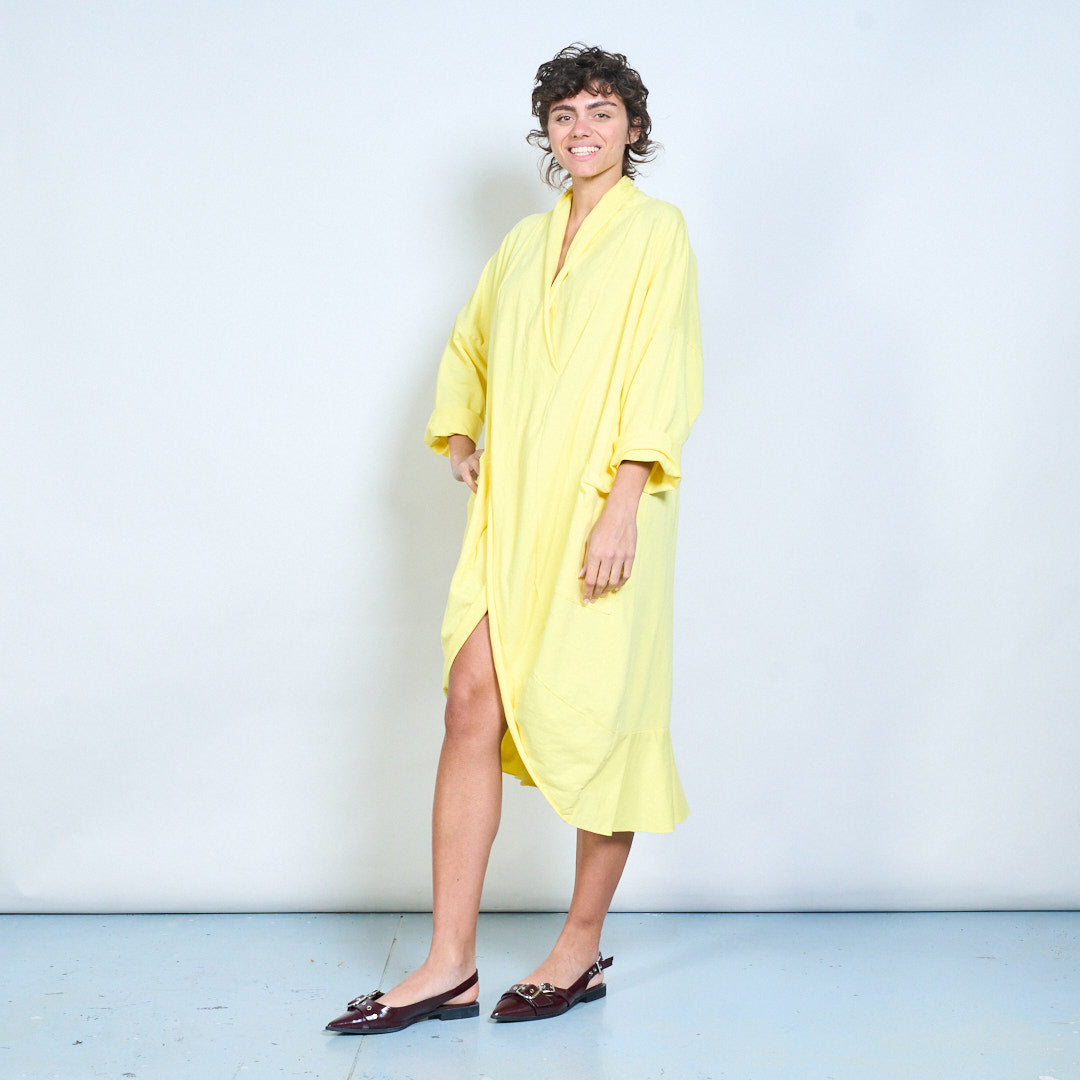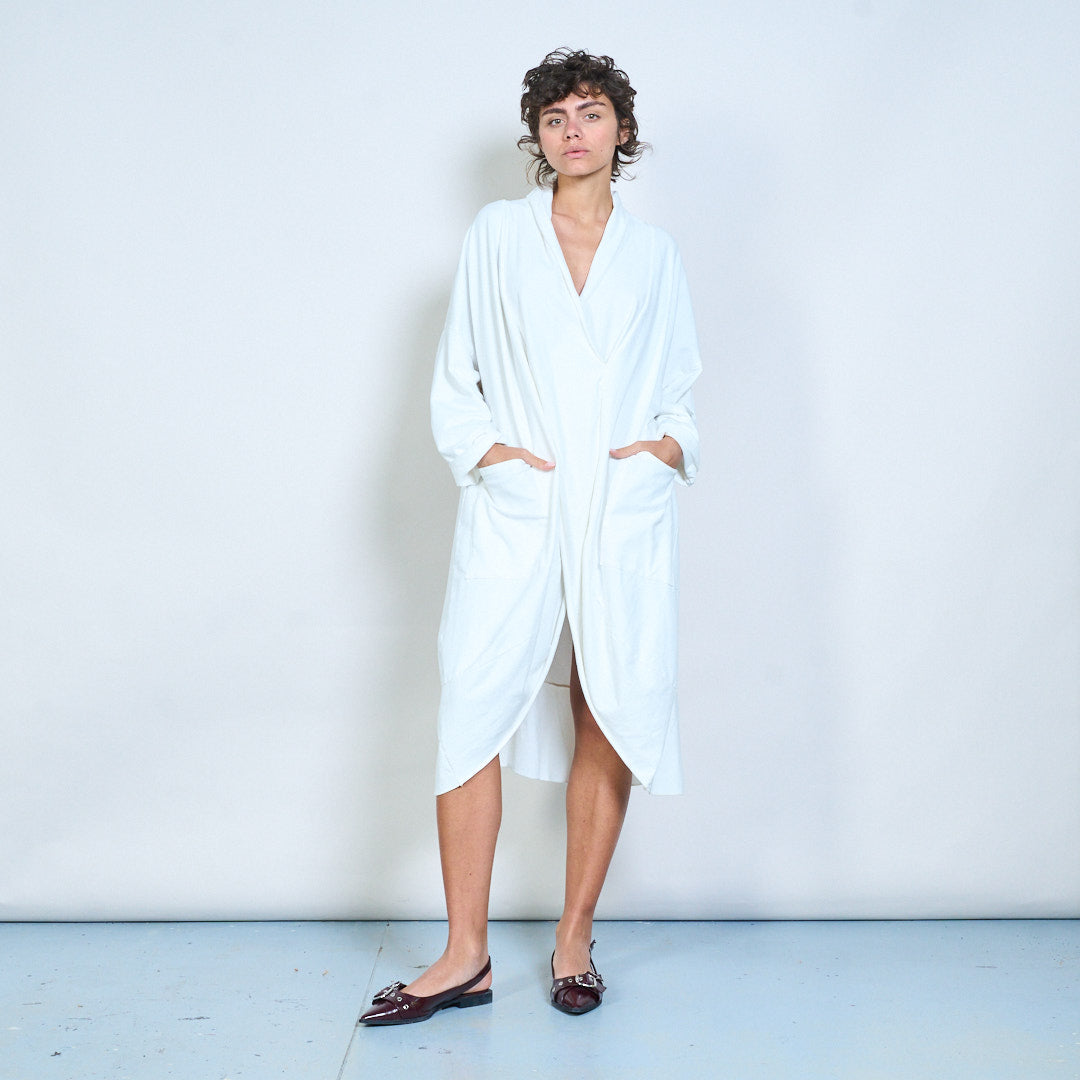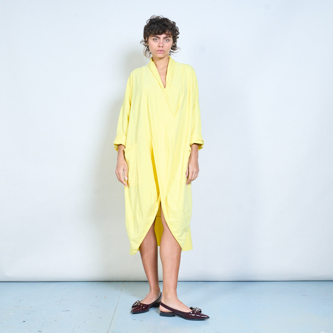 Draped wrap style long sleeve dress with pocket detail wholesale