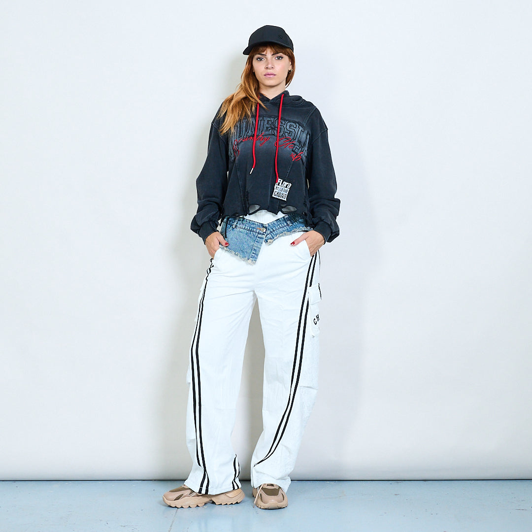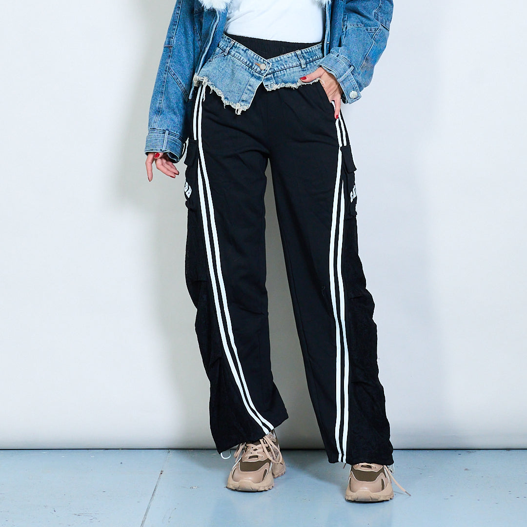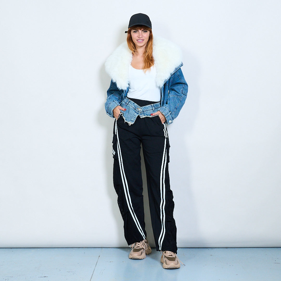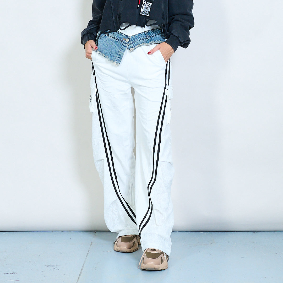 Hybrid denim waist cargo jogger trousers wholesale