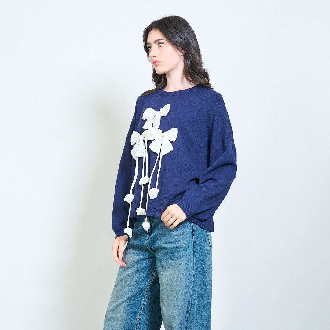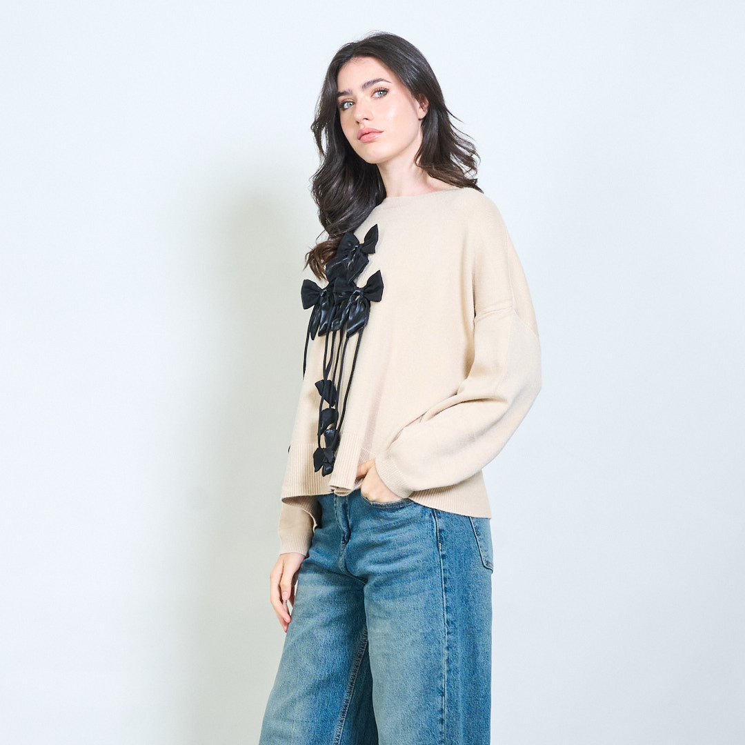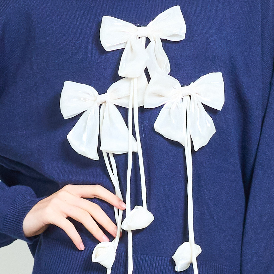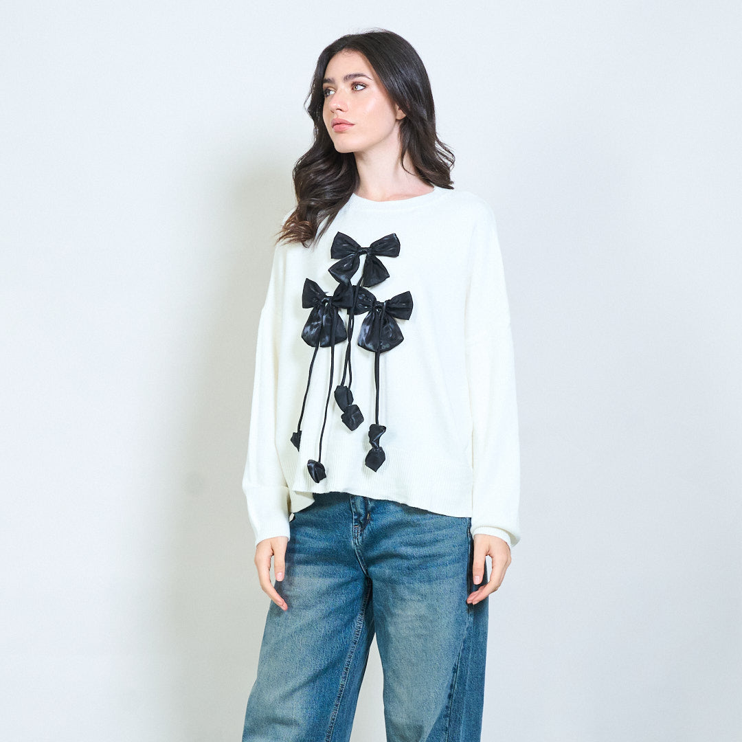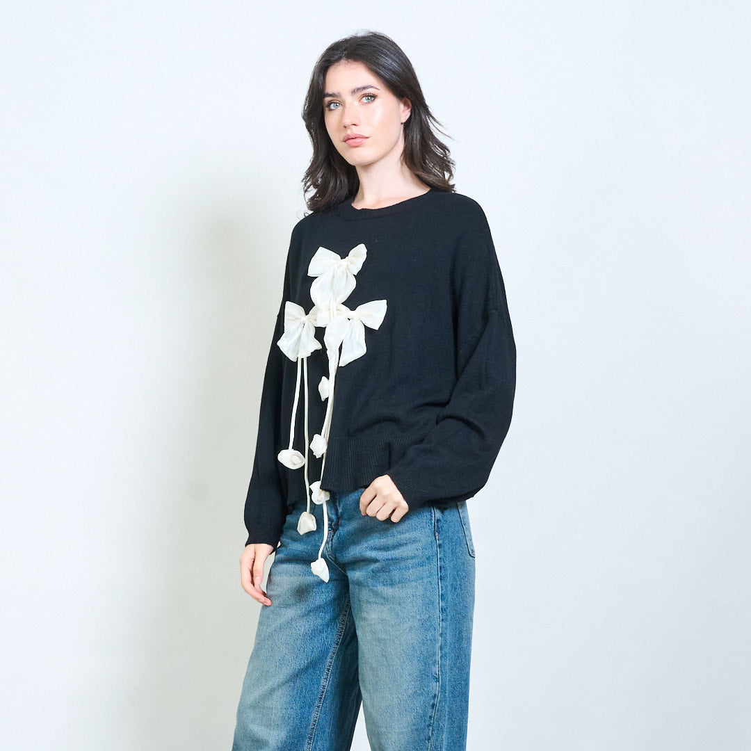 Ribbon applique knit sweater wholesale