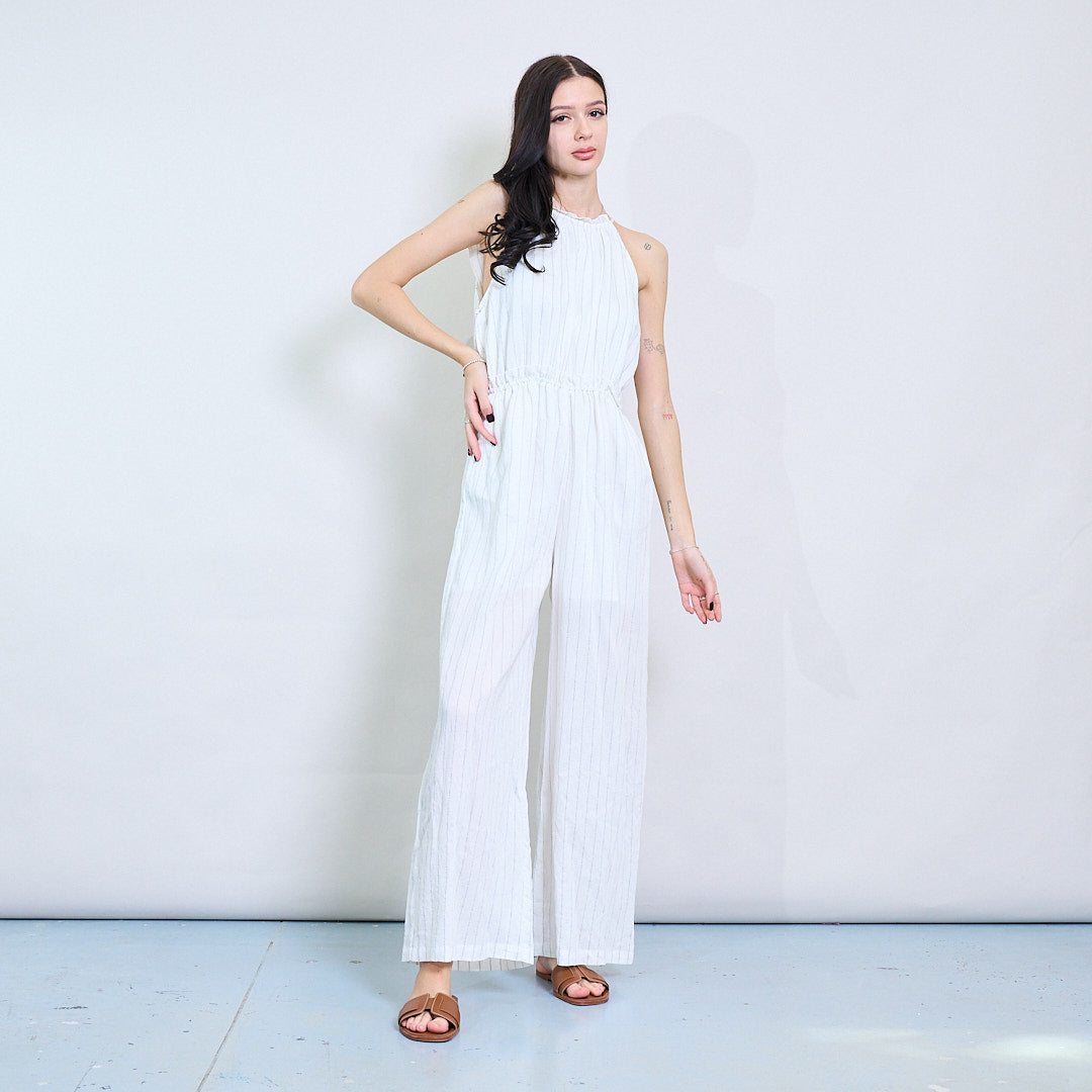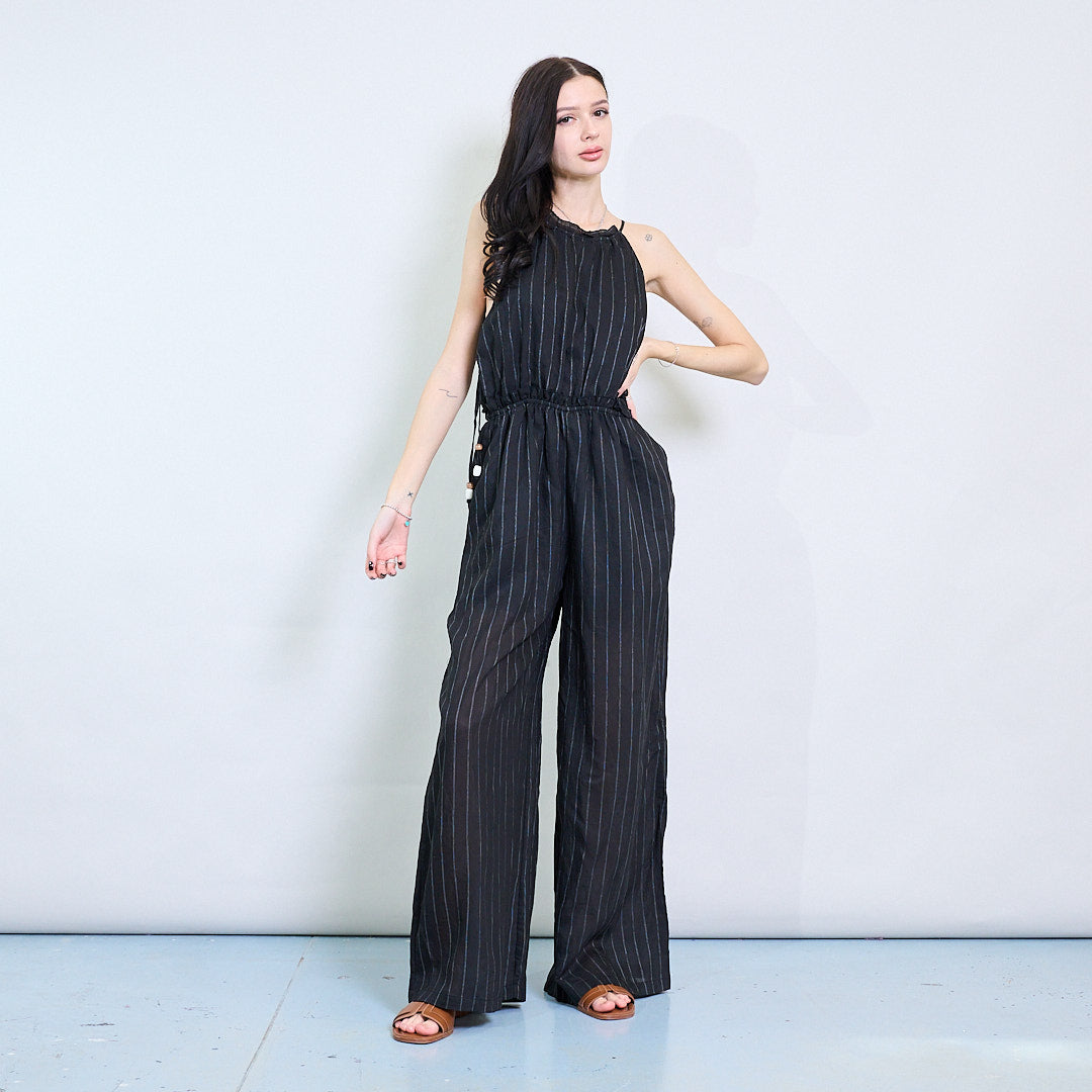 - Stylish sleeveless jumpsuit featuring an elegant ruffle neckline