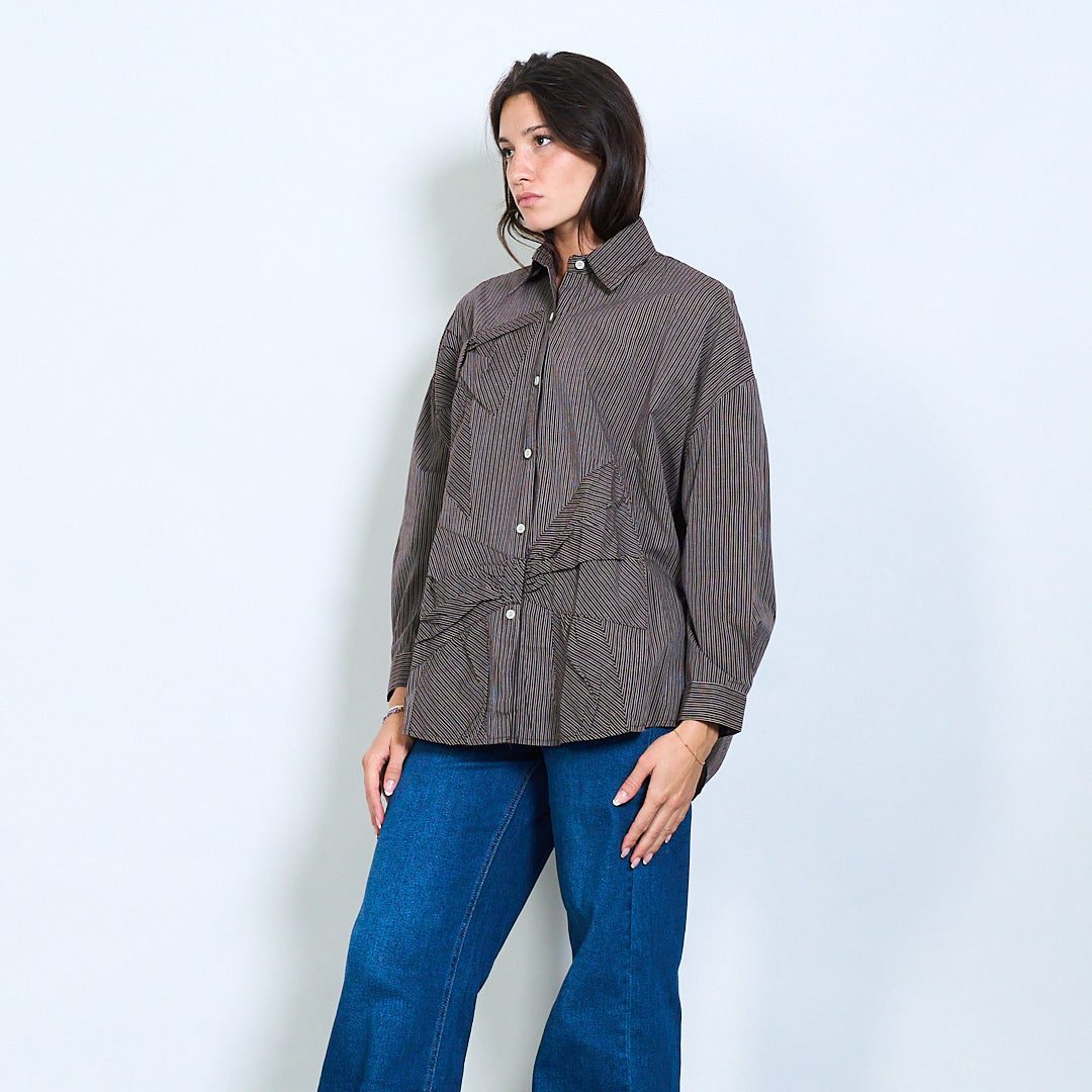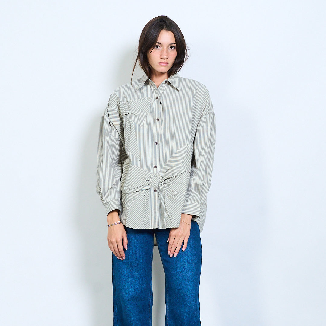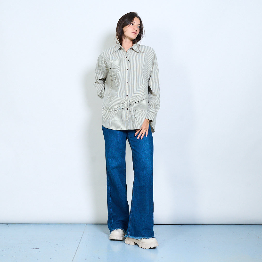 - Detalhes exclusivos de nó torcido na cintura frontal
