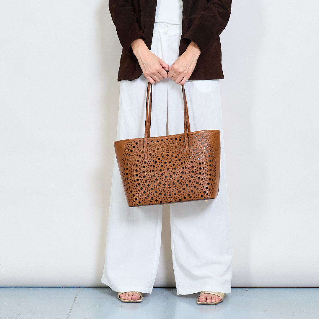Bag de bolsa estruturada a laser geométrica com alça dupla por atacado