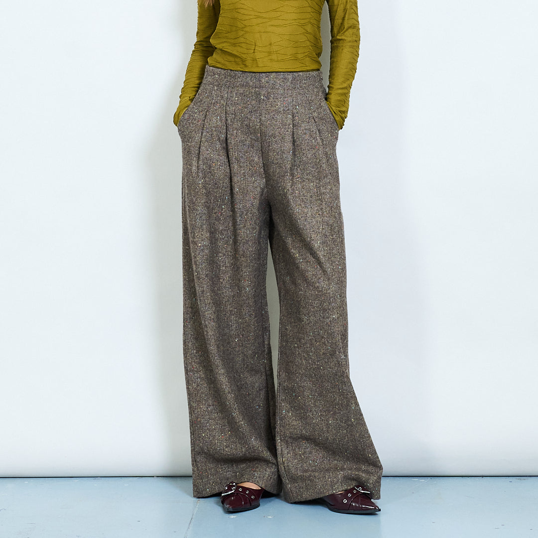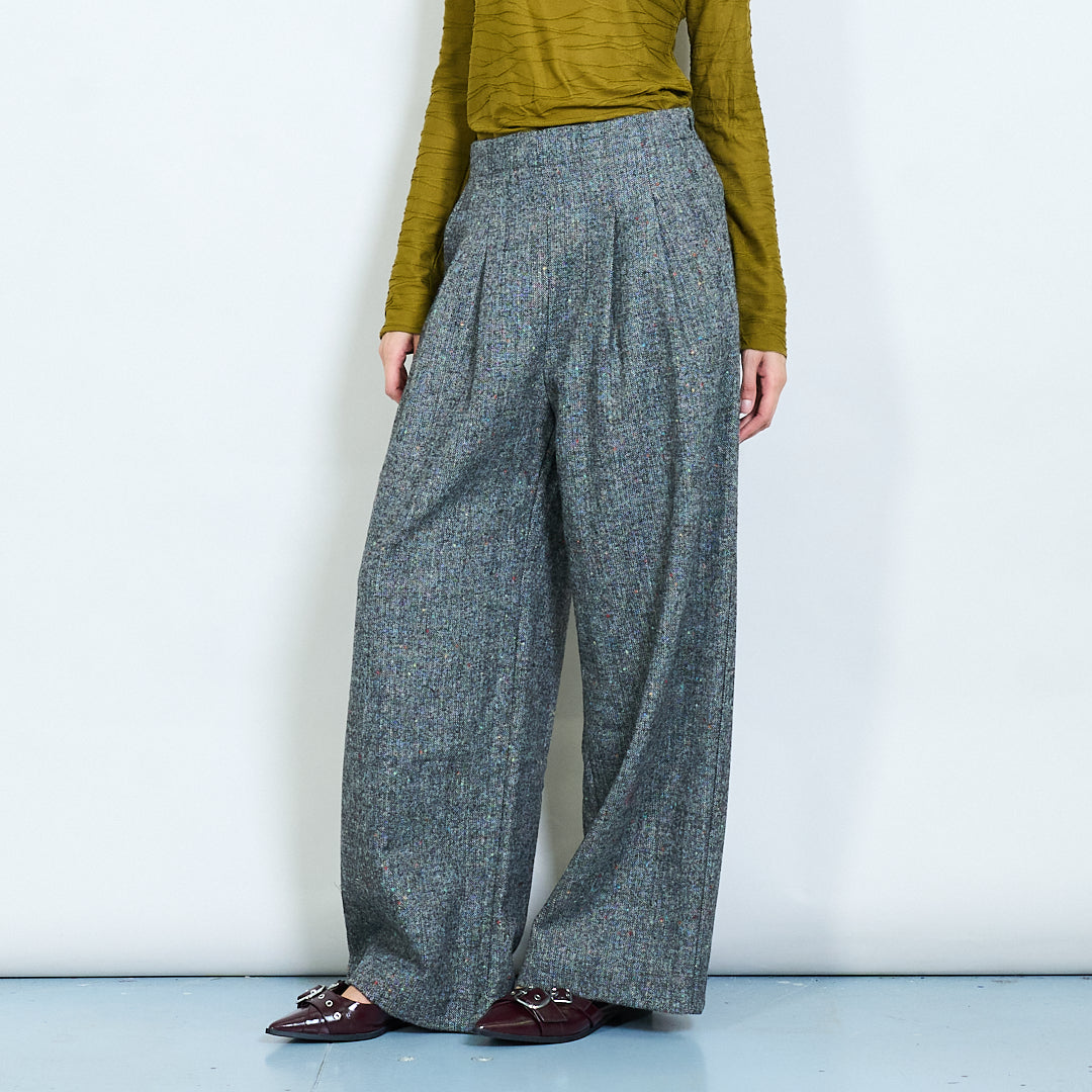Calça de lã ajustada de cintura alta plissada de lã de lã por atacado