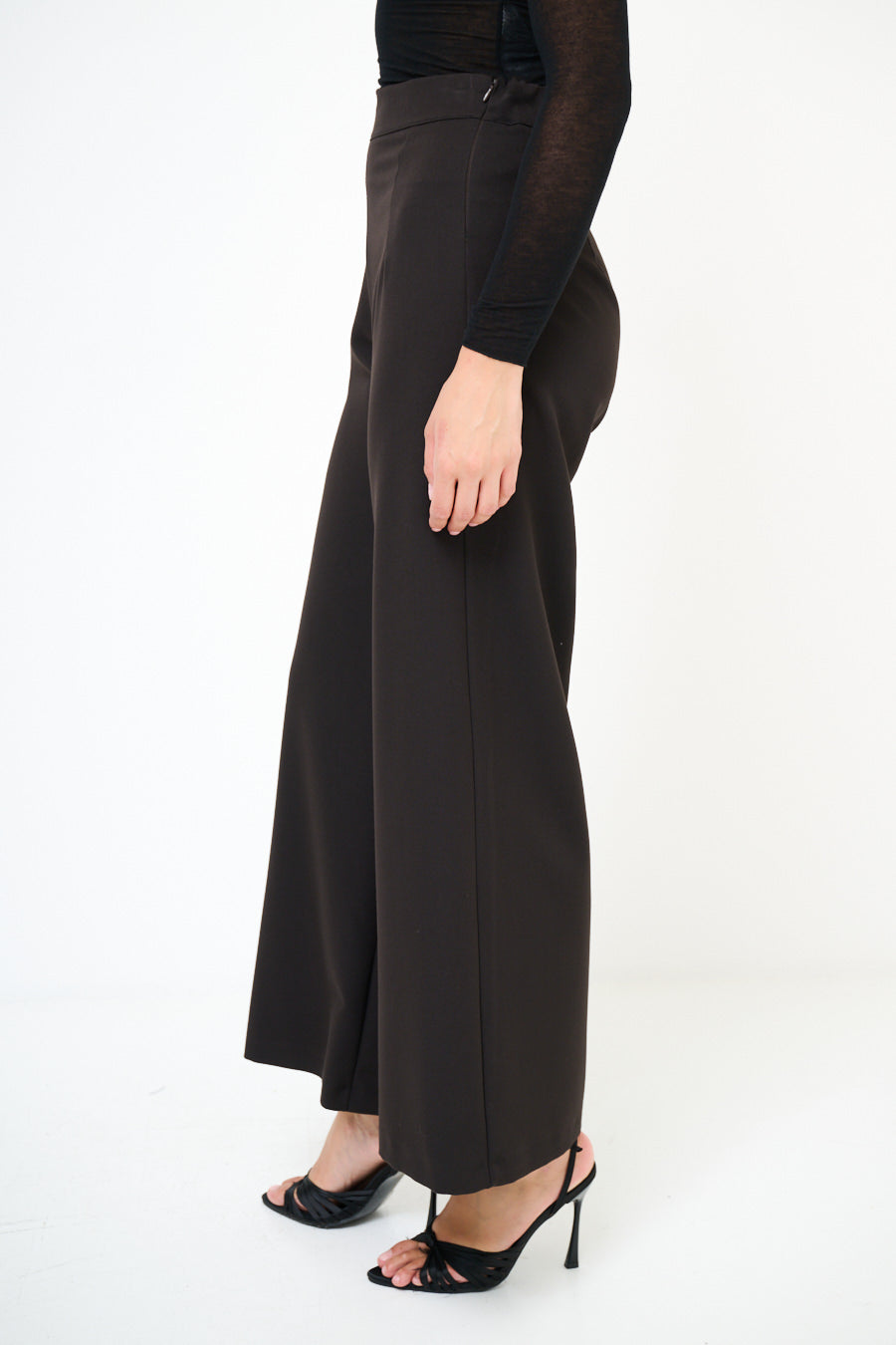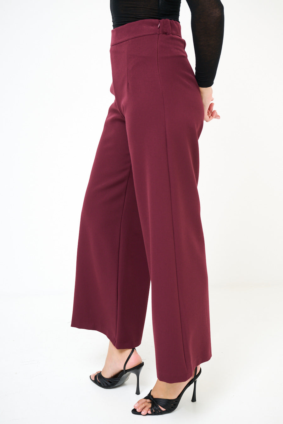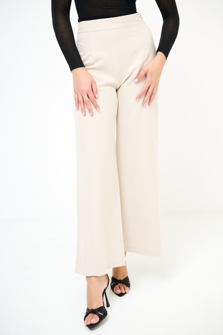 Calças de cintura alta de perna larga larga com cós limpos por atacado