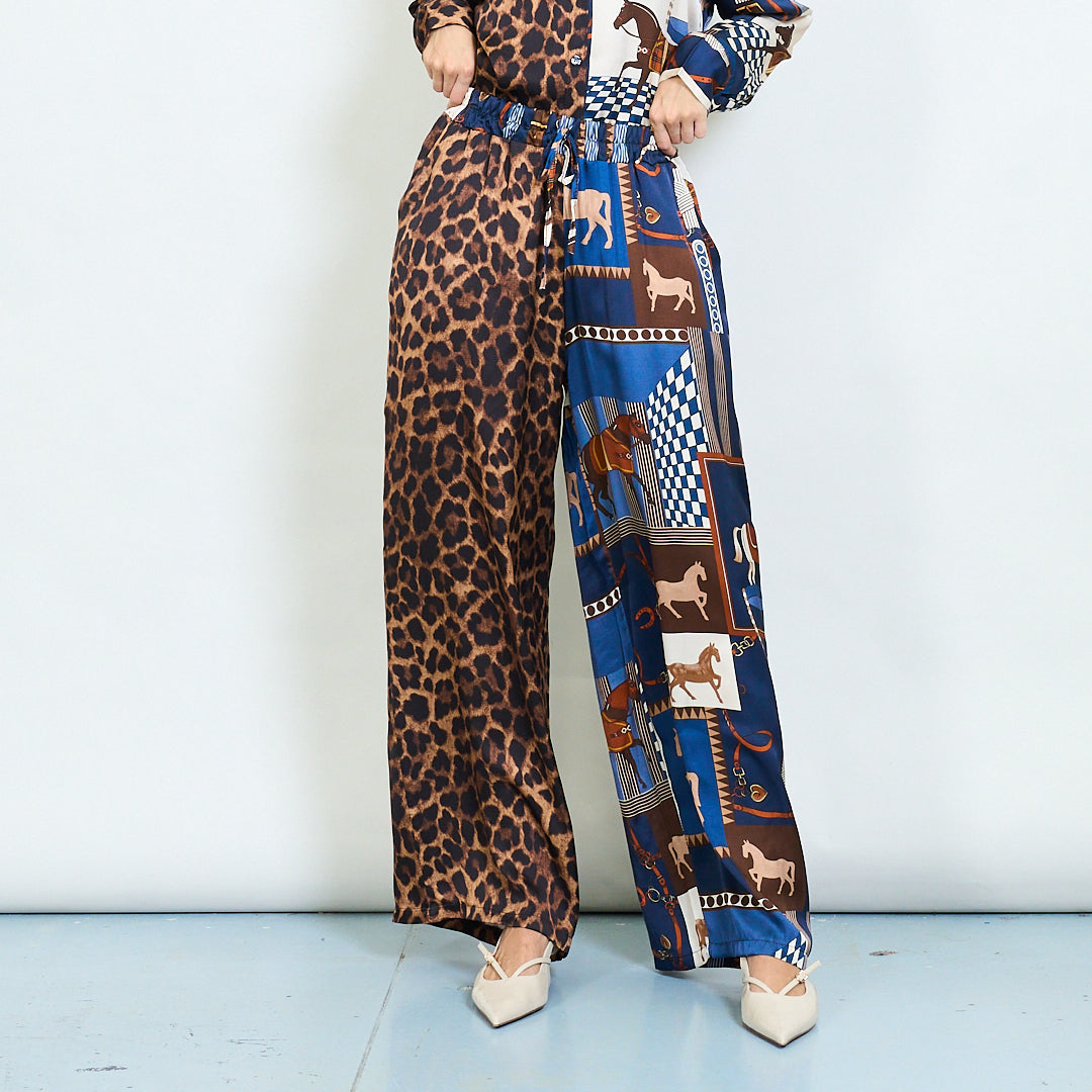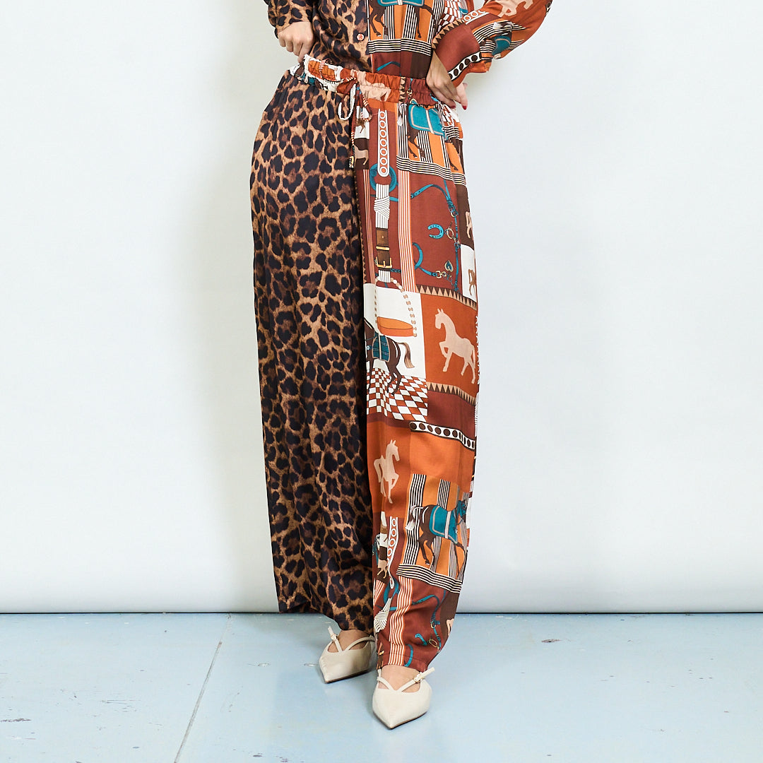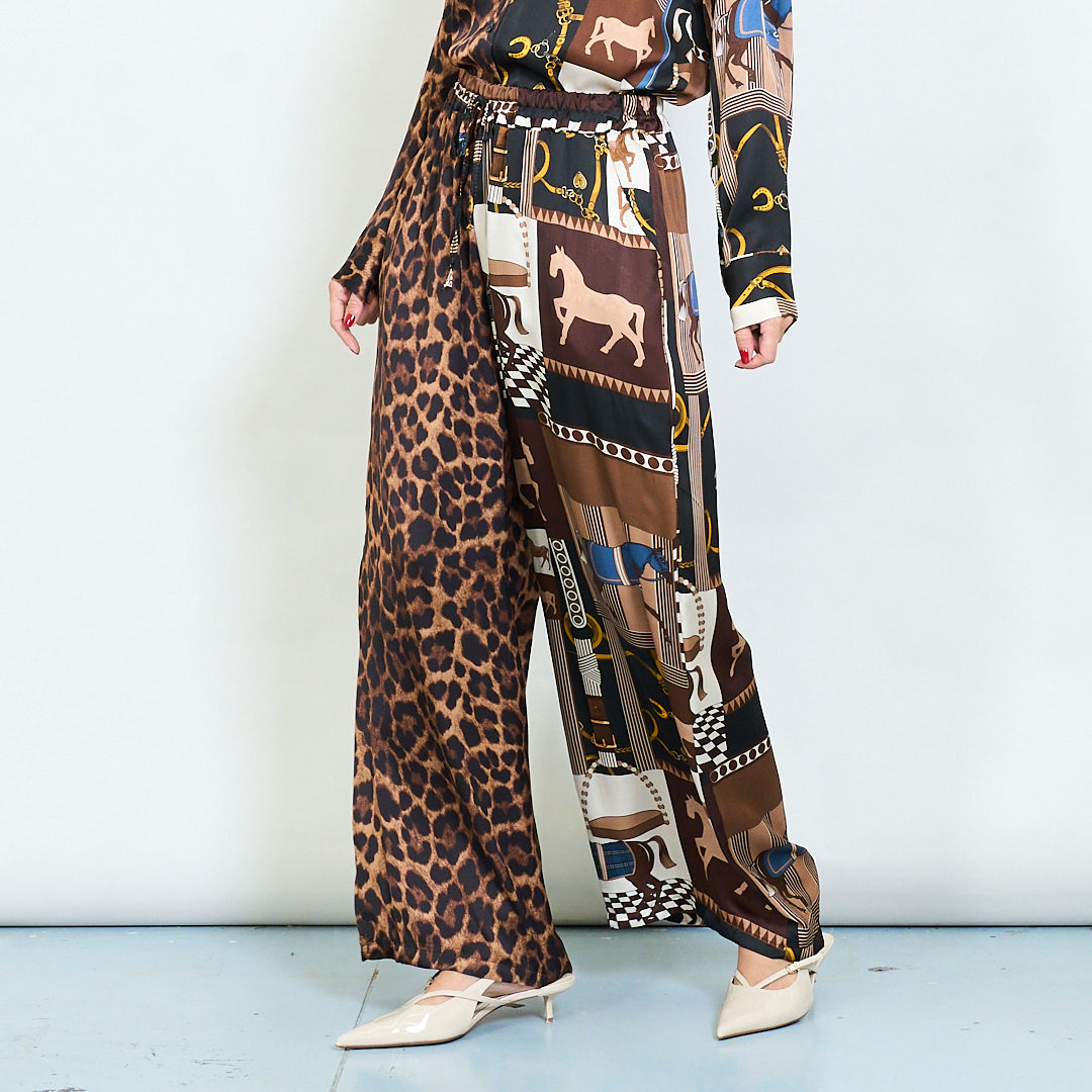 Calças de leopardo misto e impressão equestre de pernas largas por atacado