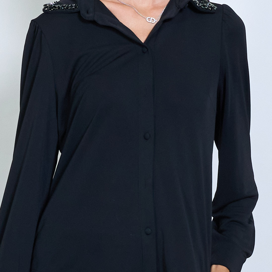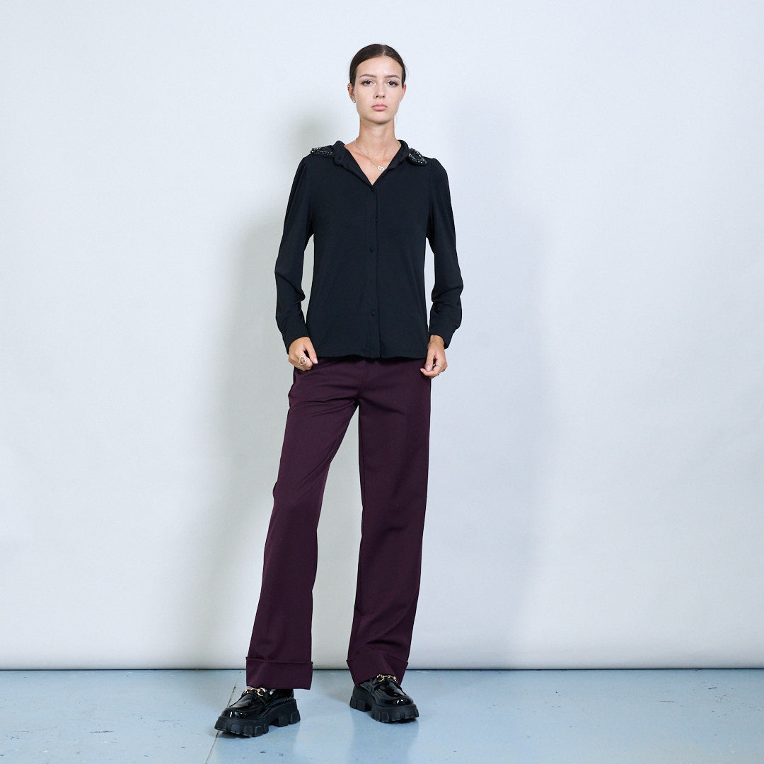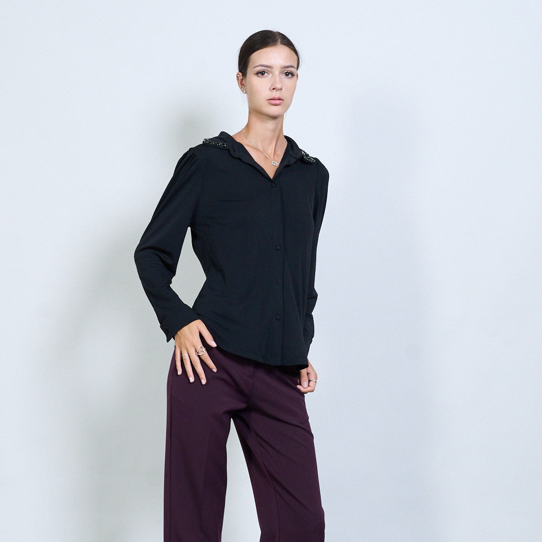 Blusa clássica de botão com colarinho embelezado por atacado