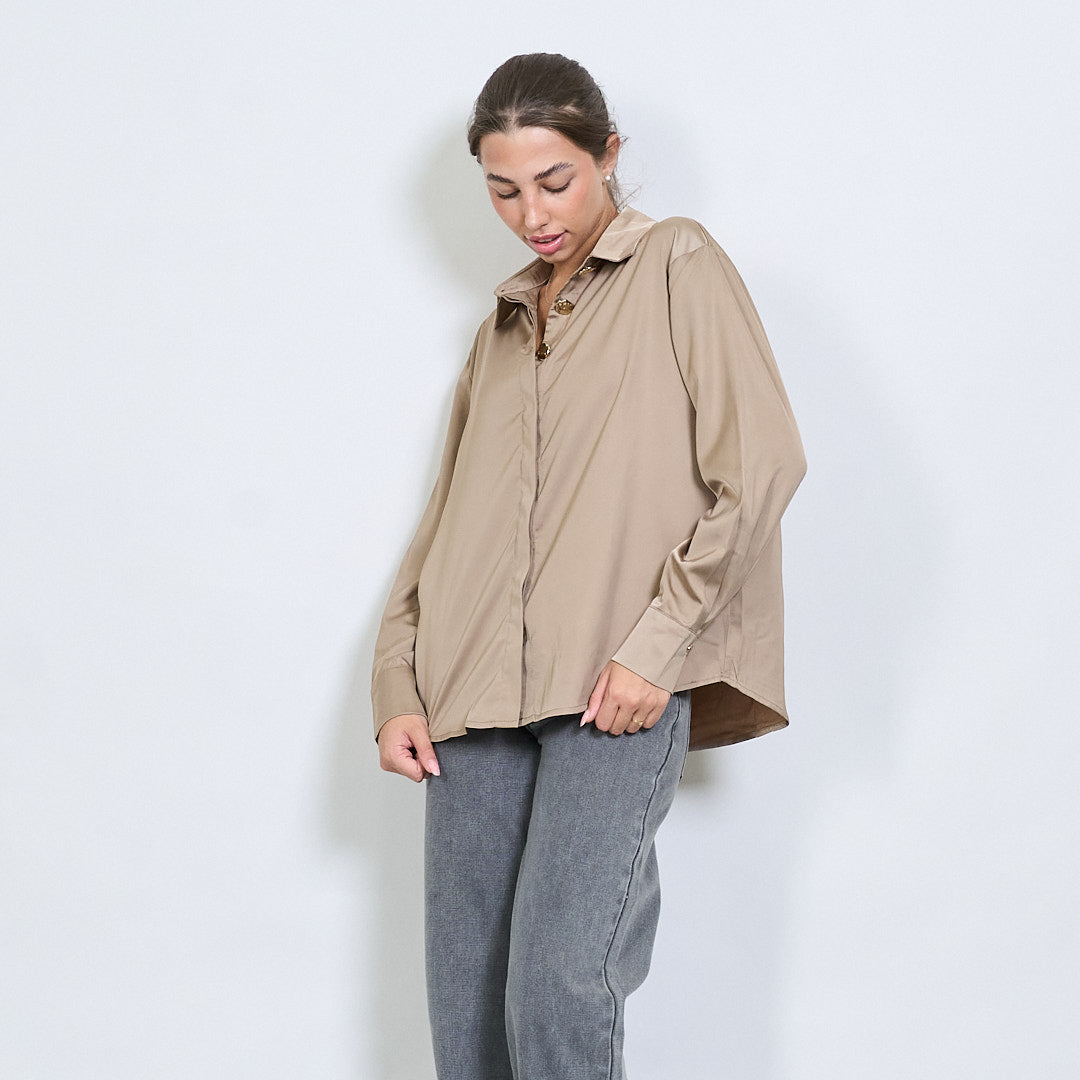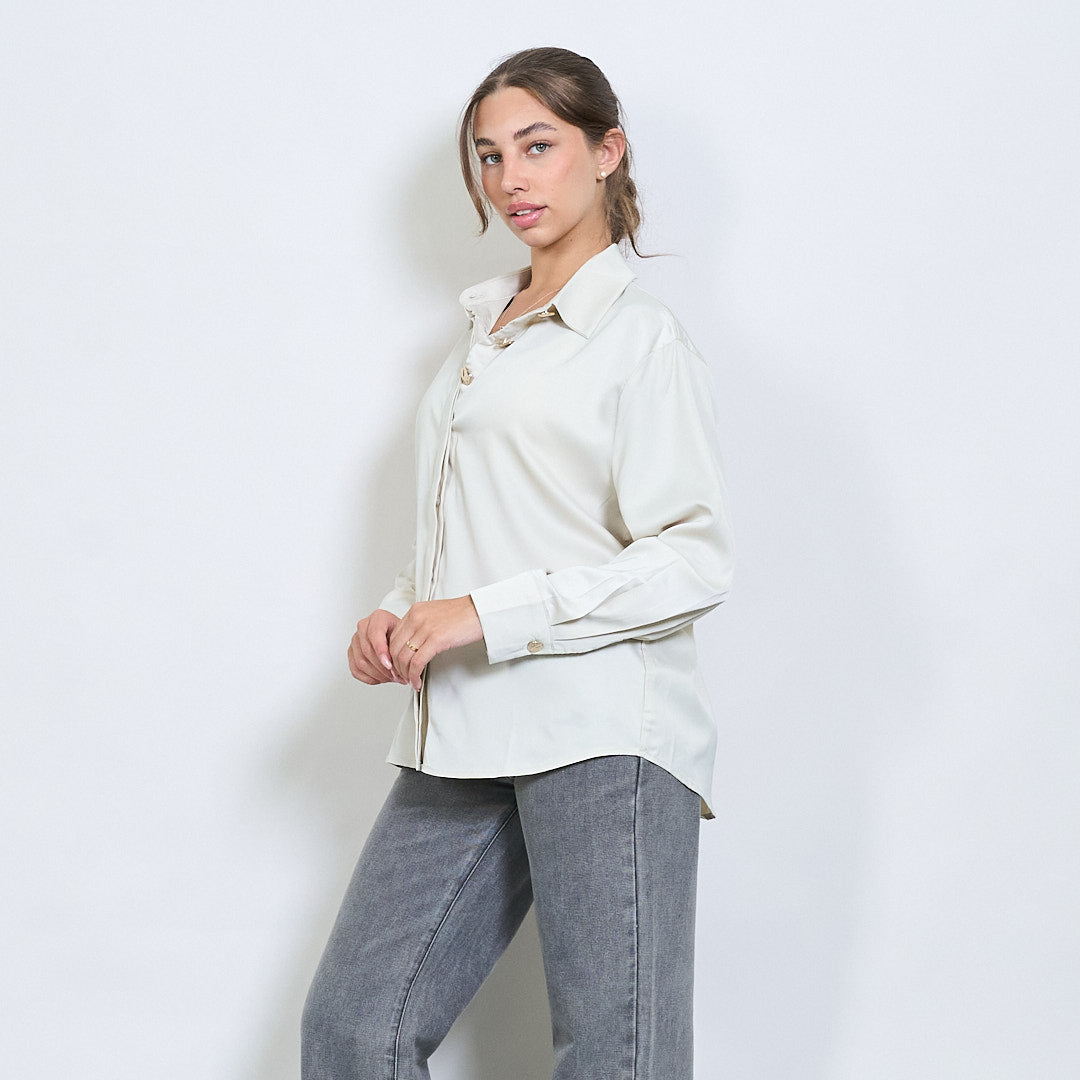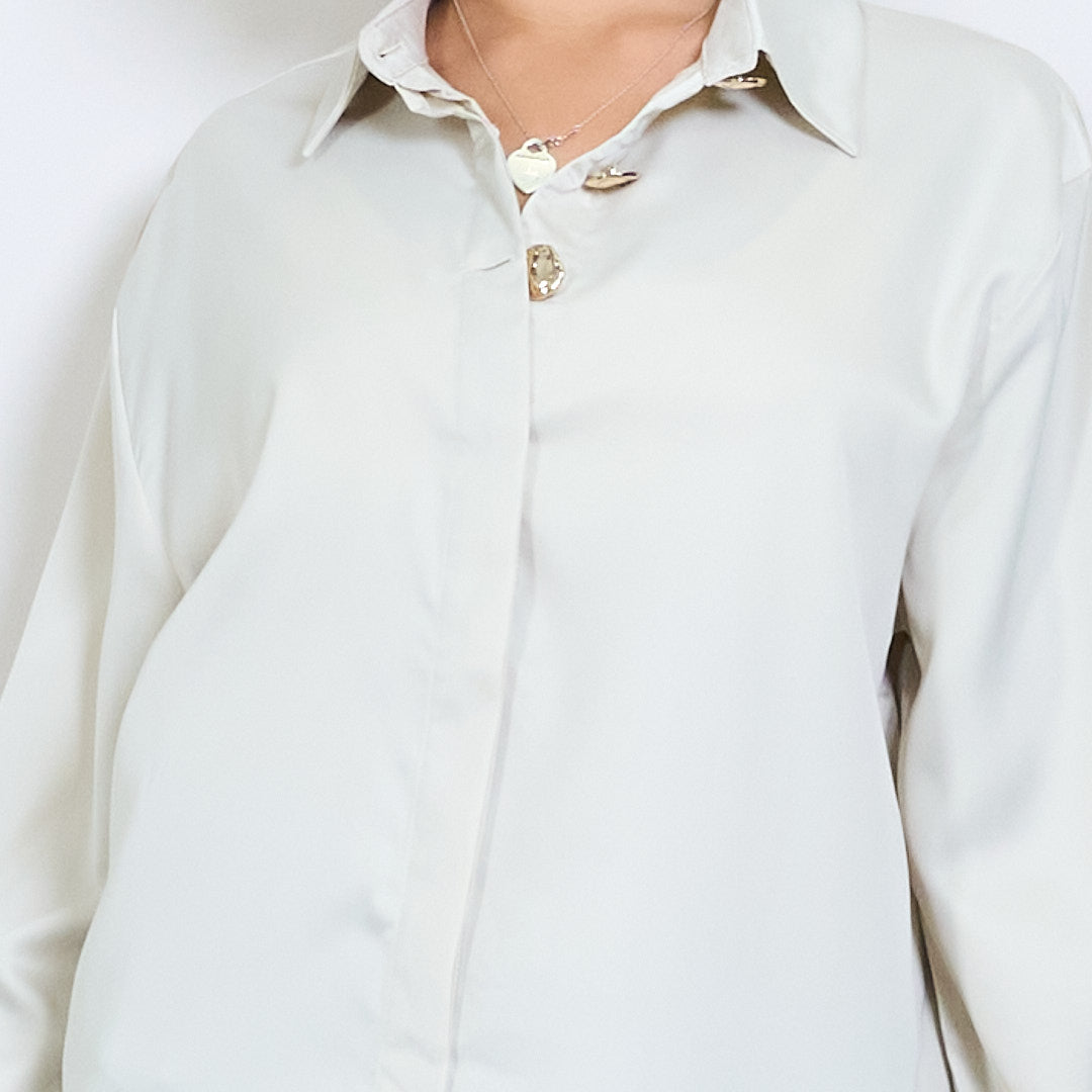 Camisa de Efeito Cetim com Botões de Mármore por atacado