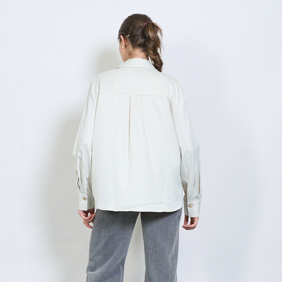- Mangas compridas com punhos abotoados
