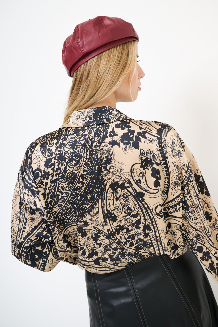 Blusa de Botão de Local de Local de Local Floral de Impressão Floral