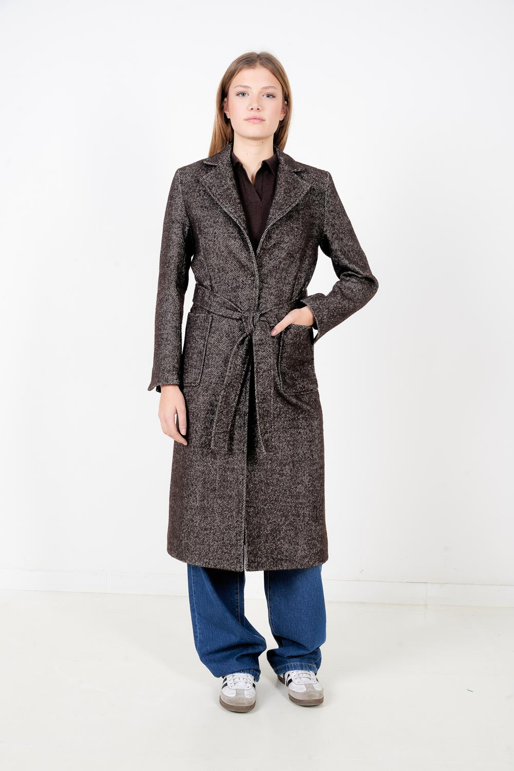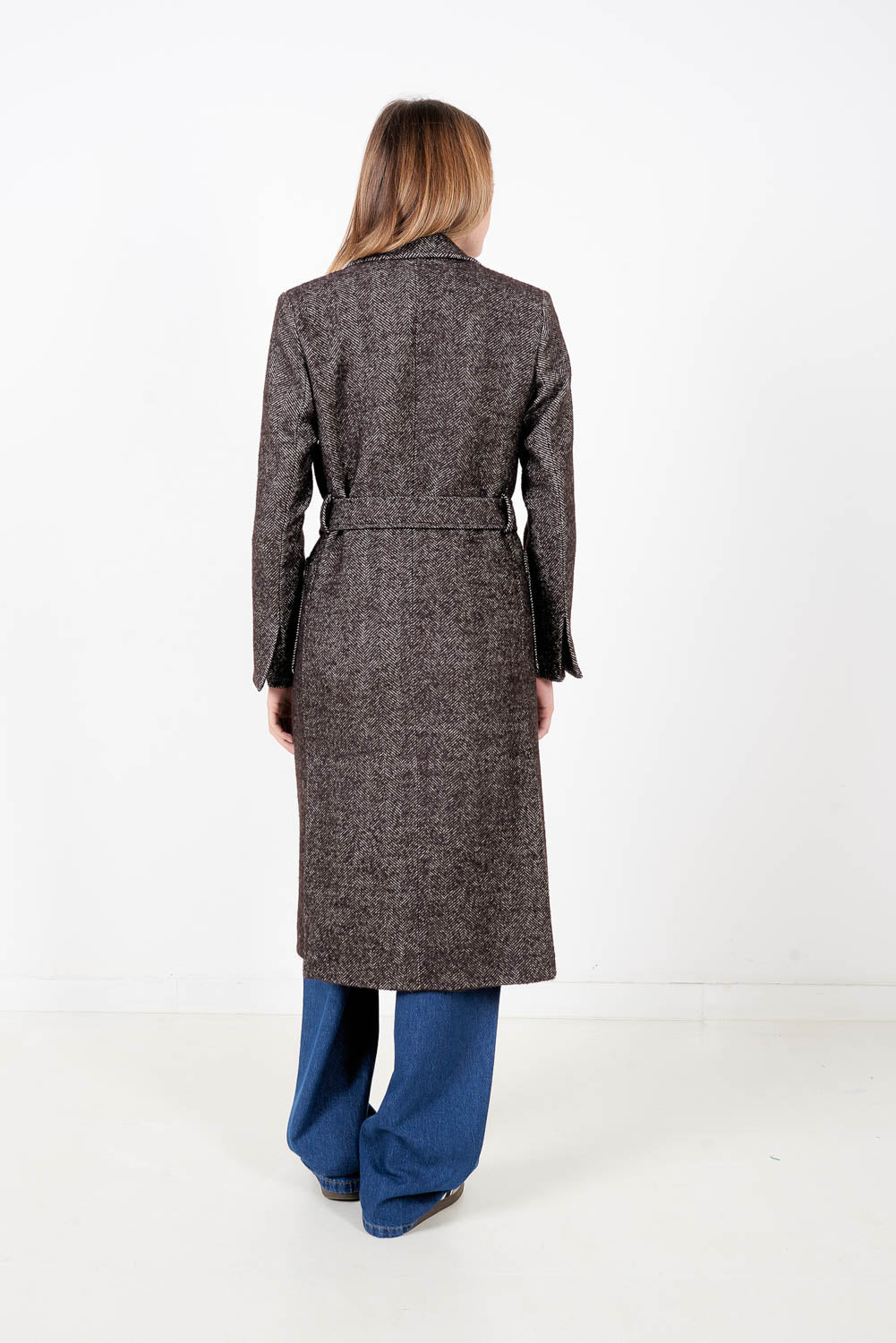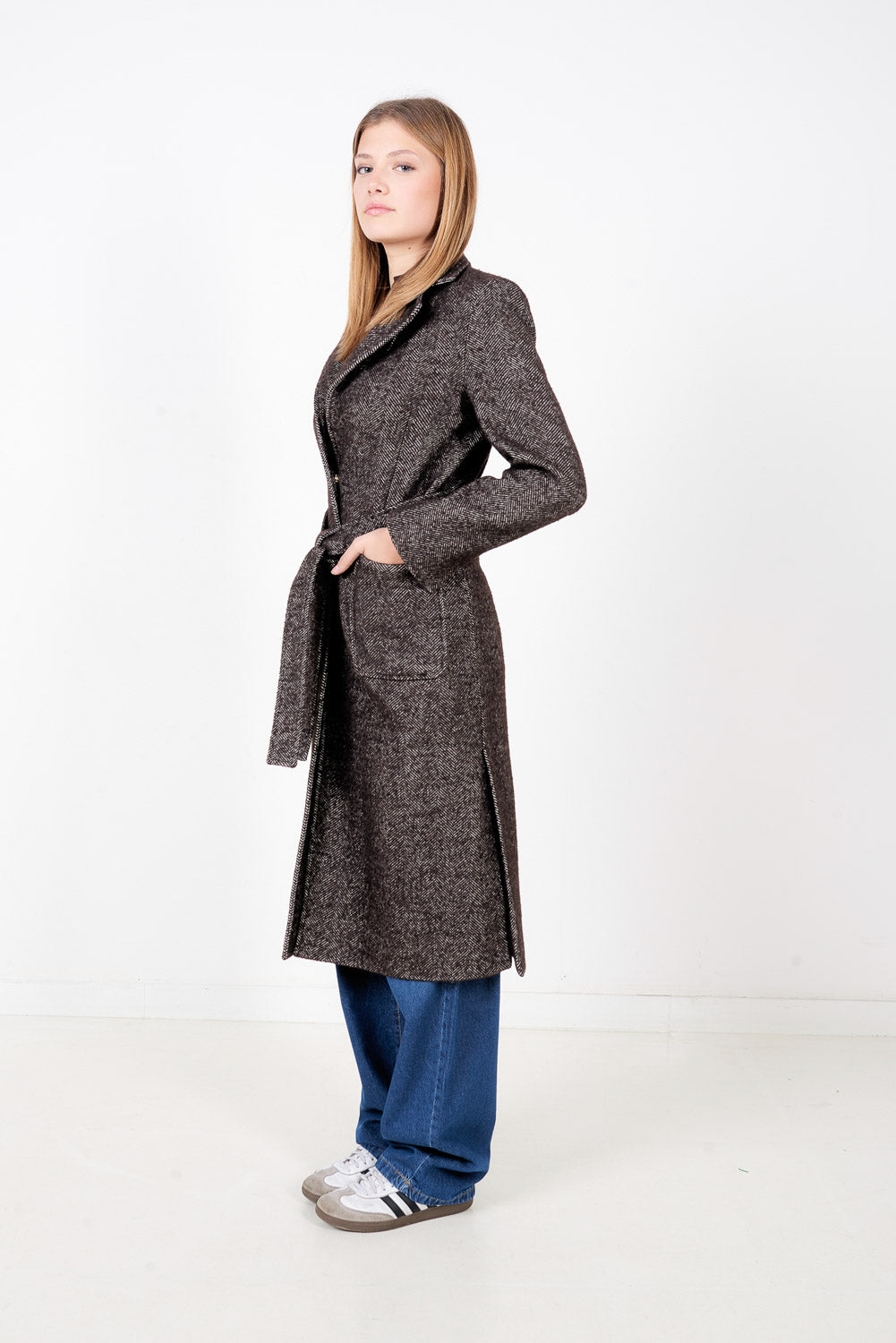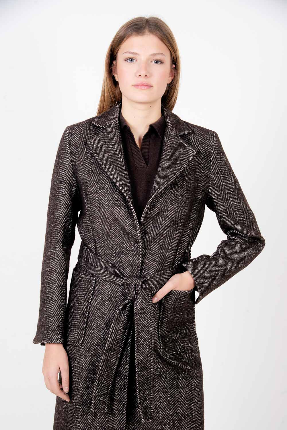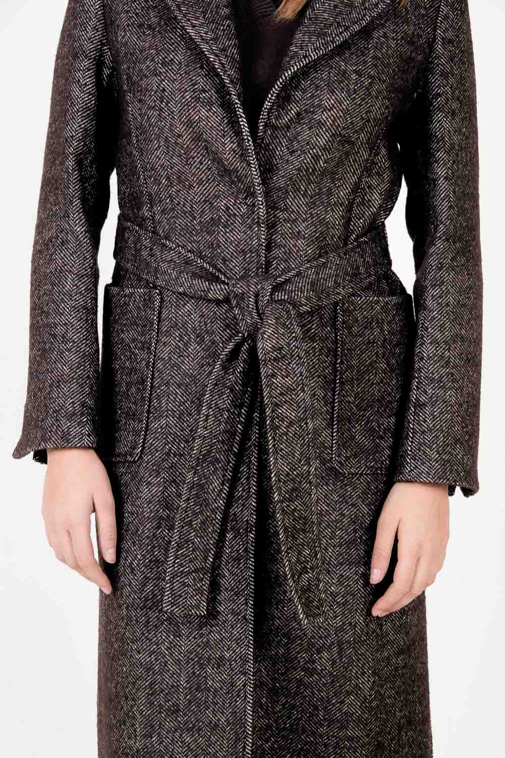 Casaco sob medida com palangre com cinto e gola de lapela no atacado