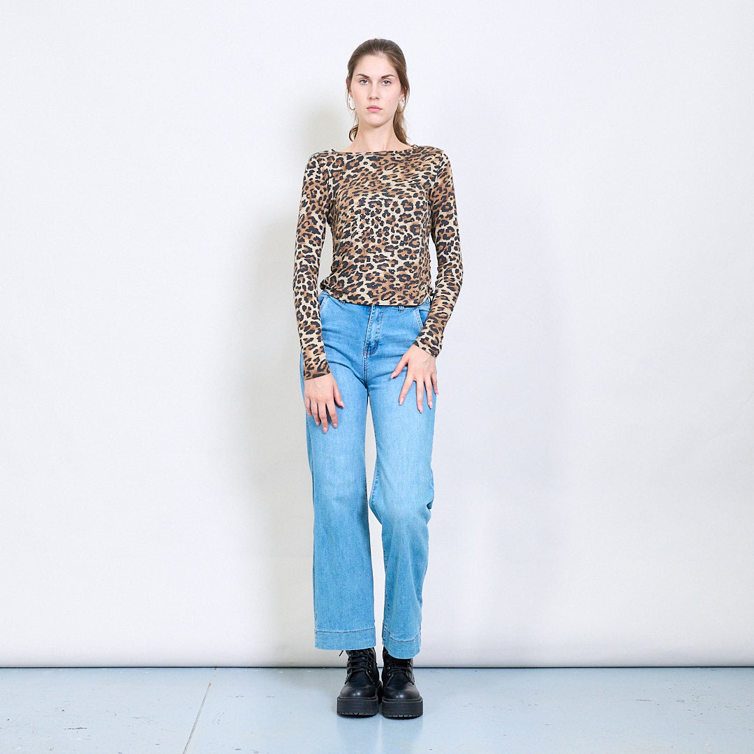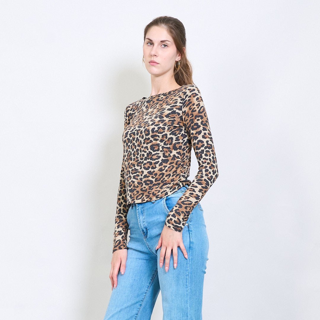 All-Over Leopard Print ajustou a Jersey Top Wholesale