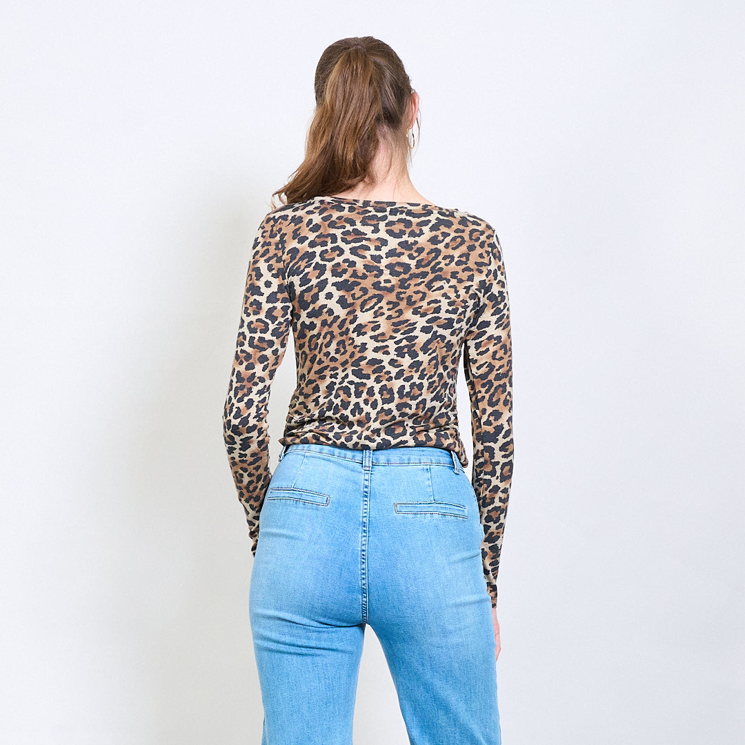 - Top de camisa de alongamento macio com estampa de leopardo em negrito
