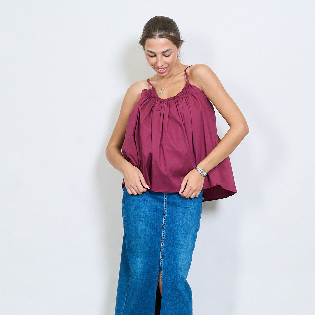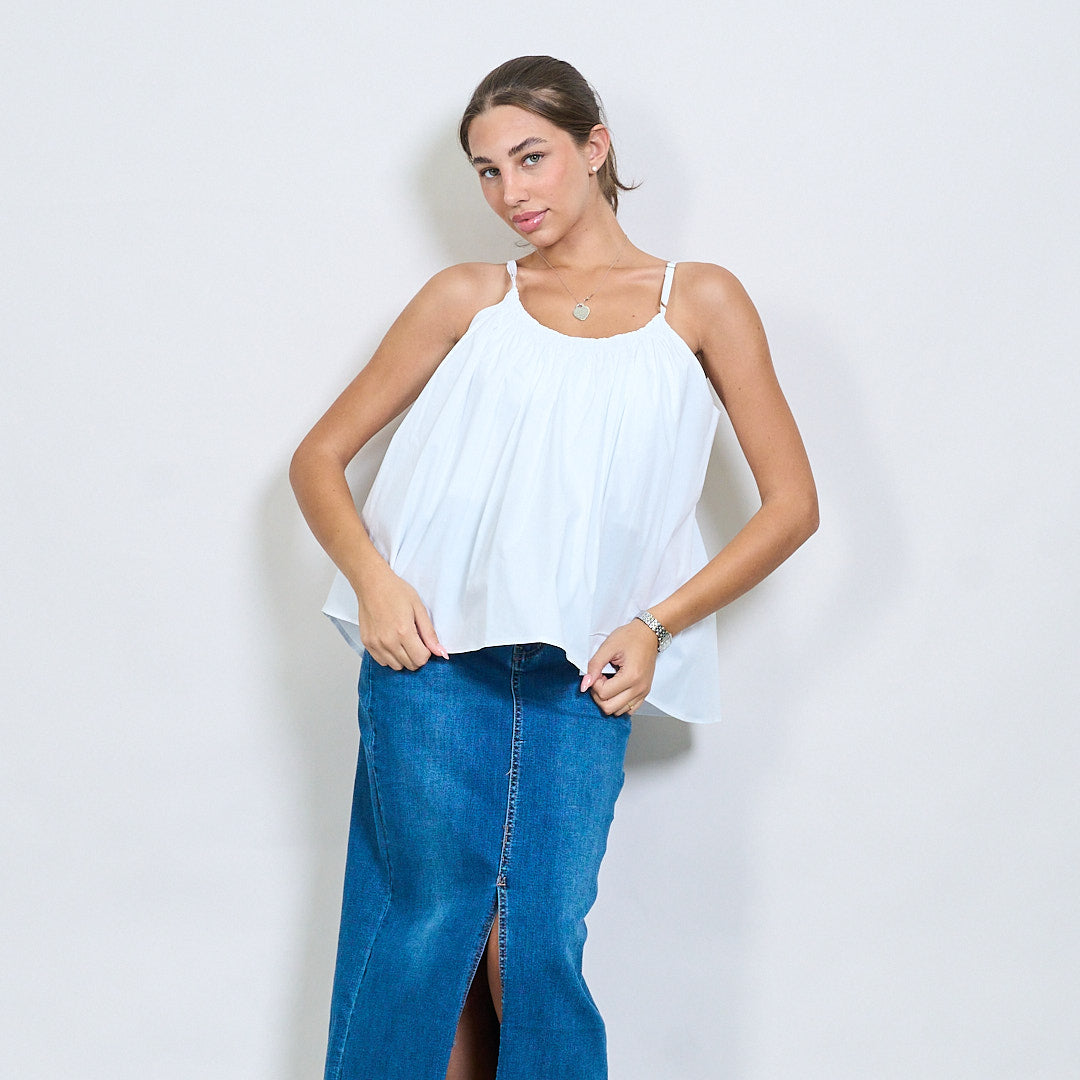 - Cami de algodão leve com um ajuste relaxado e arejado