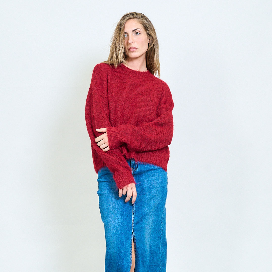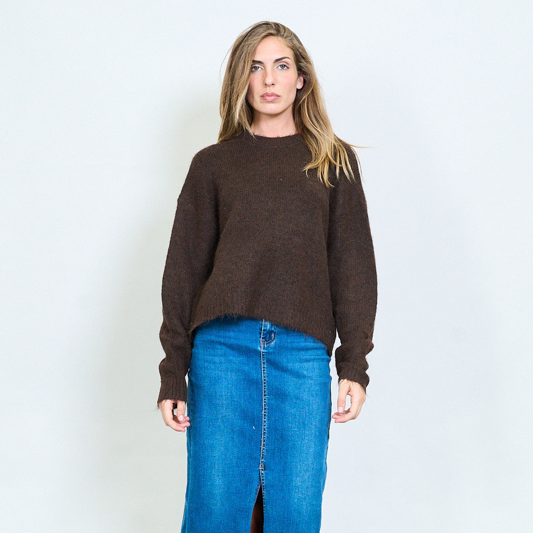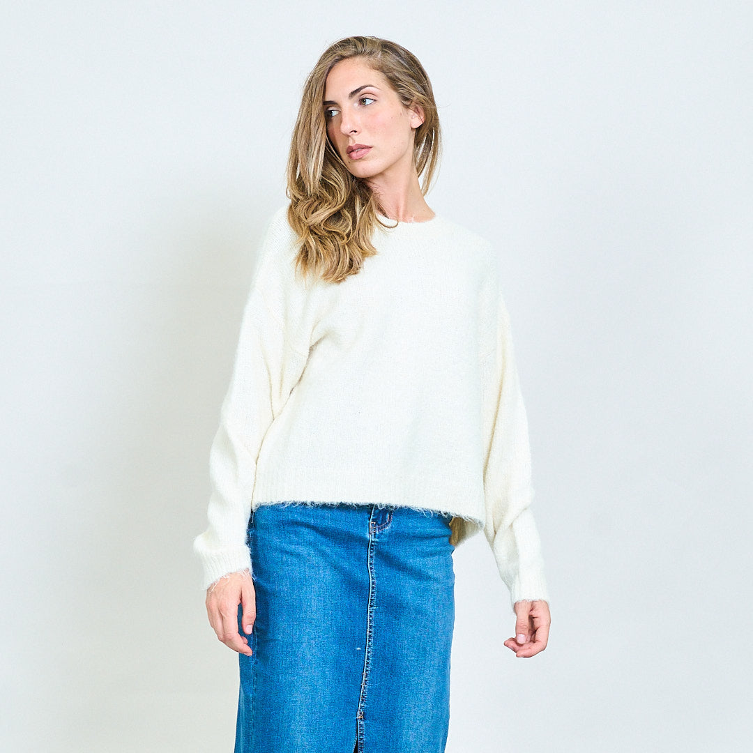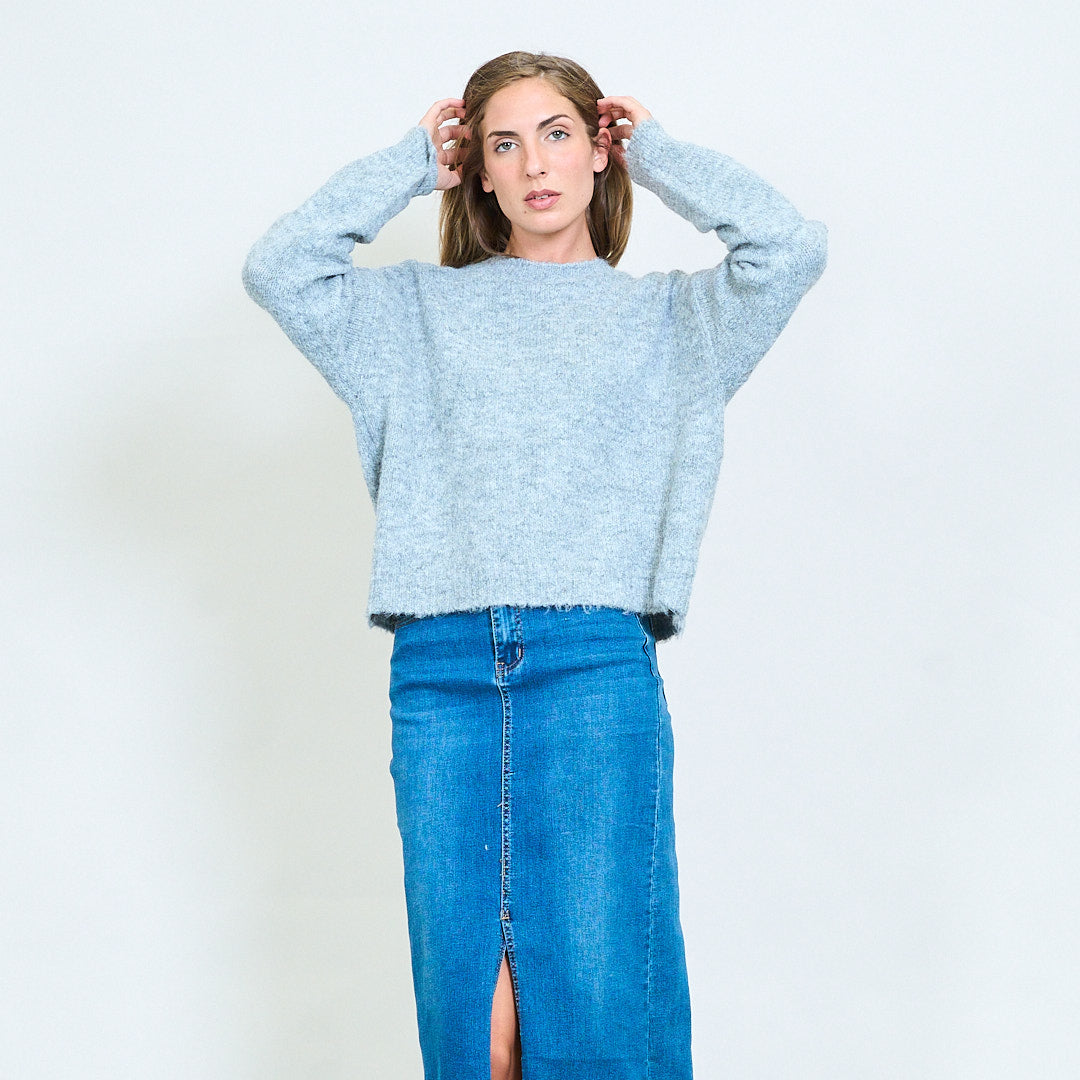 - Mangas compridas com ajuste descontraído e ombros ligeiramente caídos
