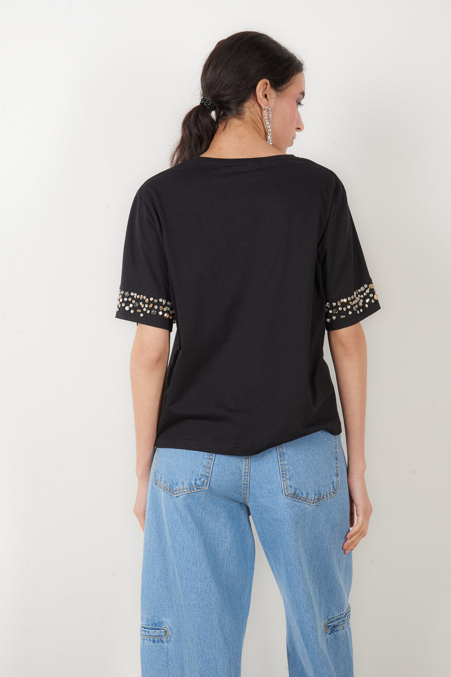 - Combinação perfeita de base casual com detalhes glamorosos nas mangas
