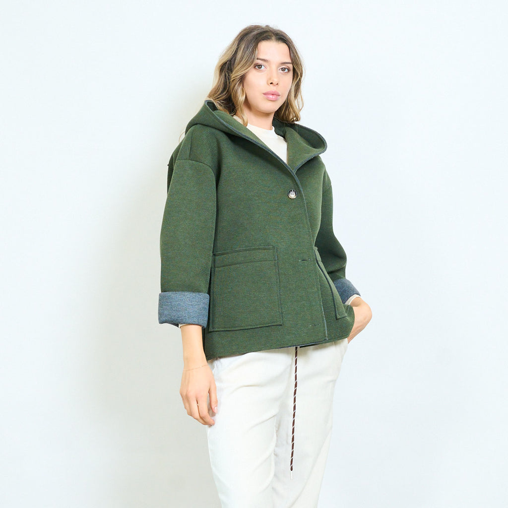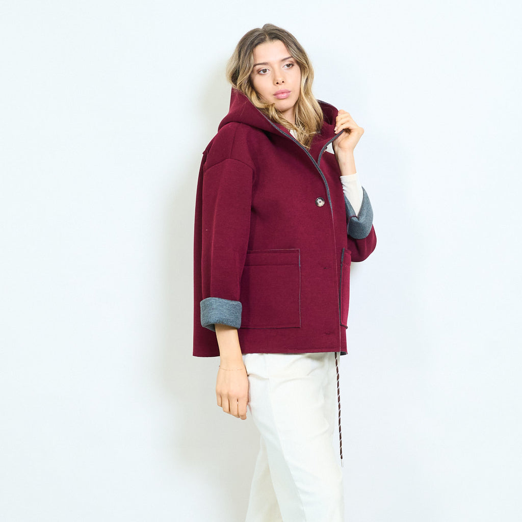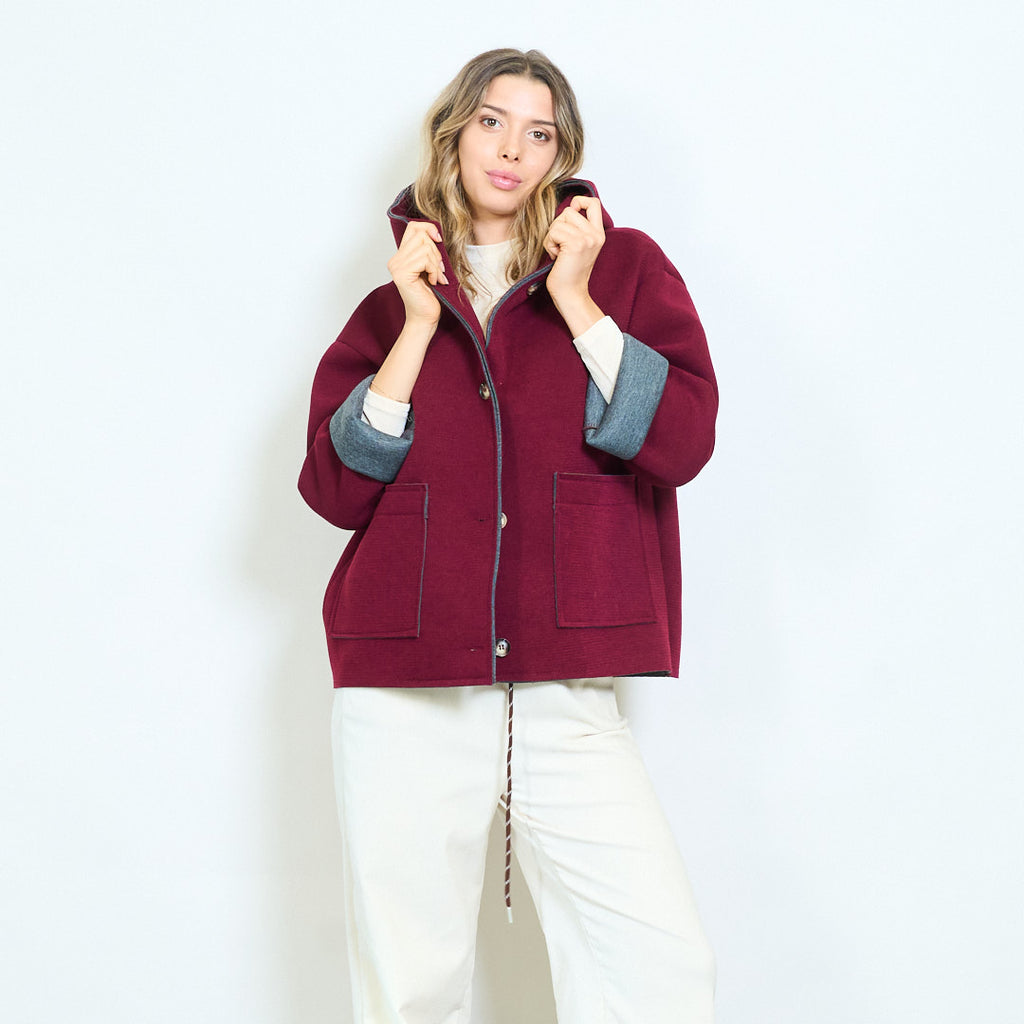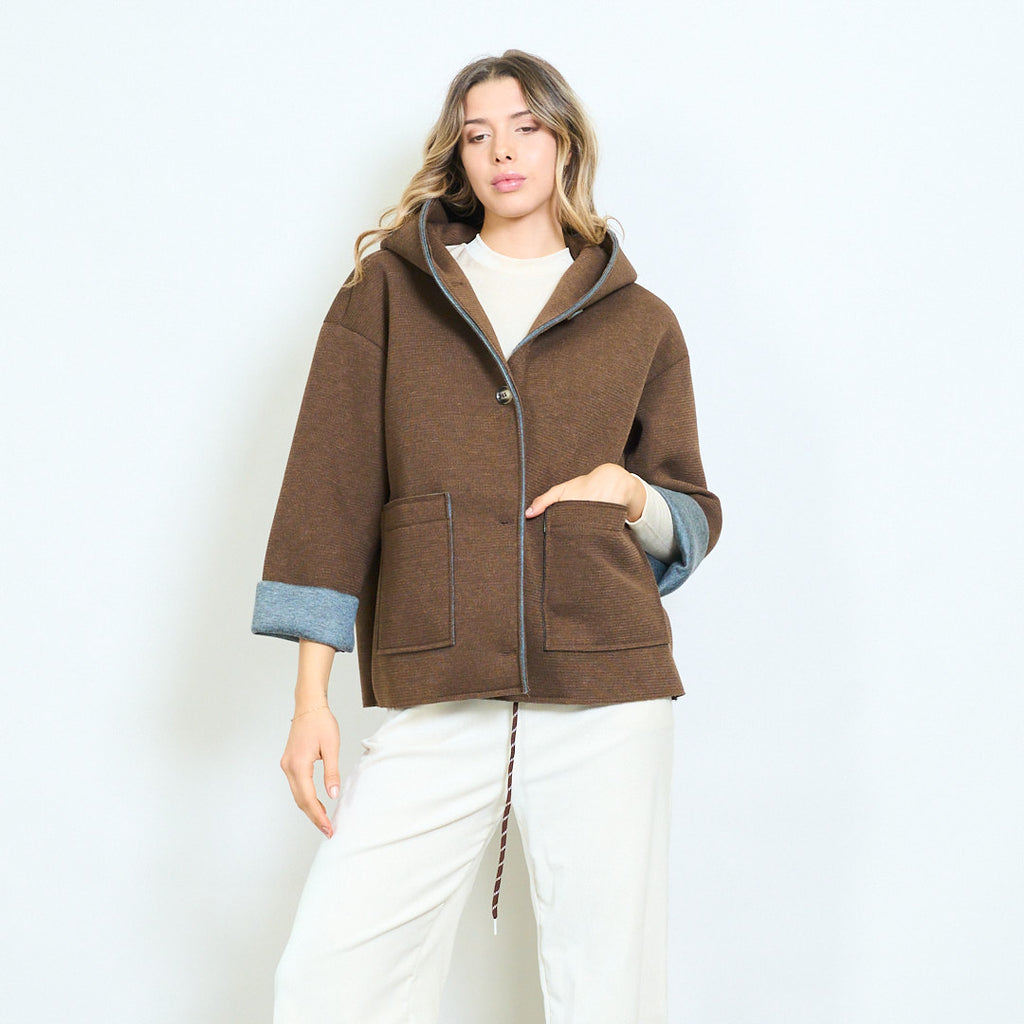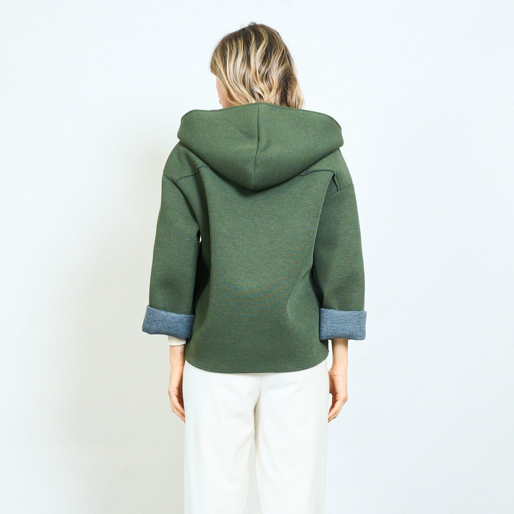 - Acabamento cinza contrastante e punhos dobrados para detalhes elegantes
