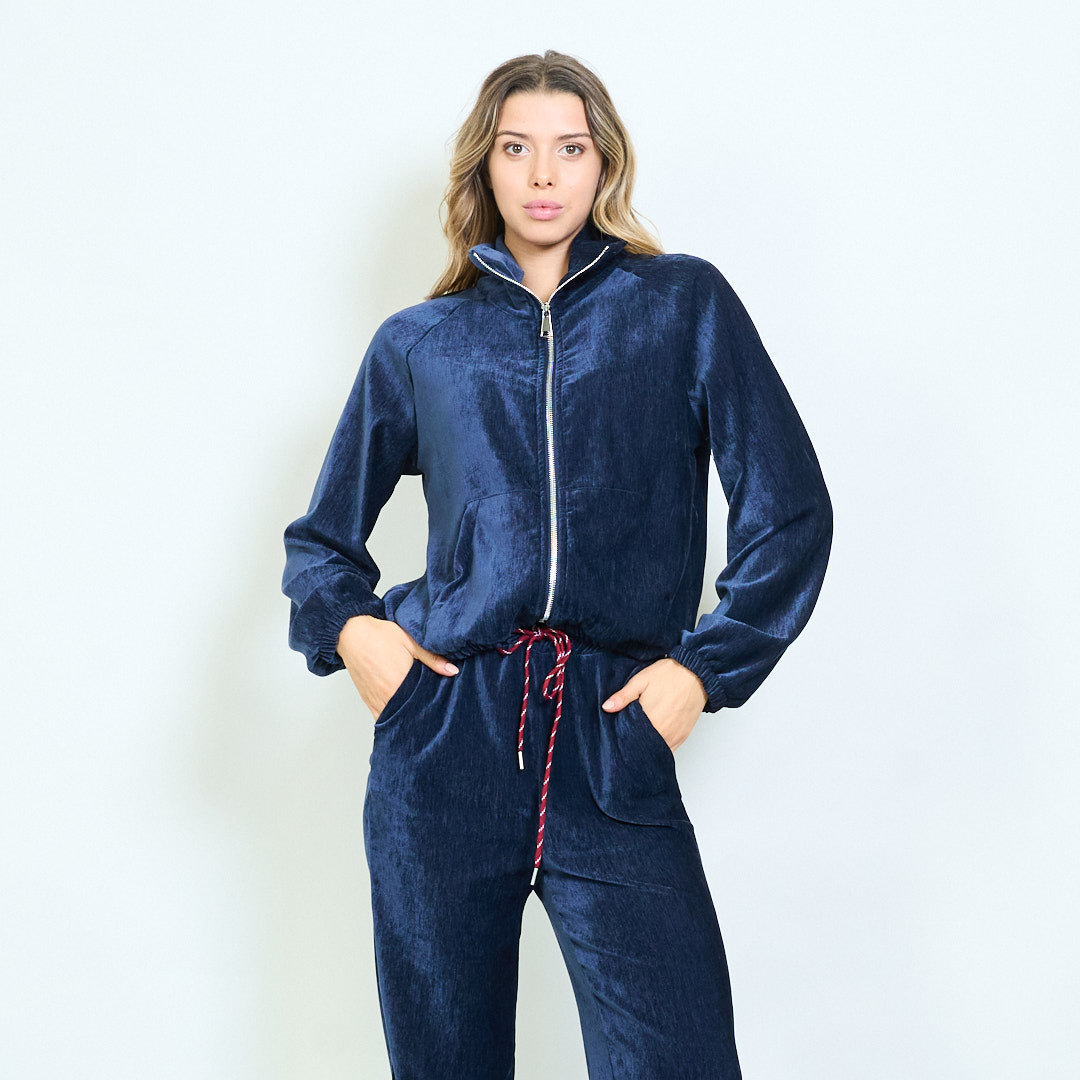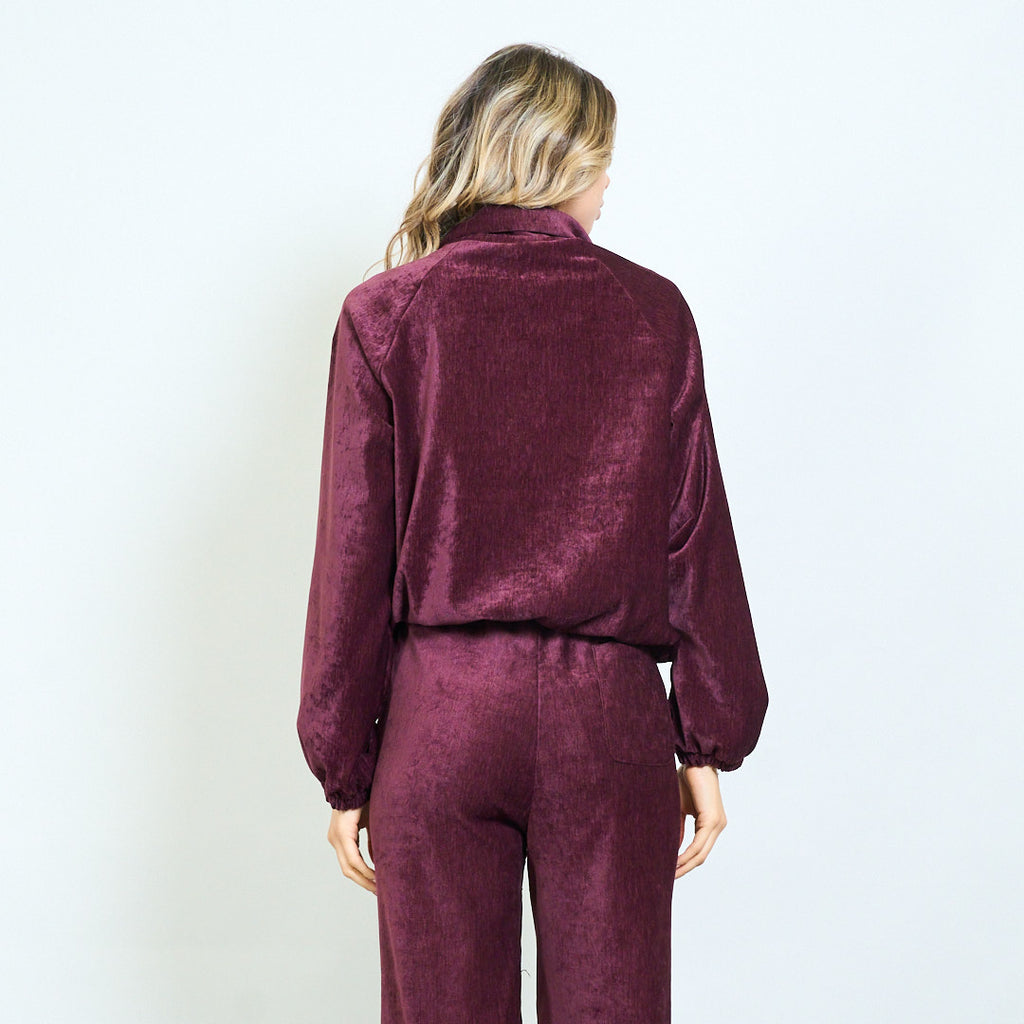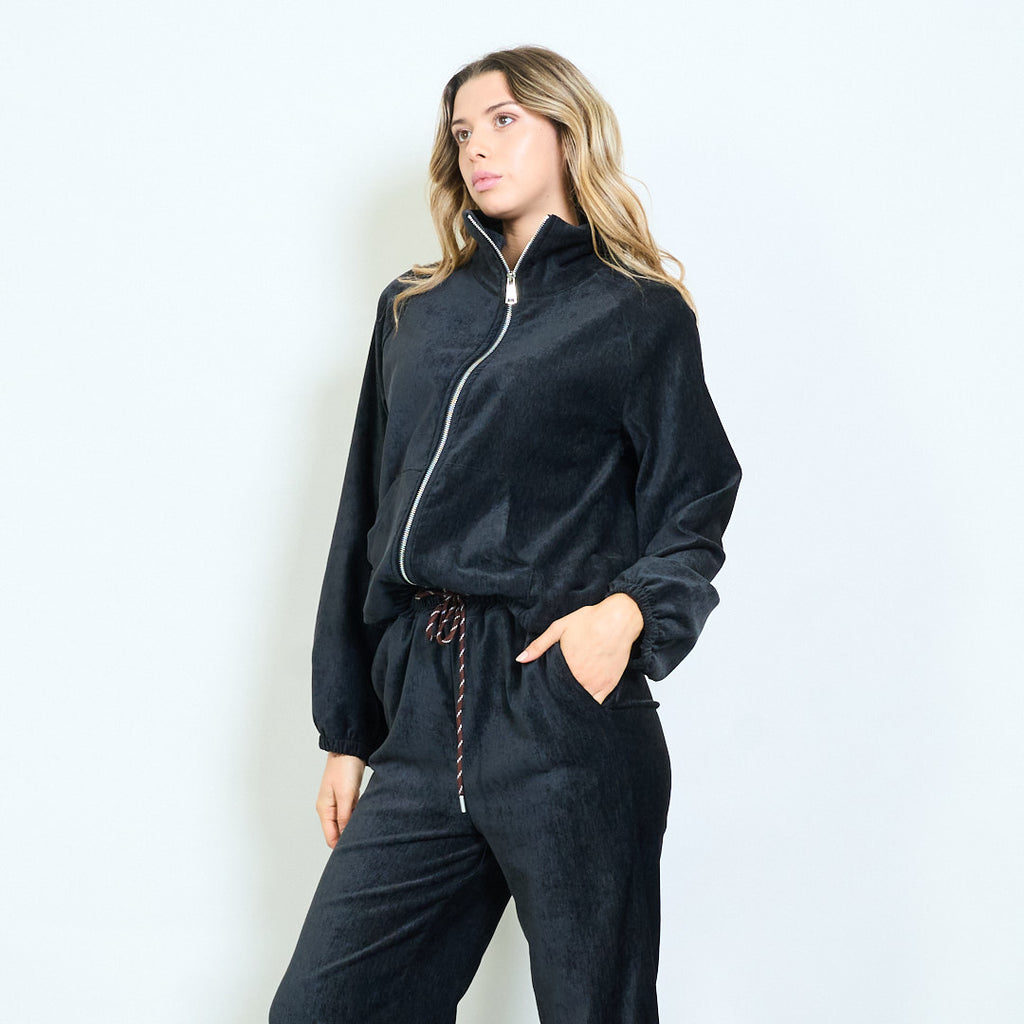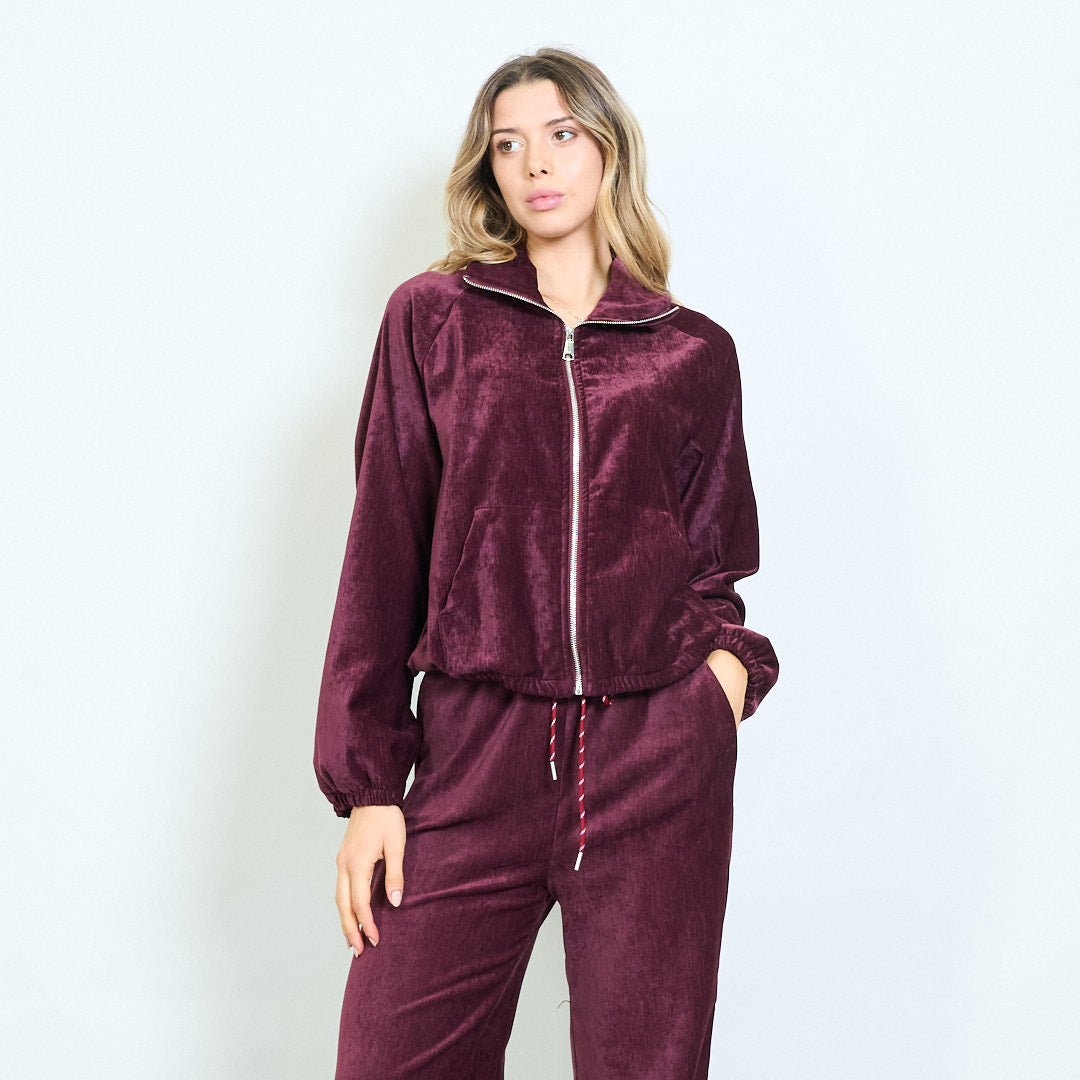 Jaqueta casual de veludo com zíper e gola larga no atacado