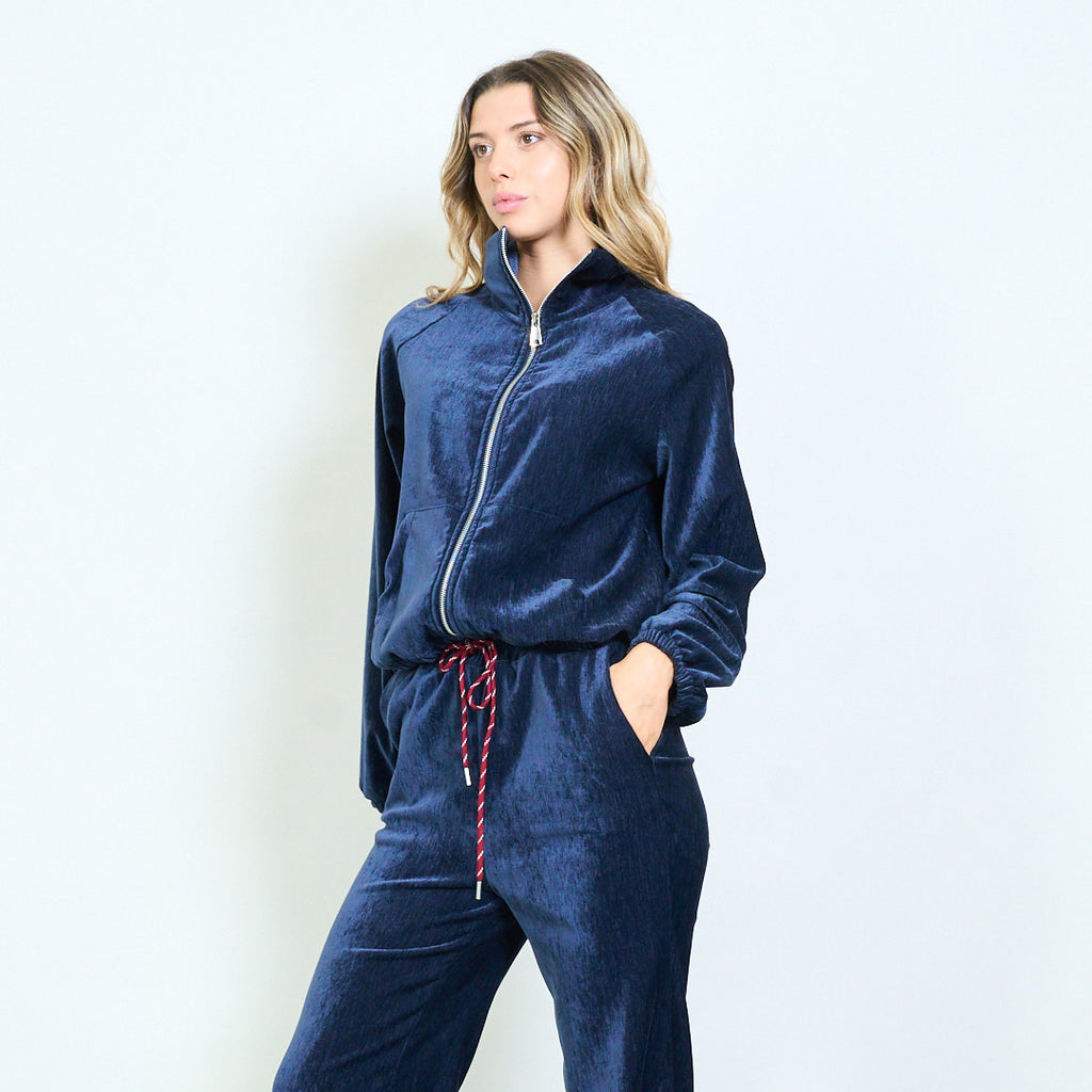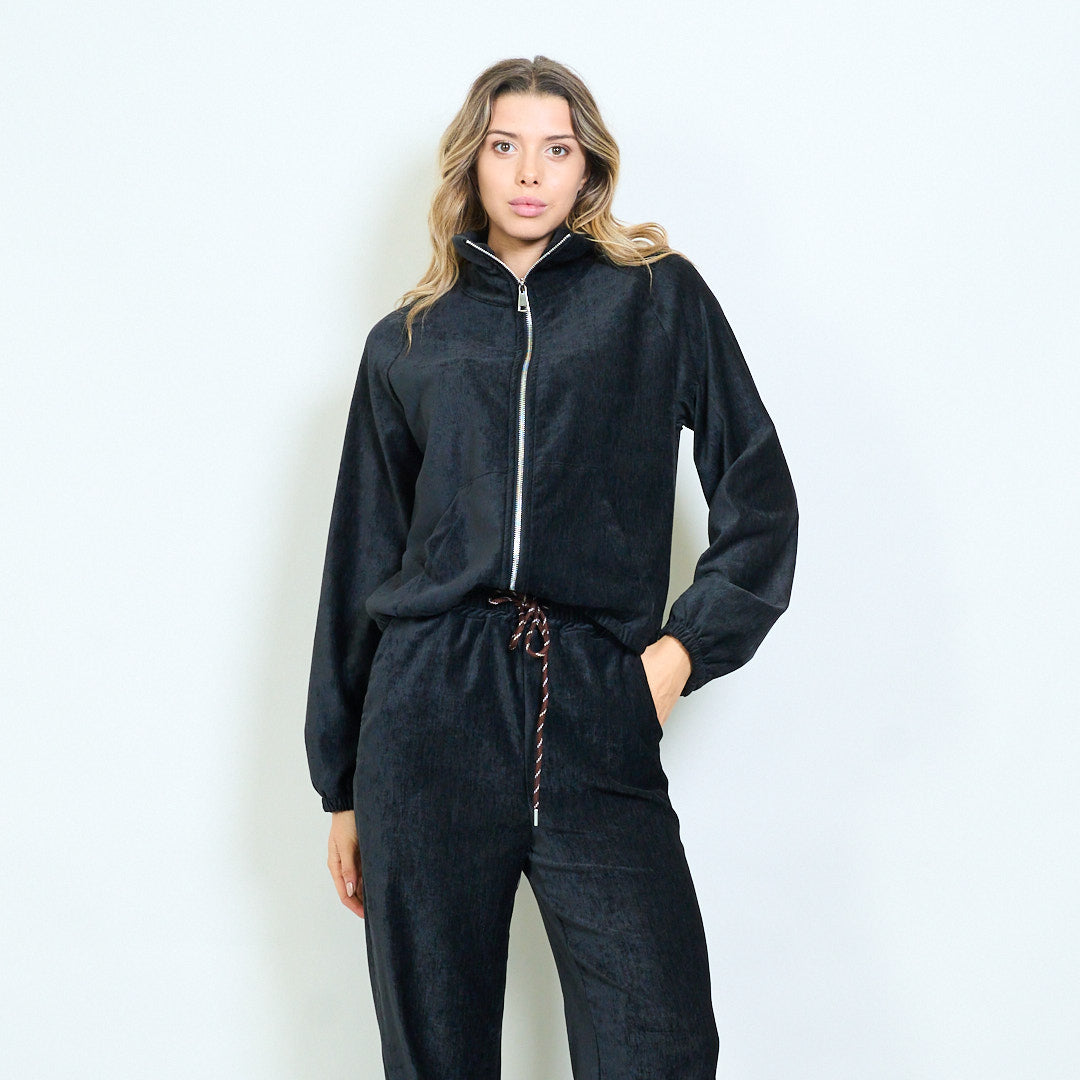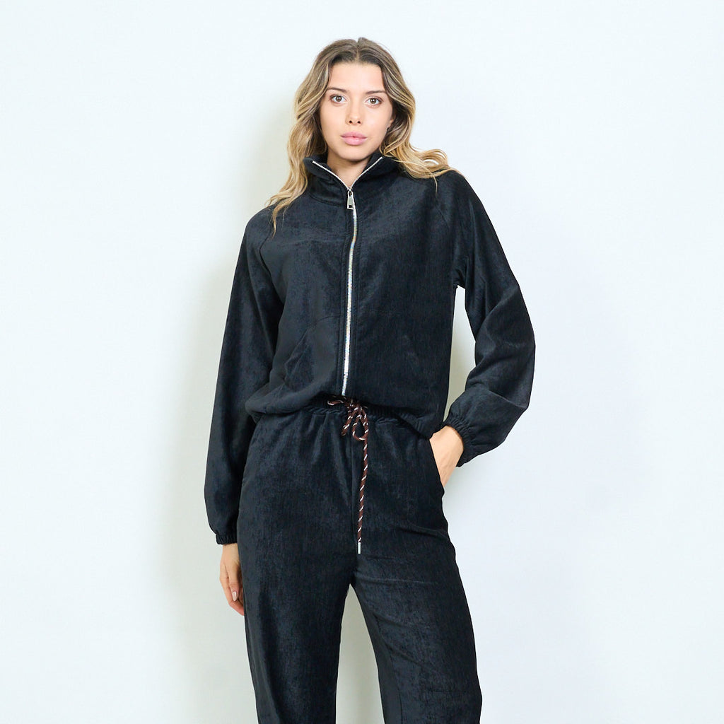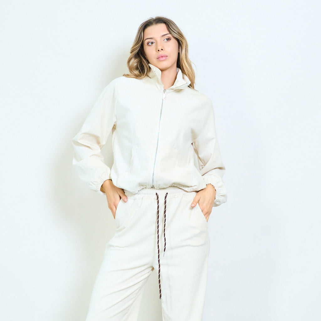 Jaqueta casual de veludo com zíper e gola larga no atacado