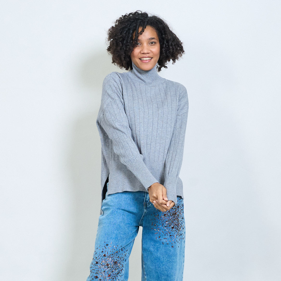 Sweater de malhas de malhas com nervuras com nervuras com nervuras por atacado