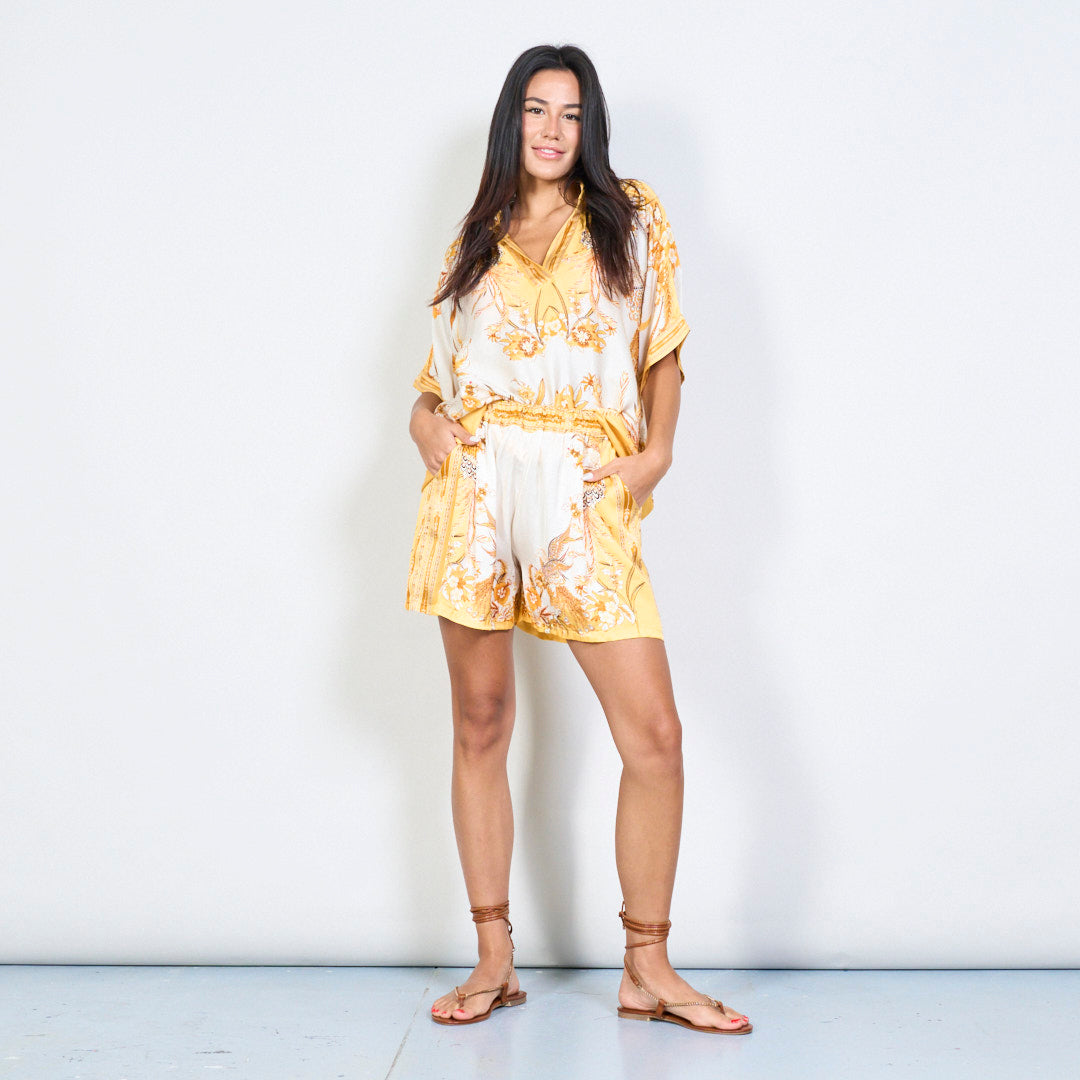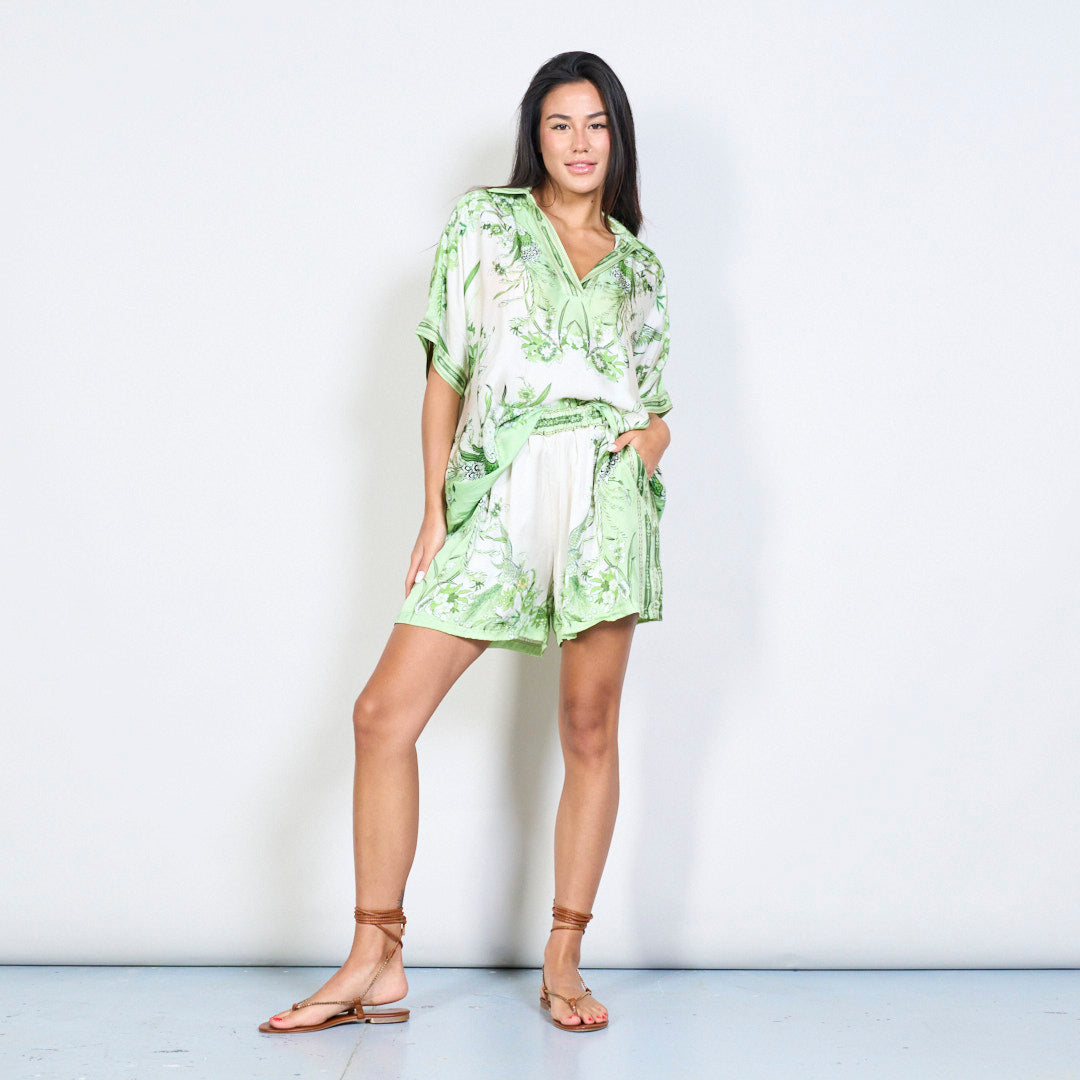 Cintura elástica shorts florais com silhueta relaxada por atacado