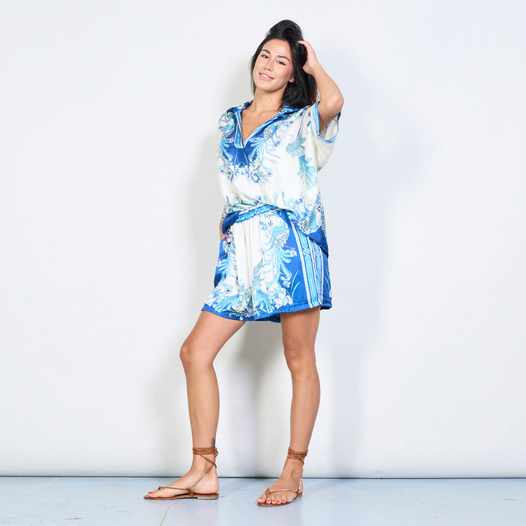 - Projeto de impressão floral e de pássaros complexos