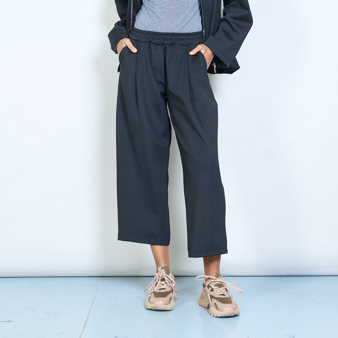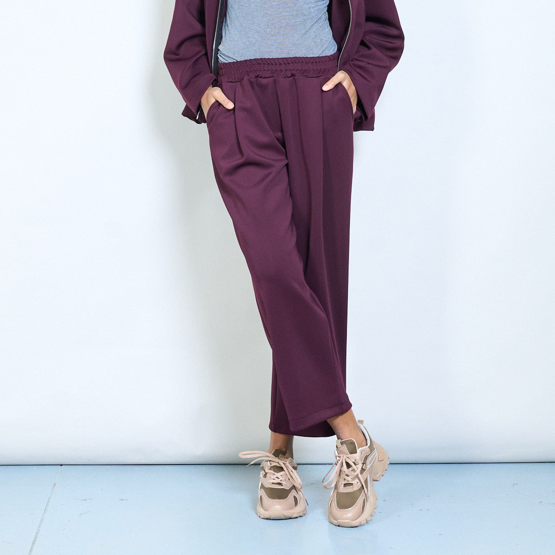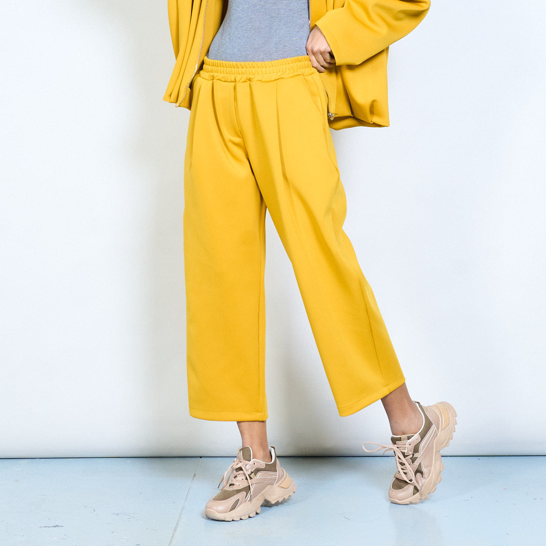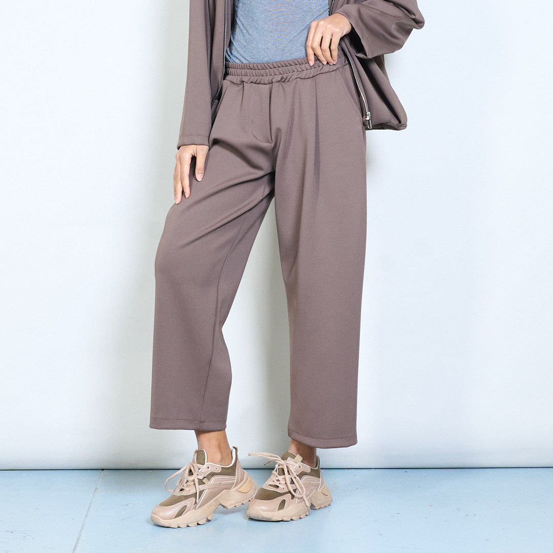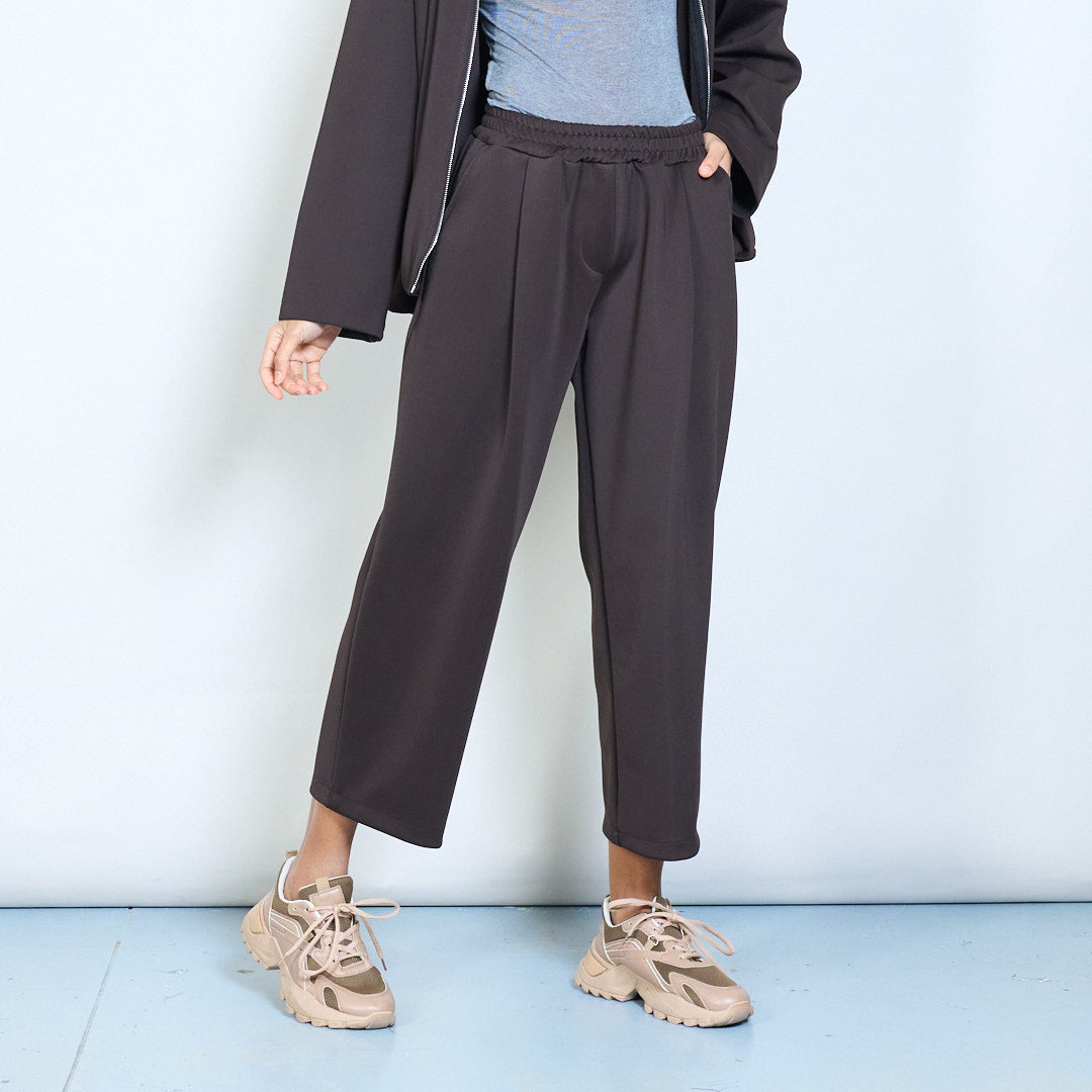 Calças de corte reto com cintura elástica e bolsos laterais no atacado