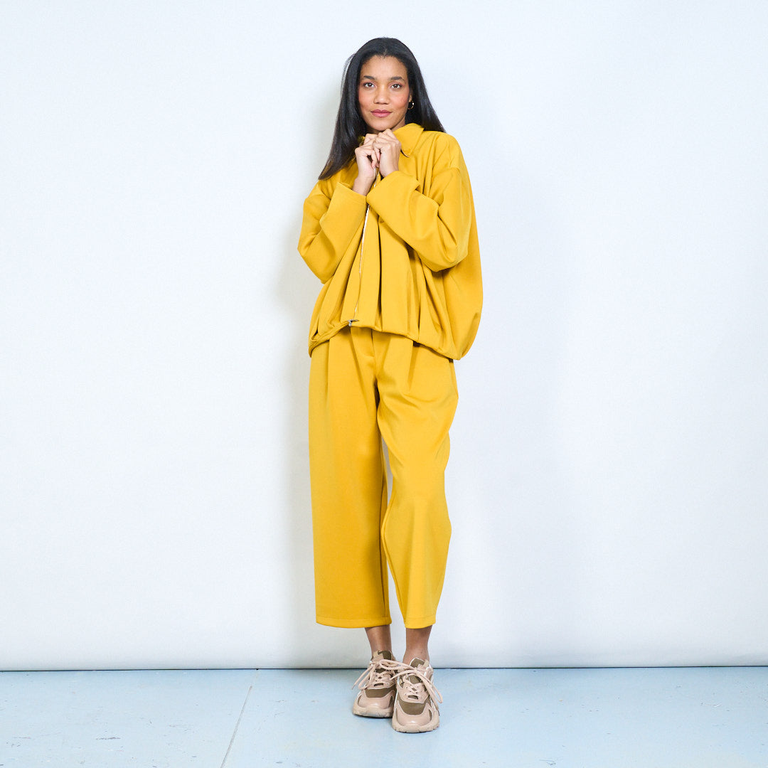 - Bolsos laterais acrescentando detalhes funcionais e práticos