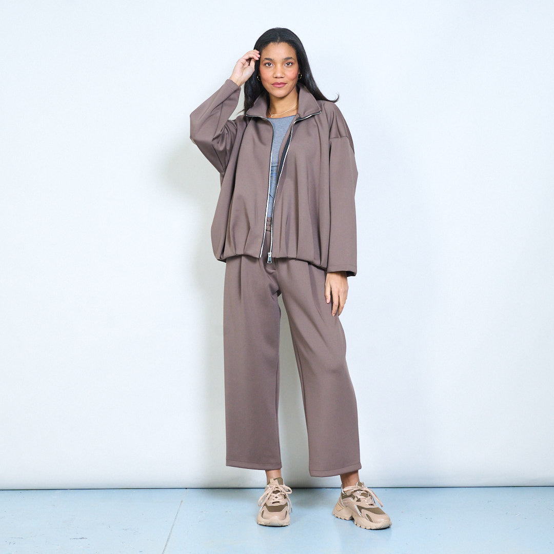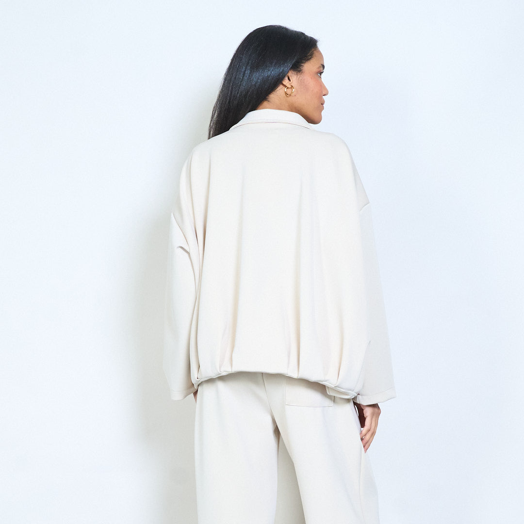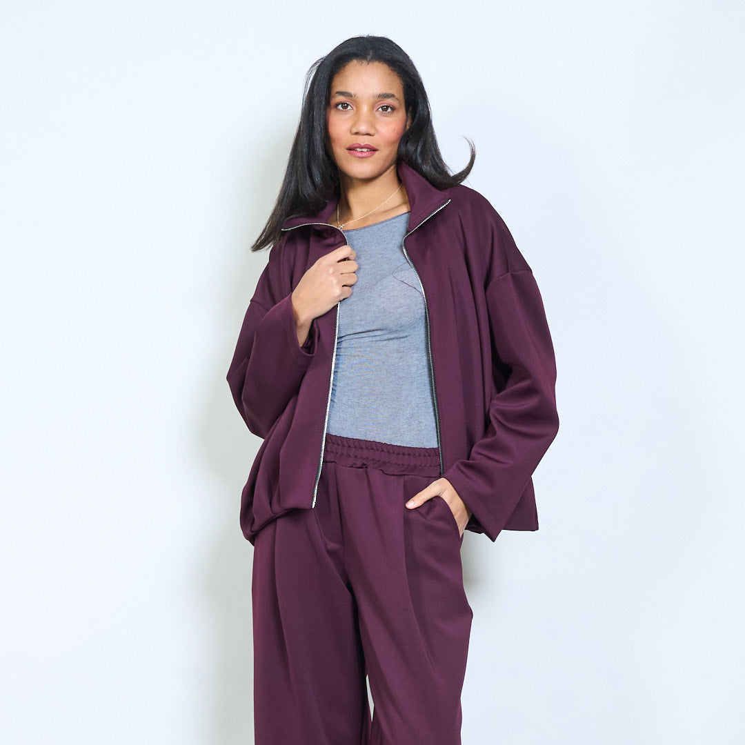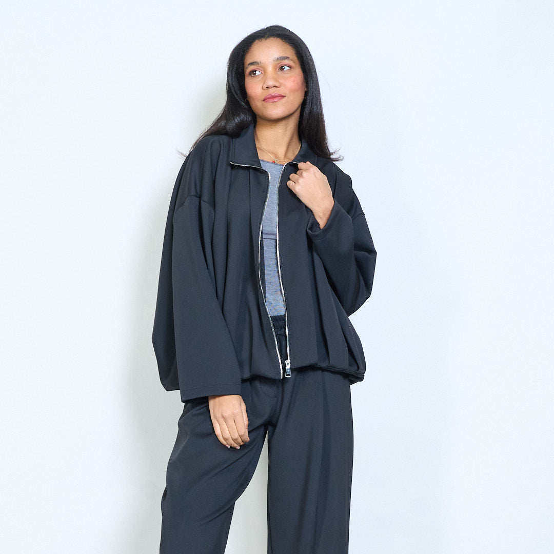 Jaqueta com zíper frontal e ajuste relaxado, gola macia e bainha elástica no atacado