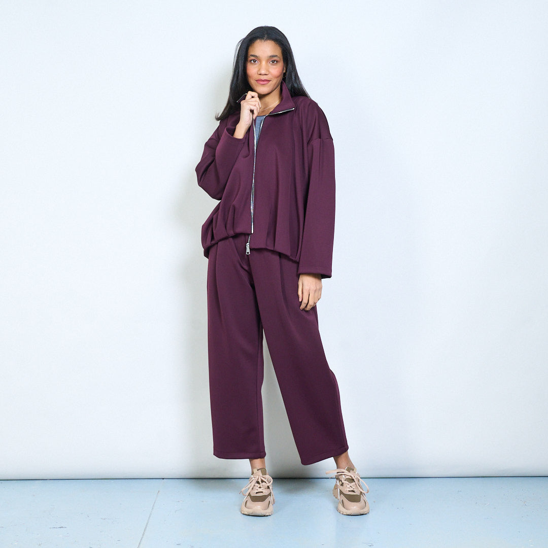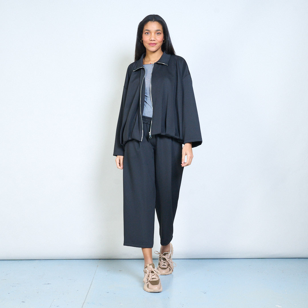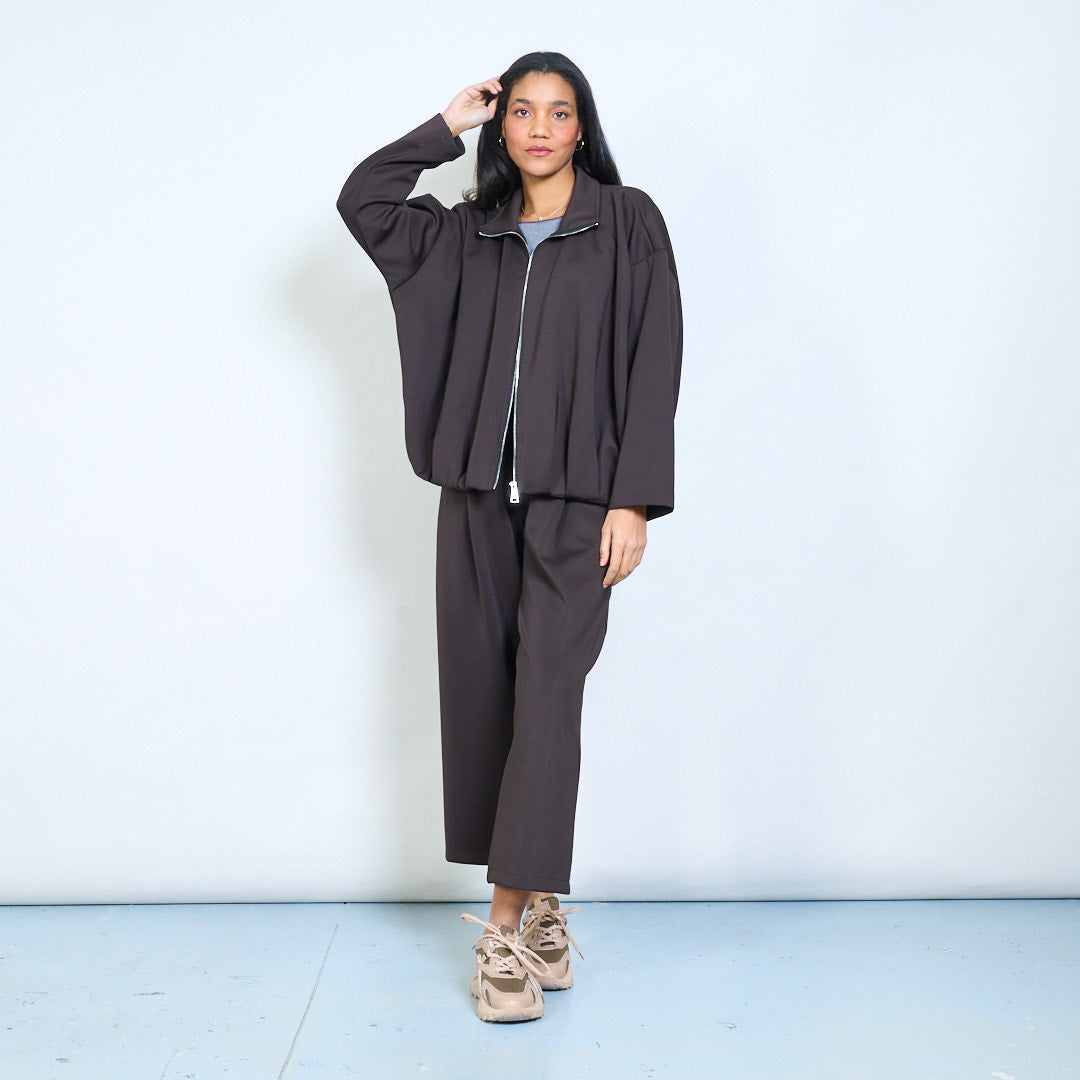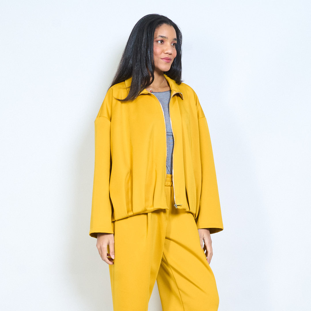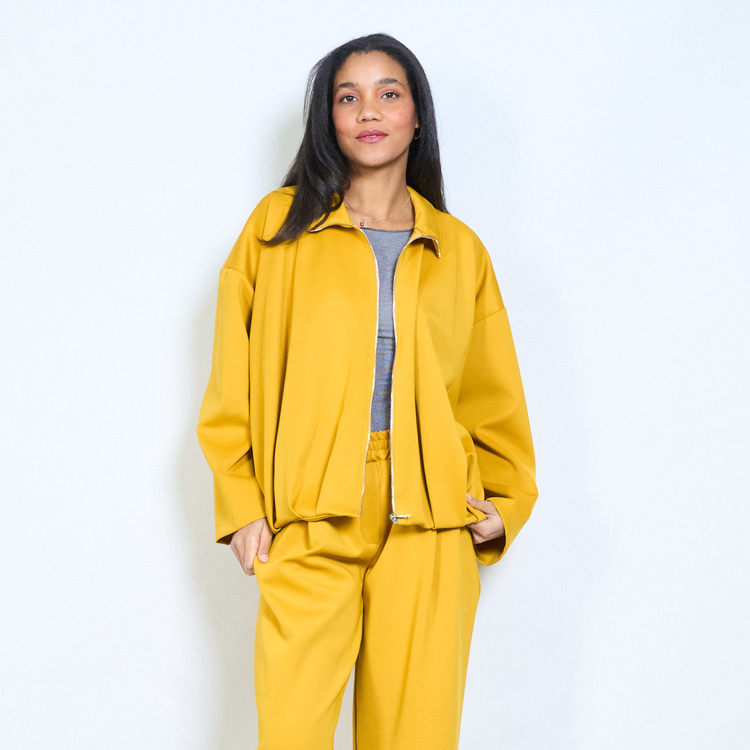 Jaqueta com zíper frontal e ajuste relaxado, gola macia e bainha elástica no atacado