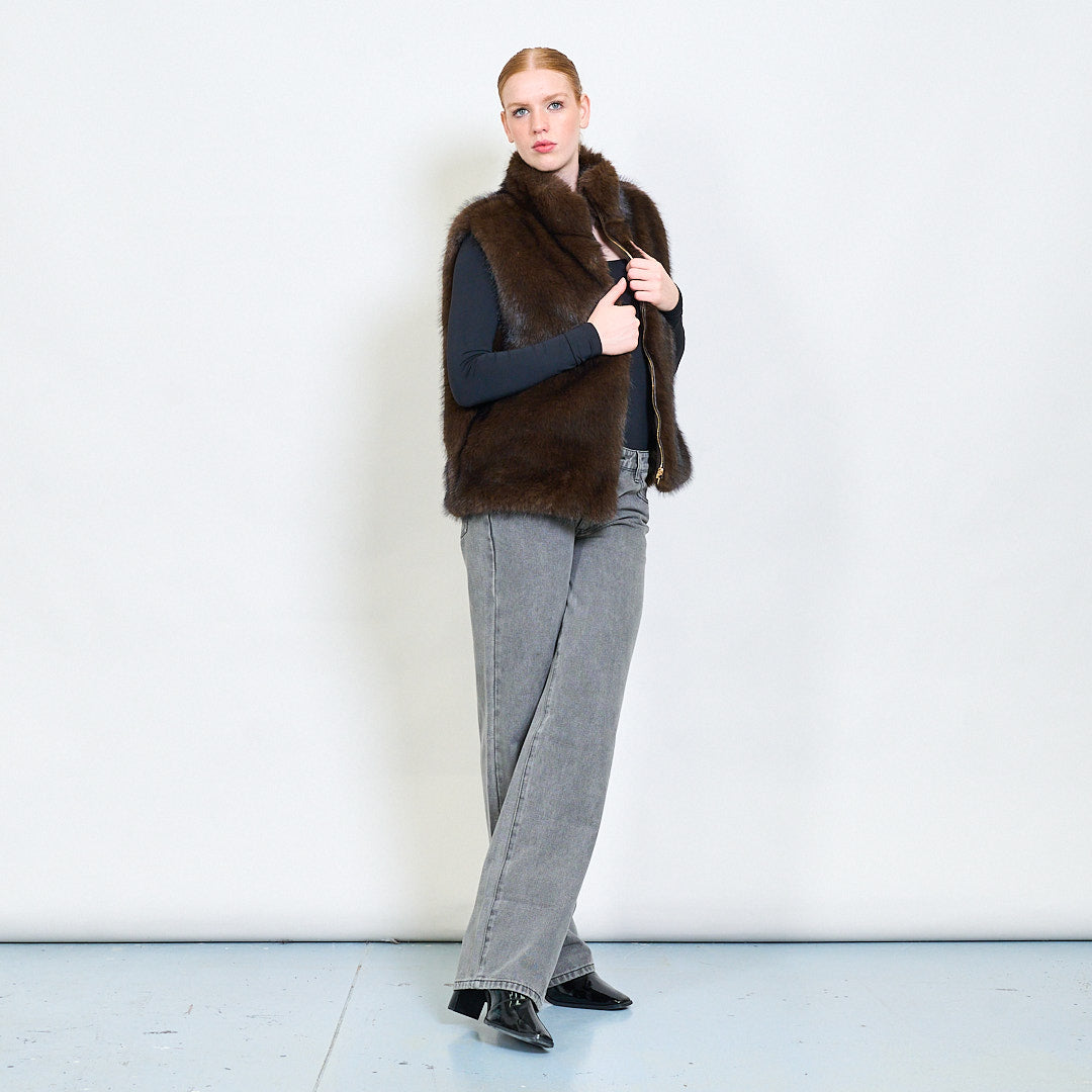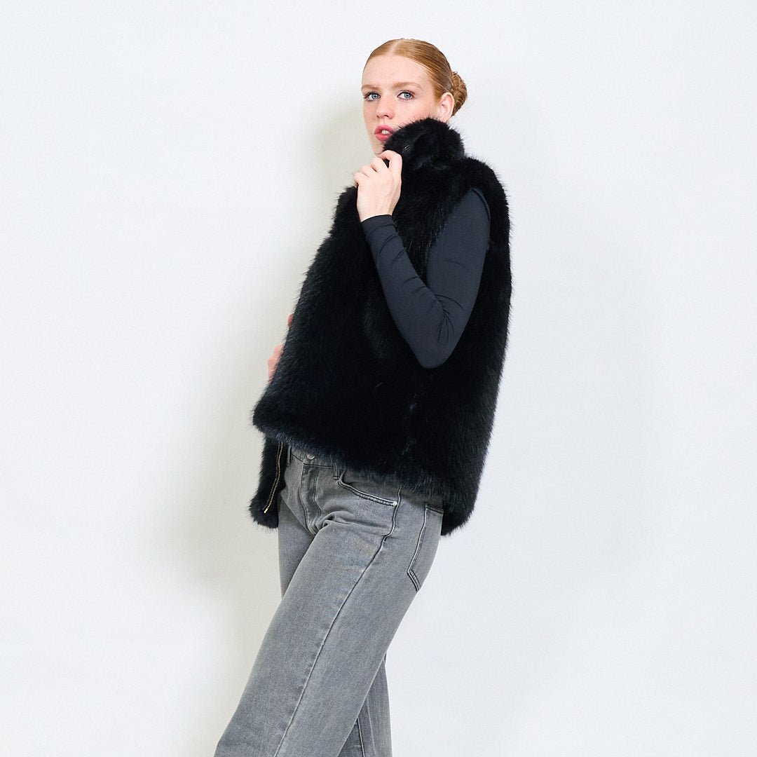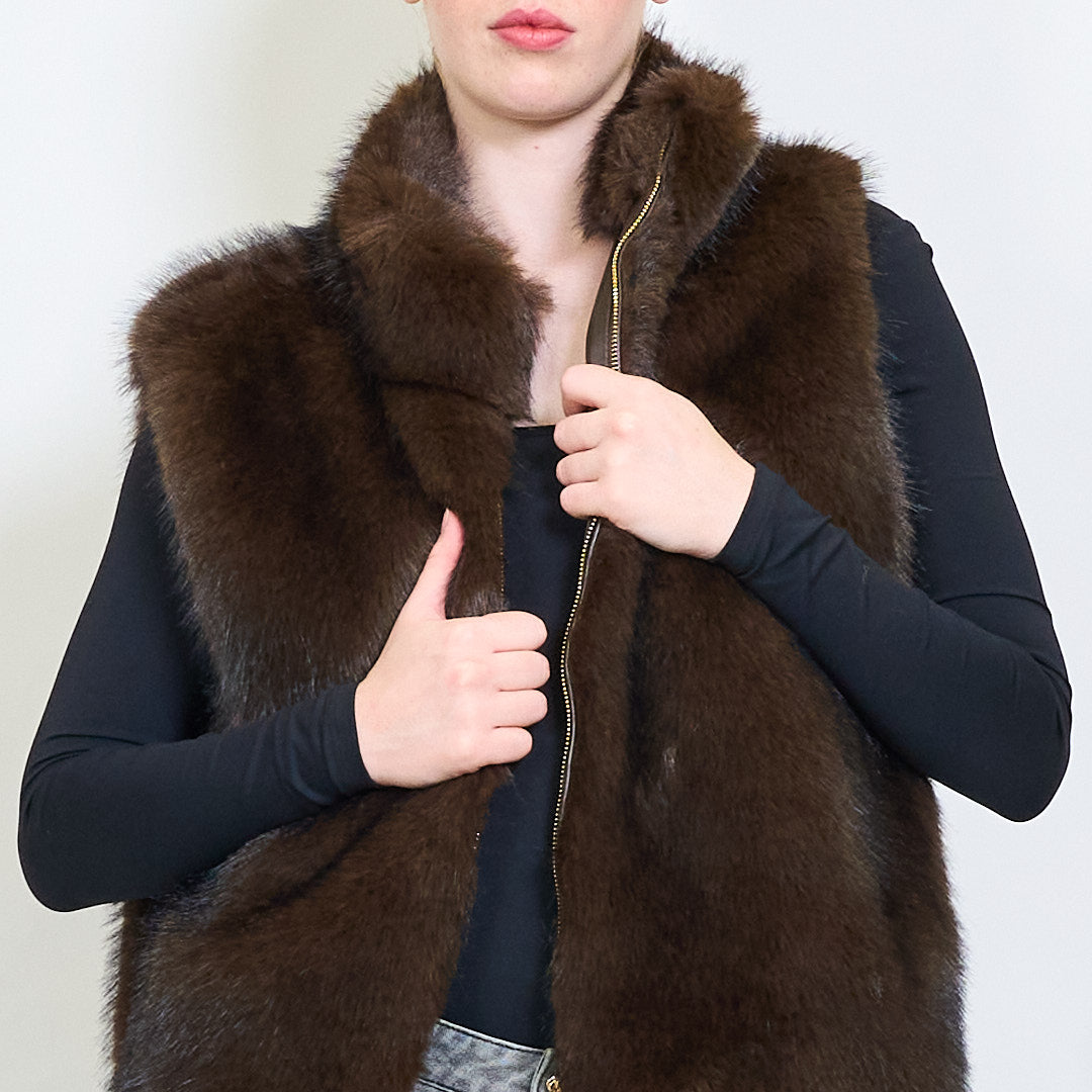 Soft-Touch Zip-Front Faux Fur colete por atacado