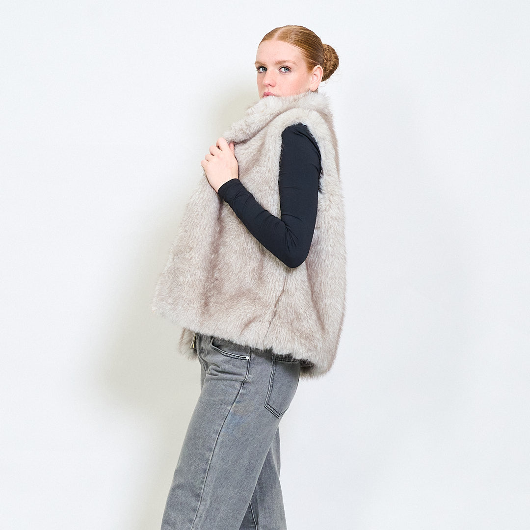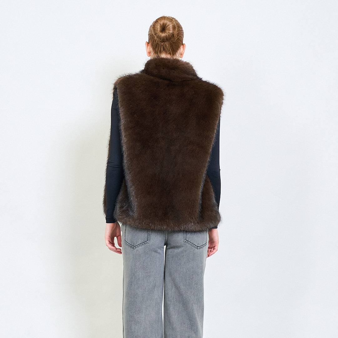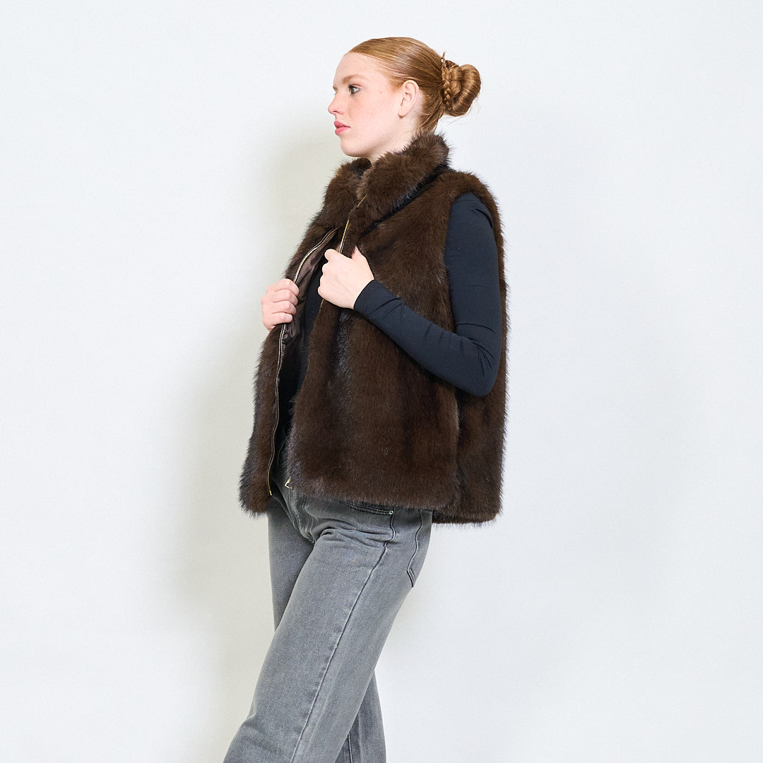 Soft-Touch Zip-Front Faux Fur colete por atacado