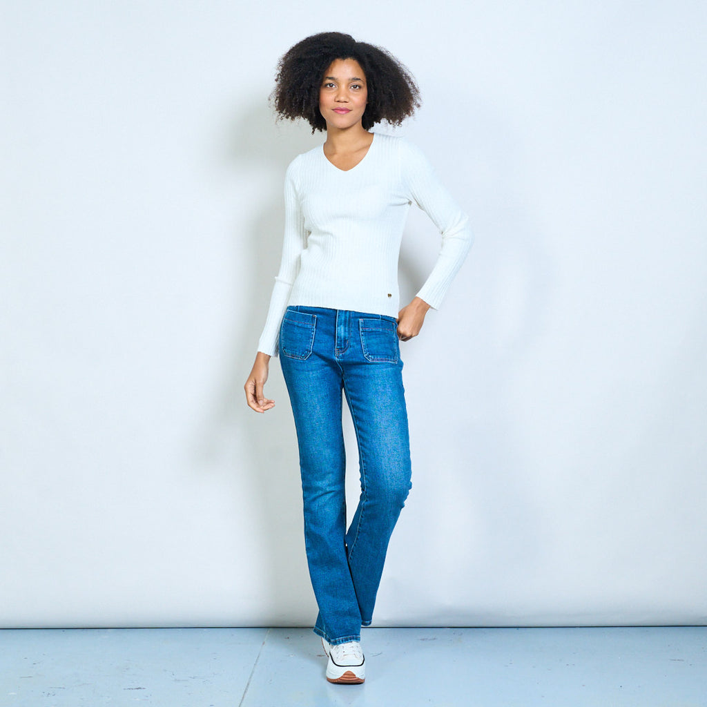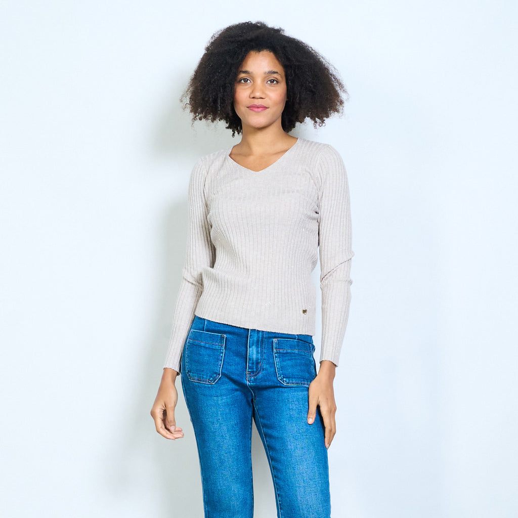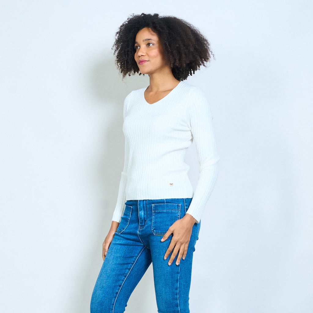 - Apresenta um decote em V atemporal para um visual elegante e versátil