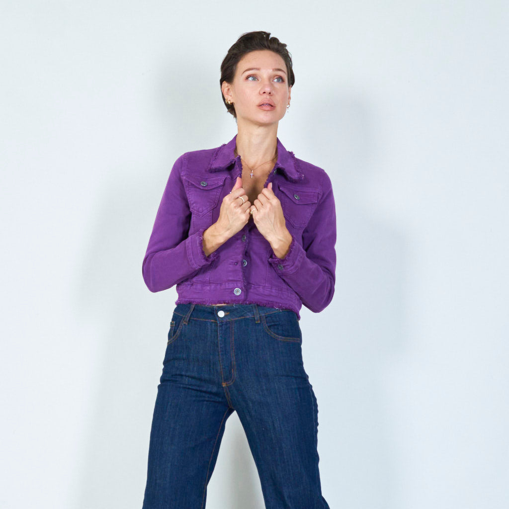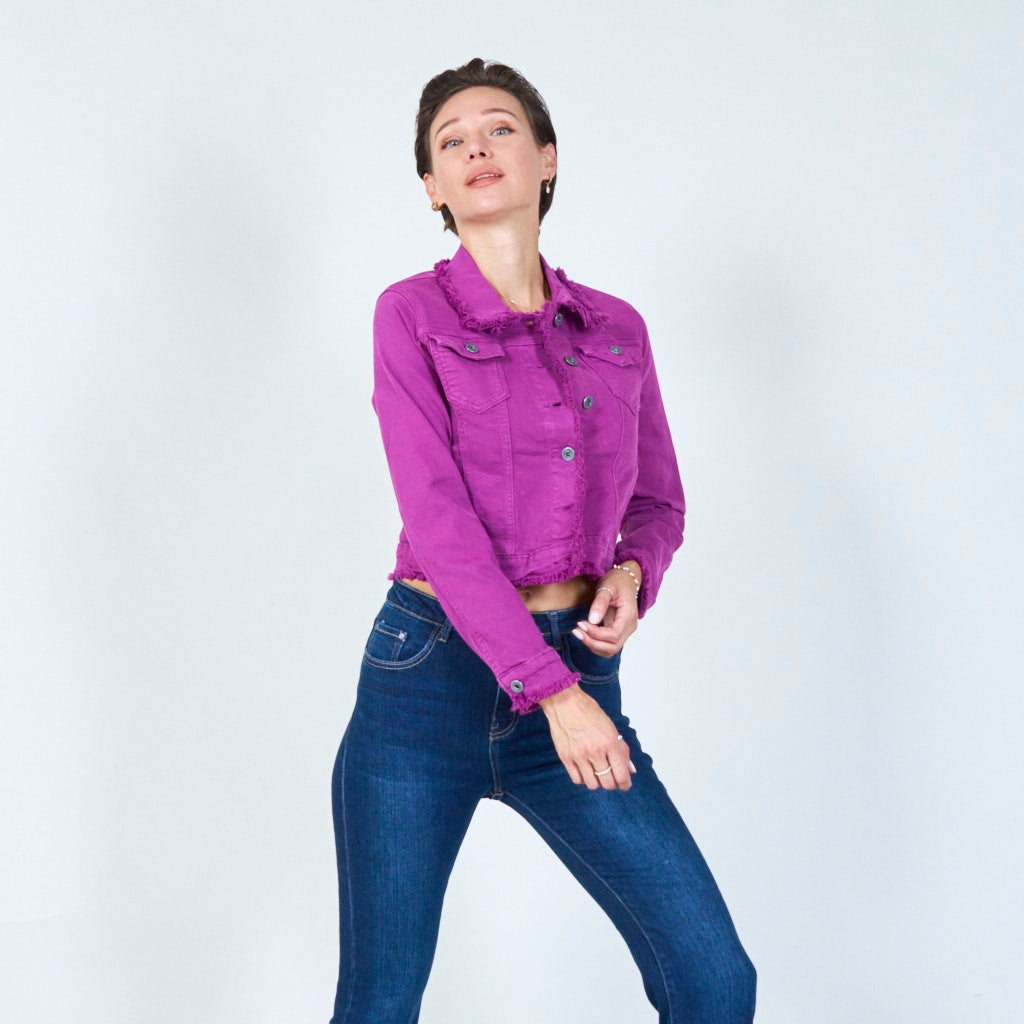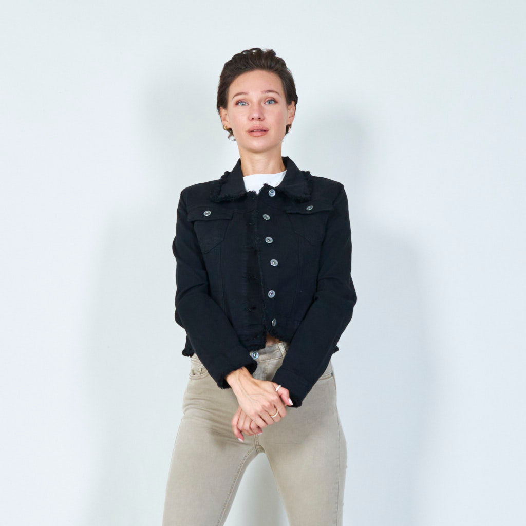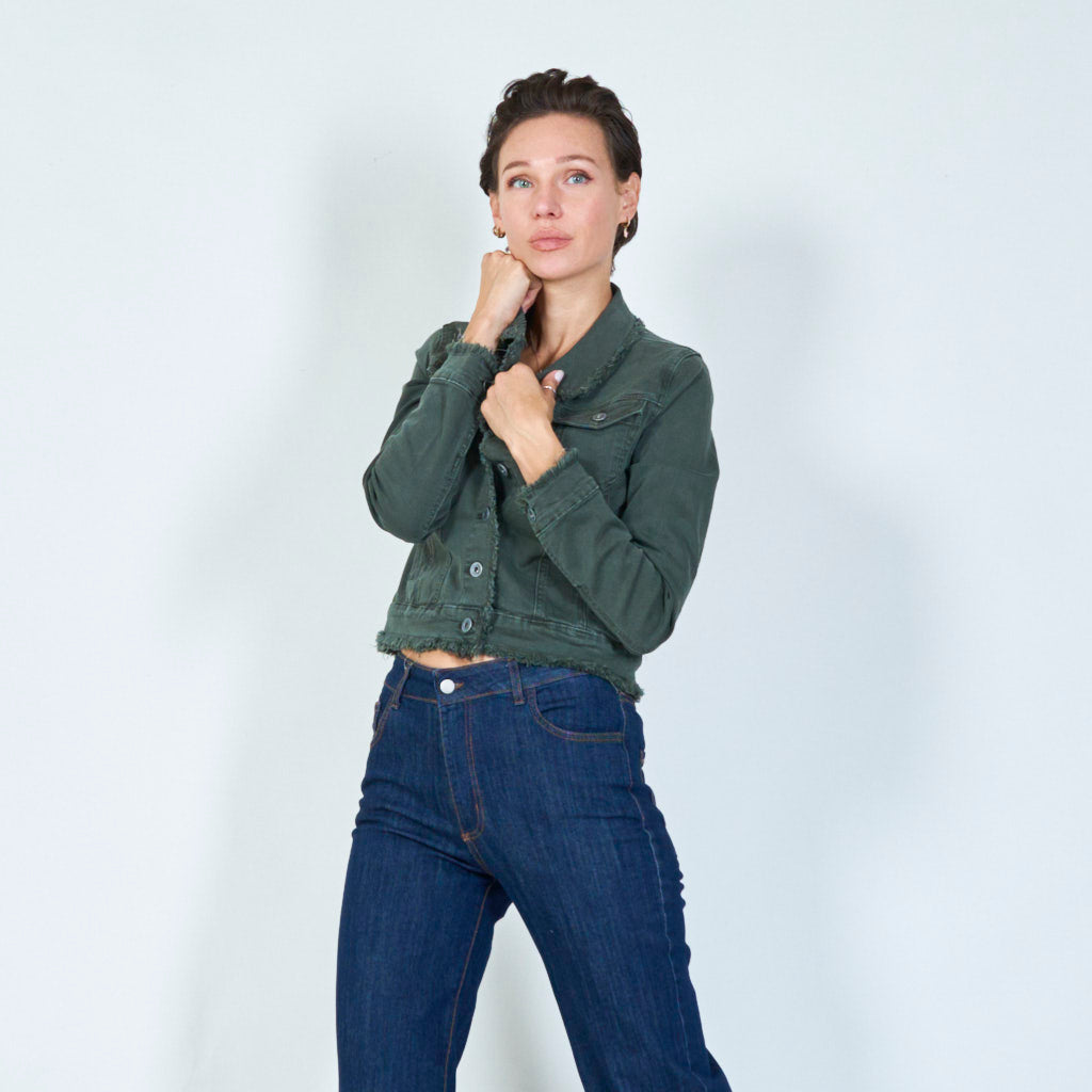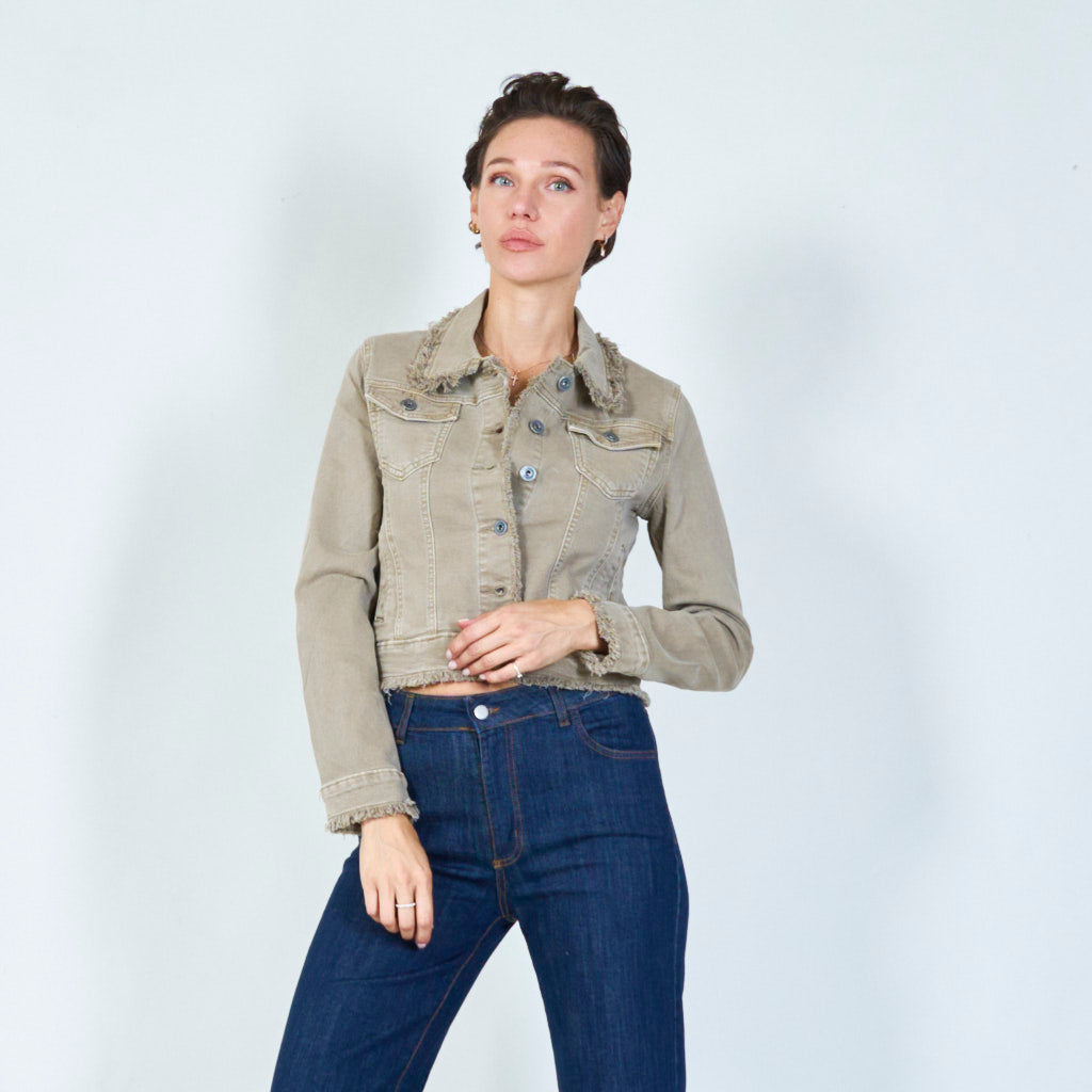 Jaqueta cortada na moda com detalhamento de margens por atacado