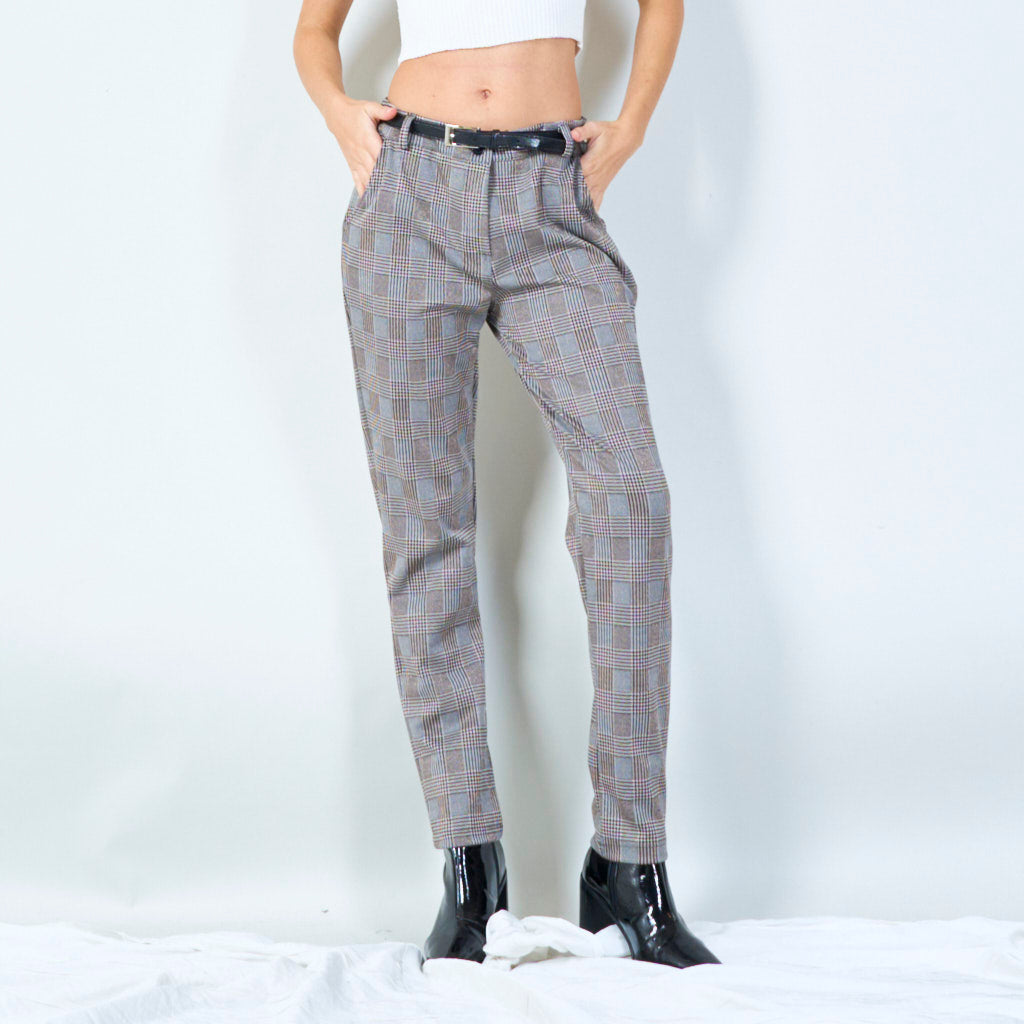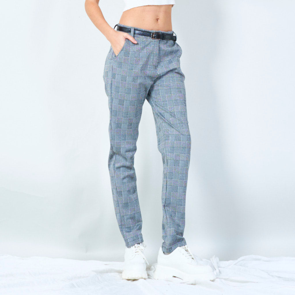 Calças xadrez xadrez com porte de cinto