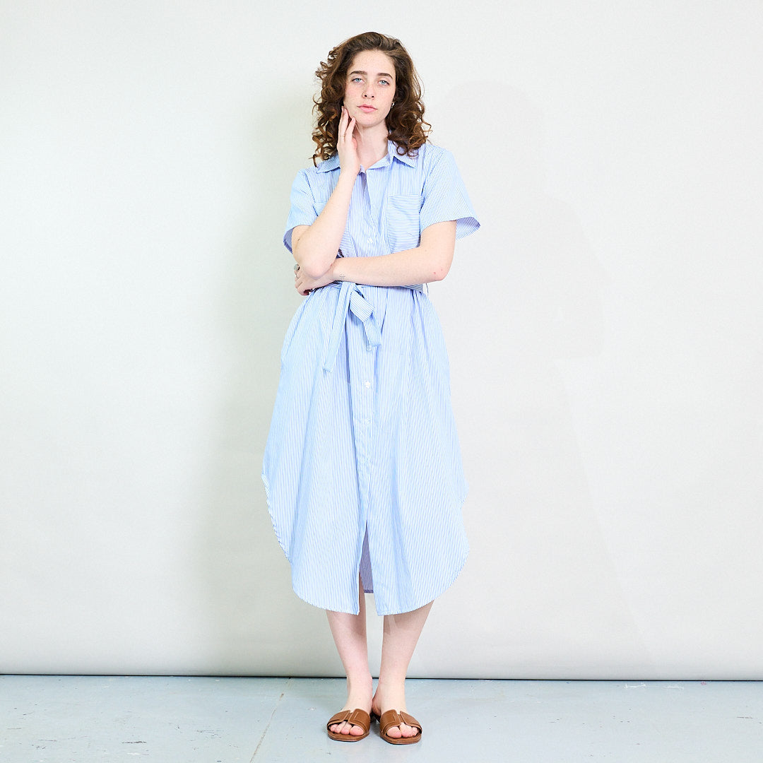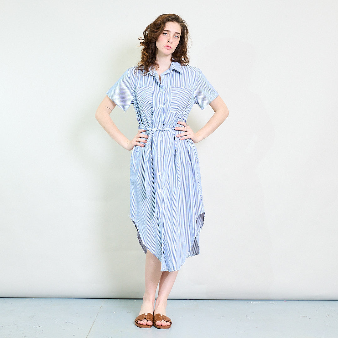 Detalhes de bolso listrado Vestido de camisa de cintura de gravata atacado