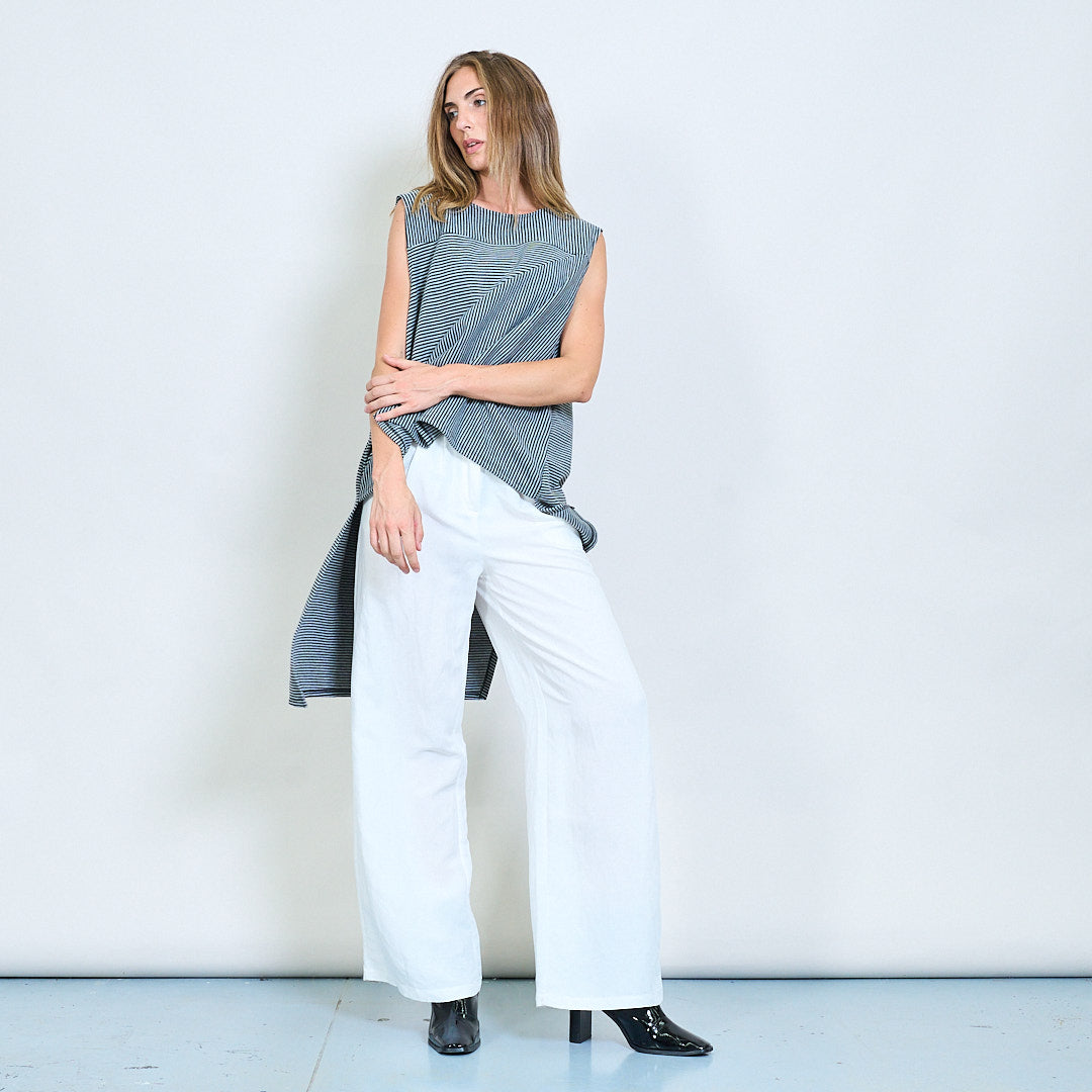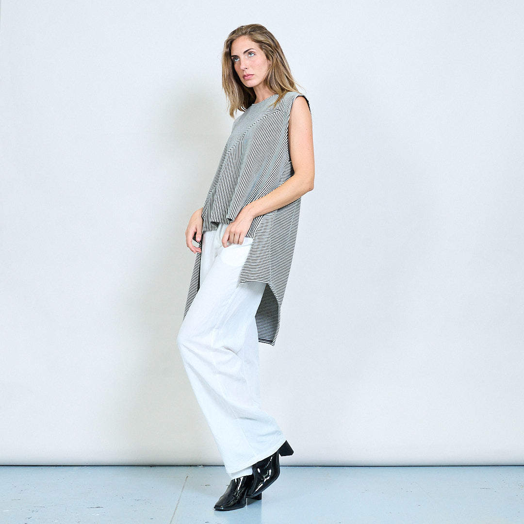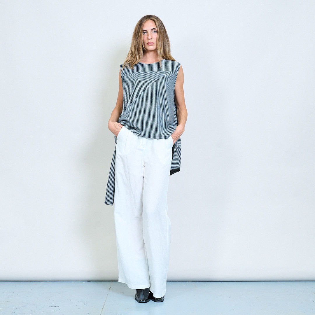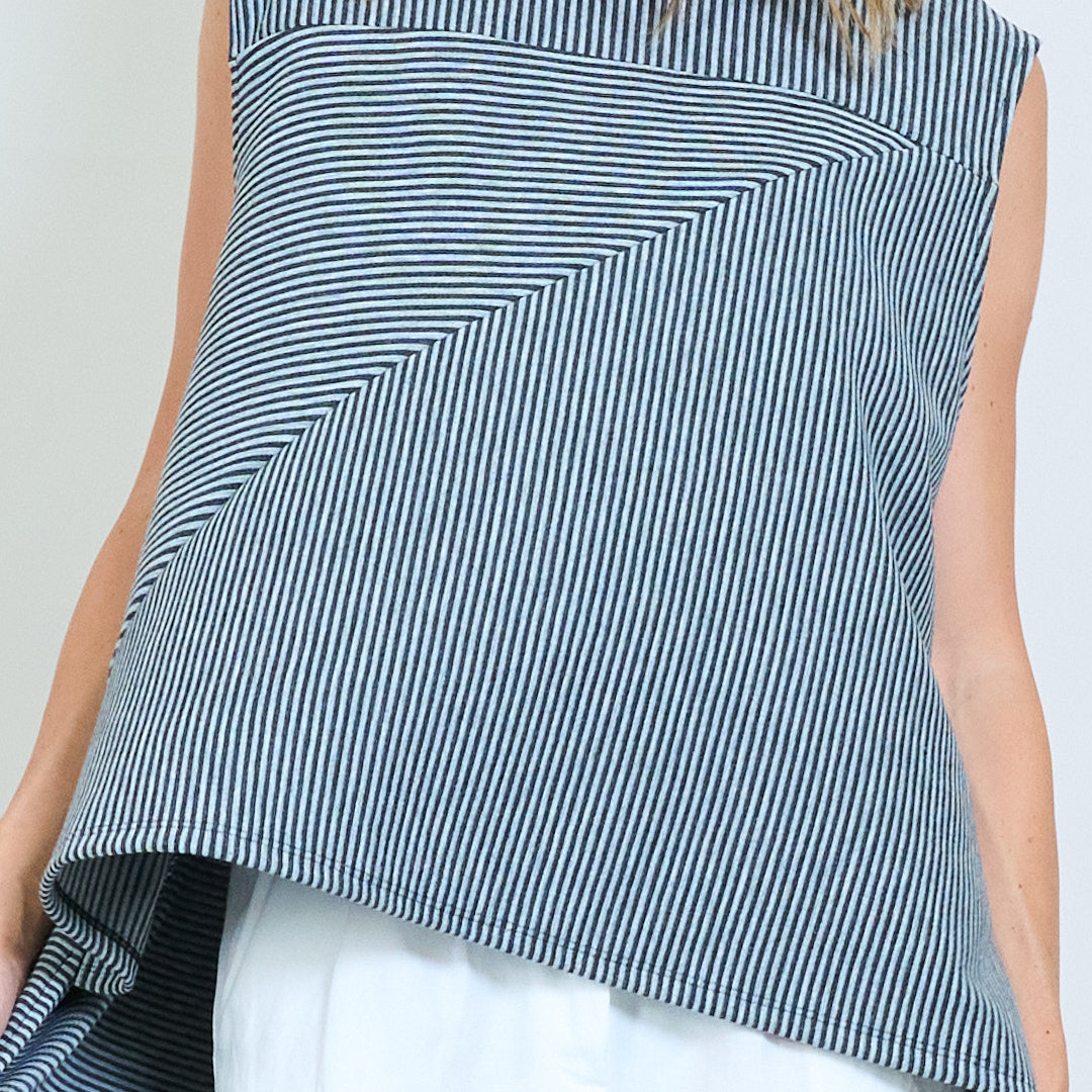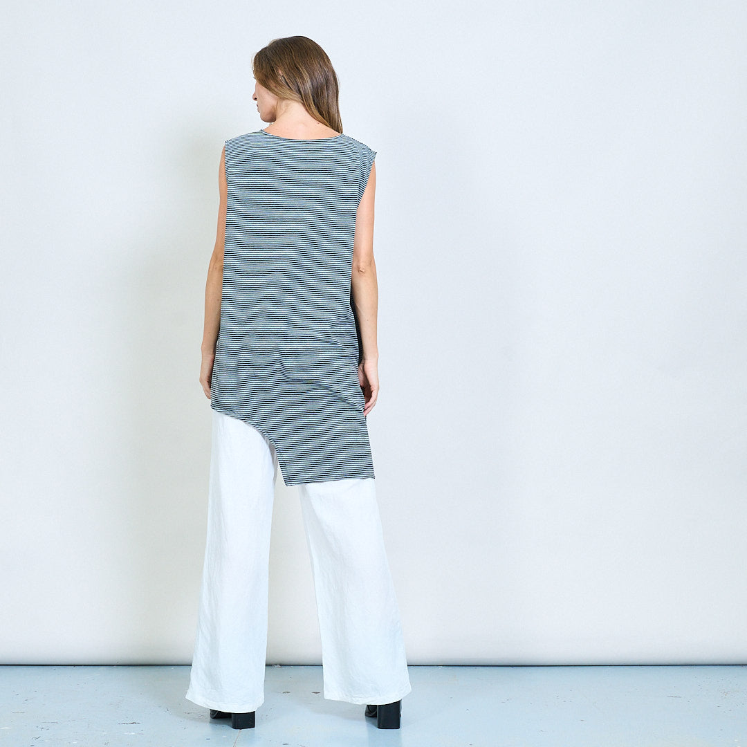 Listra geométrica assimétrica por atacado de blusa longa sem mangas
