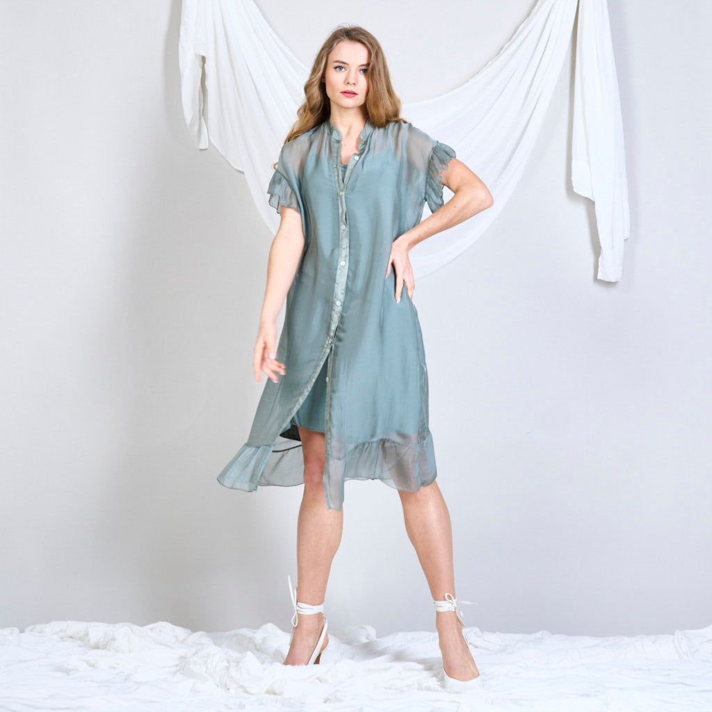 Vestido Midi de chiffon de seda com design frontal plissado no atacado